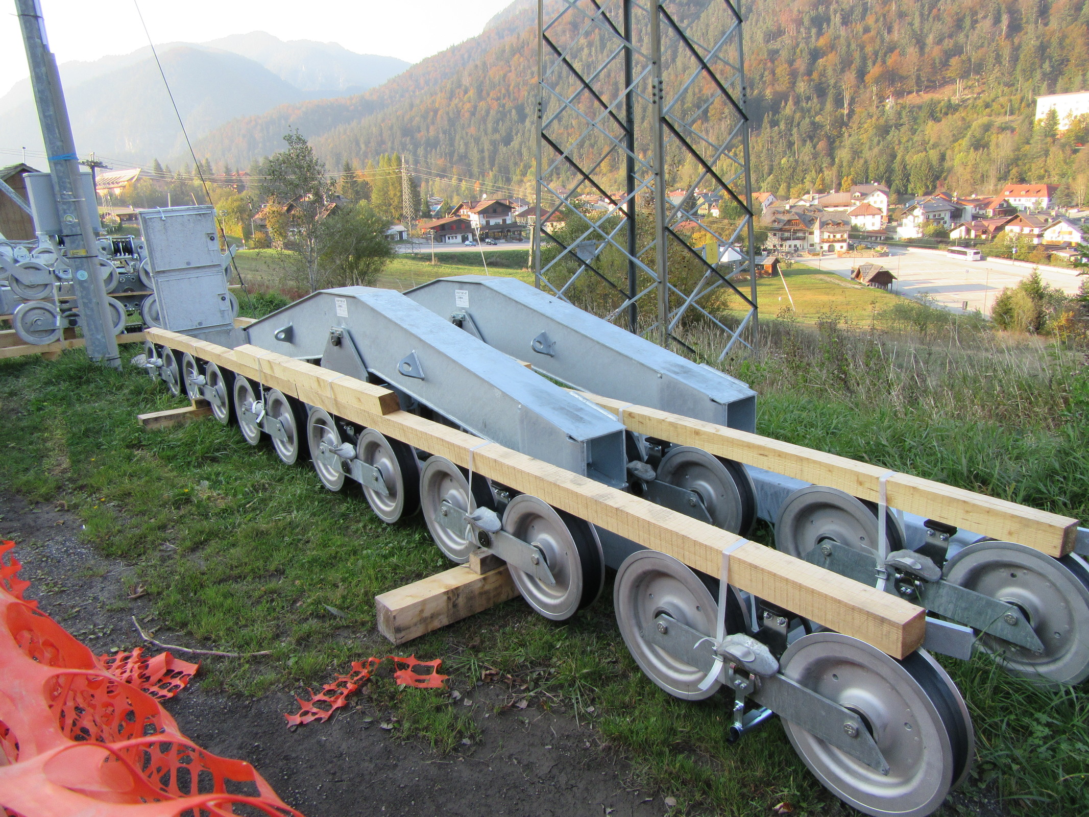 Den oberen, steilen Trassenabschnitt bin ich nicht hinaufgegangen, sehr viel zu sehen gäbe es ohnehin nicht. Das wird wieder mal eine späte Baustelle, aber eine knapp 700 m lange fixe Bahn in Talnähe sollte ein Leitner bis Weihnachten schaffen ...