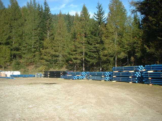 Bereits geliefertes Material. Ich tippe auf Rohre für die Beschneiungsanlage.