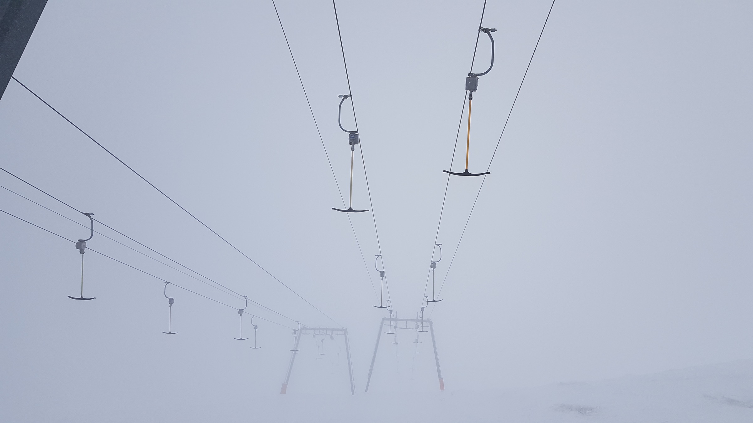 Gestern gab es (immerhin) 5-10 cm Neuschnee. Da die Sonne nicht durchkam blieb dieser schön schnell und wurde nicht klebrig. Die Pisten, die teilweise morgens bzw. im Laufe des Tages nochmal präpariert wurden, fuhren sich sehr gut. Durch den Neuschnee konnte man vormittags sogar ohne abschnallen direkt bis zur Talstation des GB3 fahren