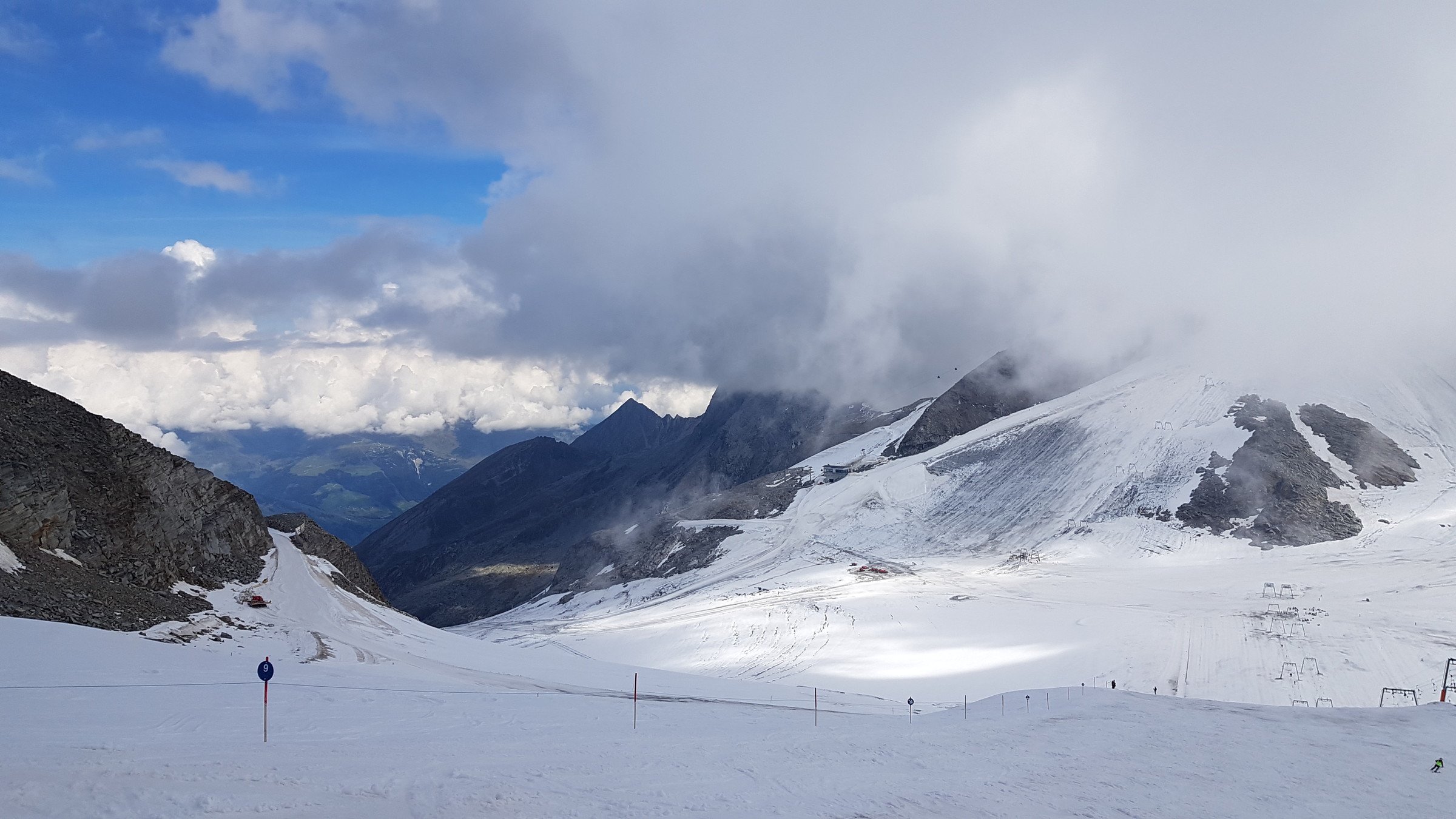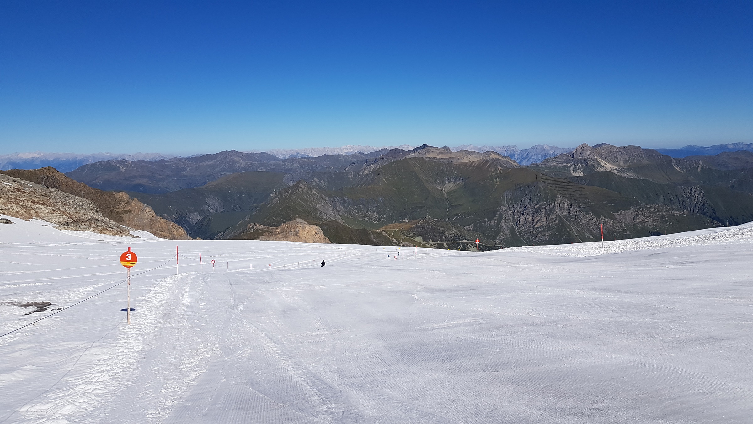Mittwoch war noch besseres Wetter (sehr klare Luft) als Dienstag und der Schnee war noch schöner zu fahren (sehr griffig, wurde erst spät weicher und kaum bremsend). Für Anfang September wirklich super gut zu fahren.