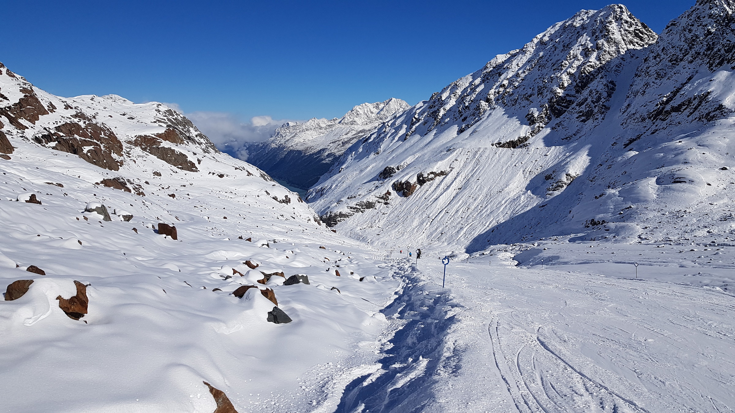Alles in allem aber trotzdem ein guter Skitag, vor allem durch den wolkenlosen Himmel und den häufig pulvrigen Schnee. Und das erste Mal im Oktober in den Alpen Skifahren (in allen anderen Monaten war ich schon dort).
