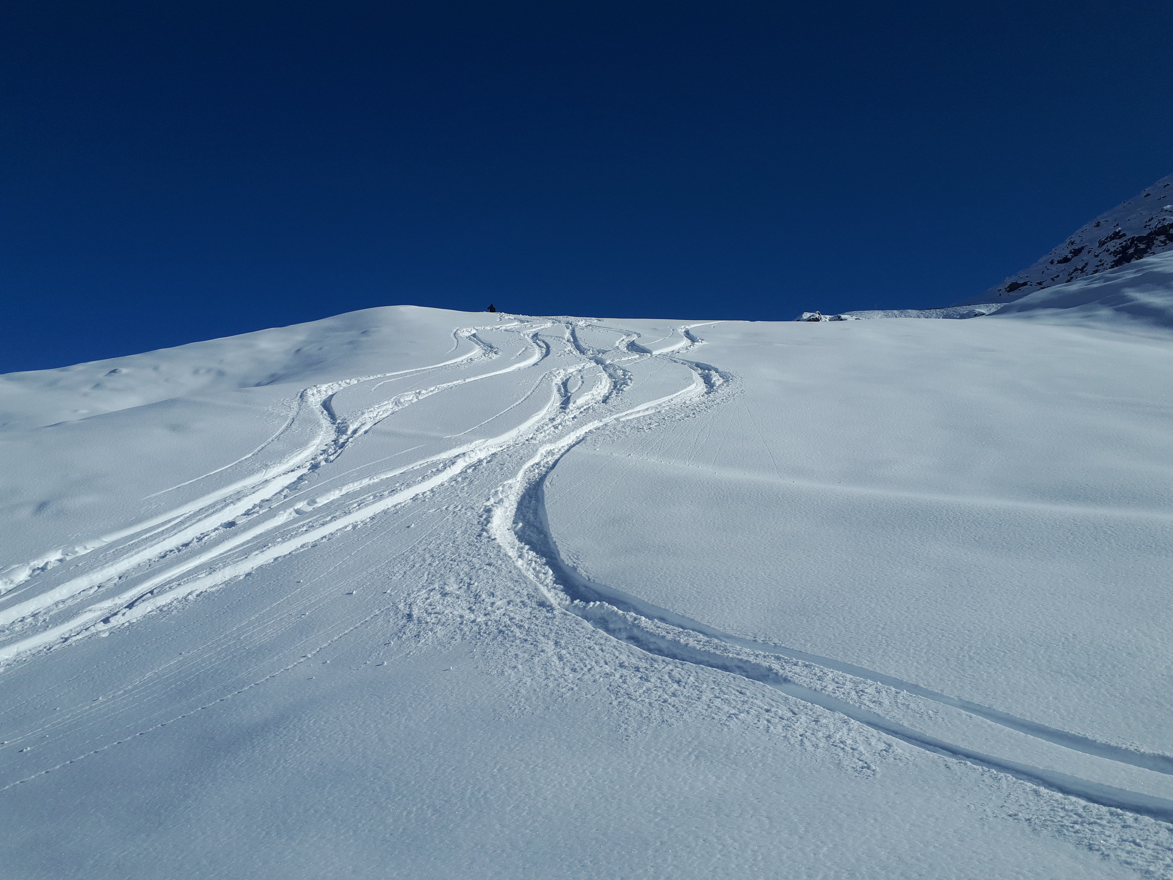 Heute noch absolut traumhafter Tiefschnee beim Freeriden nach dem Skitunnel.