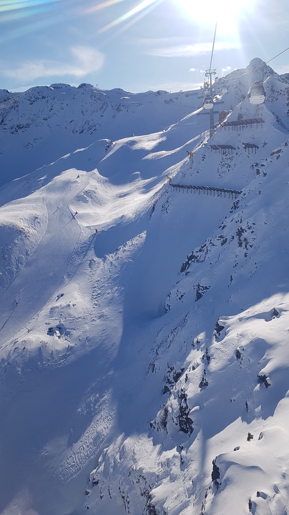 Heute mal dem Hochjoch einen Besuch abgestattet. Das Panorama ist immer wieder der Hammer, die Pistenpräparation konnte mich aber heute nicht überzeugen, da hatte ich schon bessere Pistentage. Natürlich jammern auf hohem Niveau, heute war auch das Grasjoch mit der Hochalpilabahn in Betrieb, somit verteilten sich die Leute gut und man hatte Null Wartezeiten.