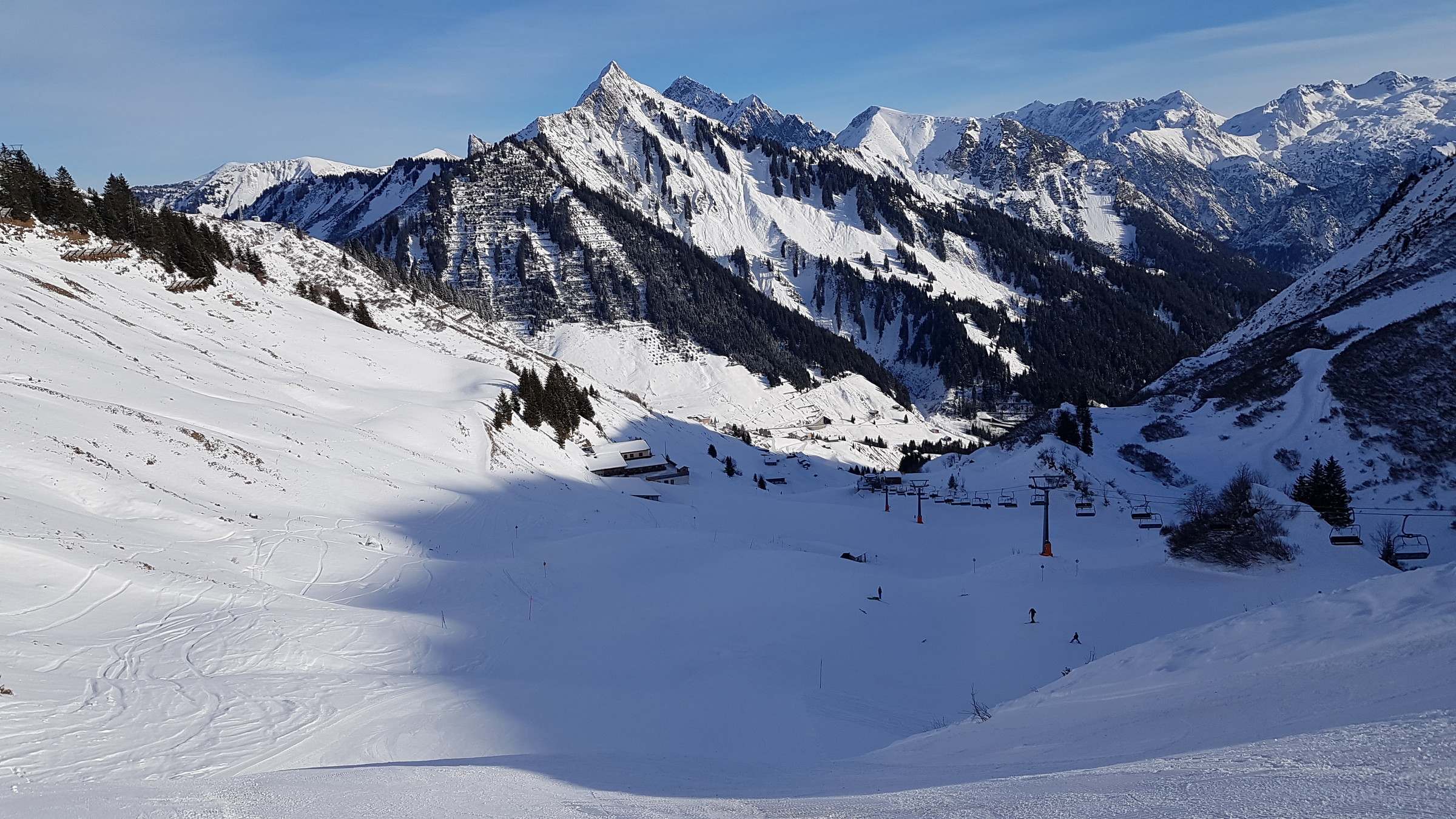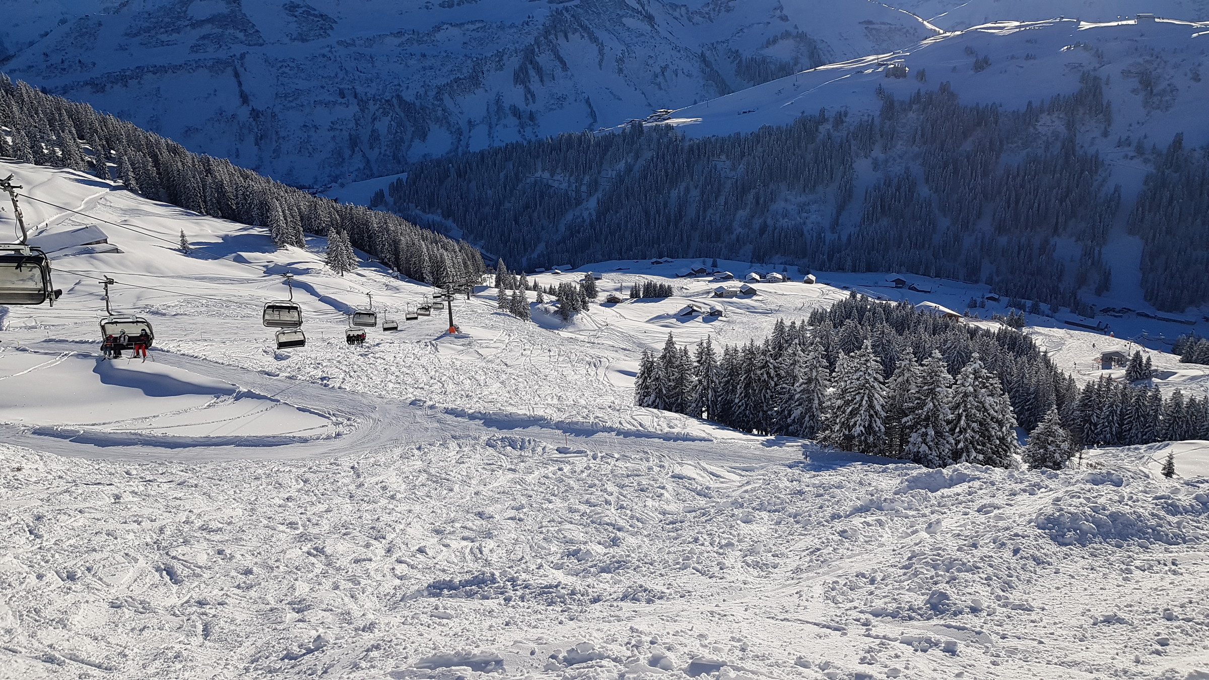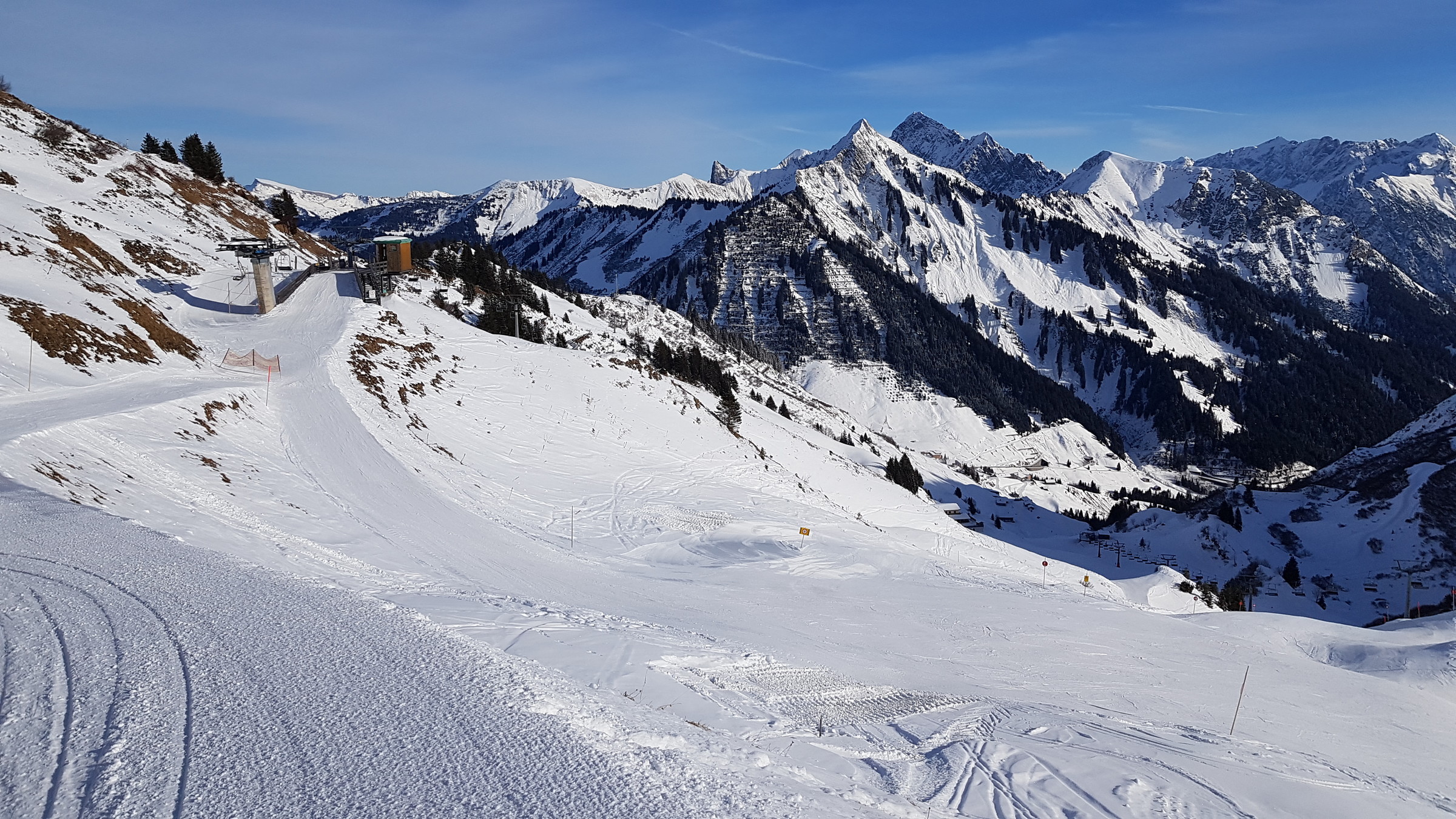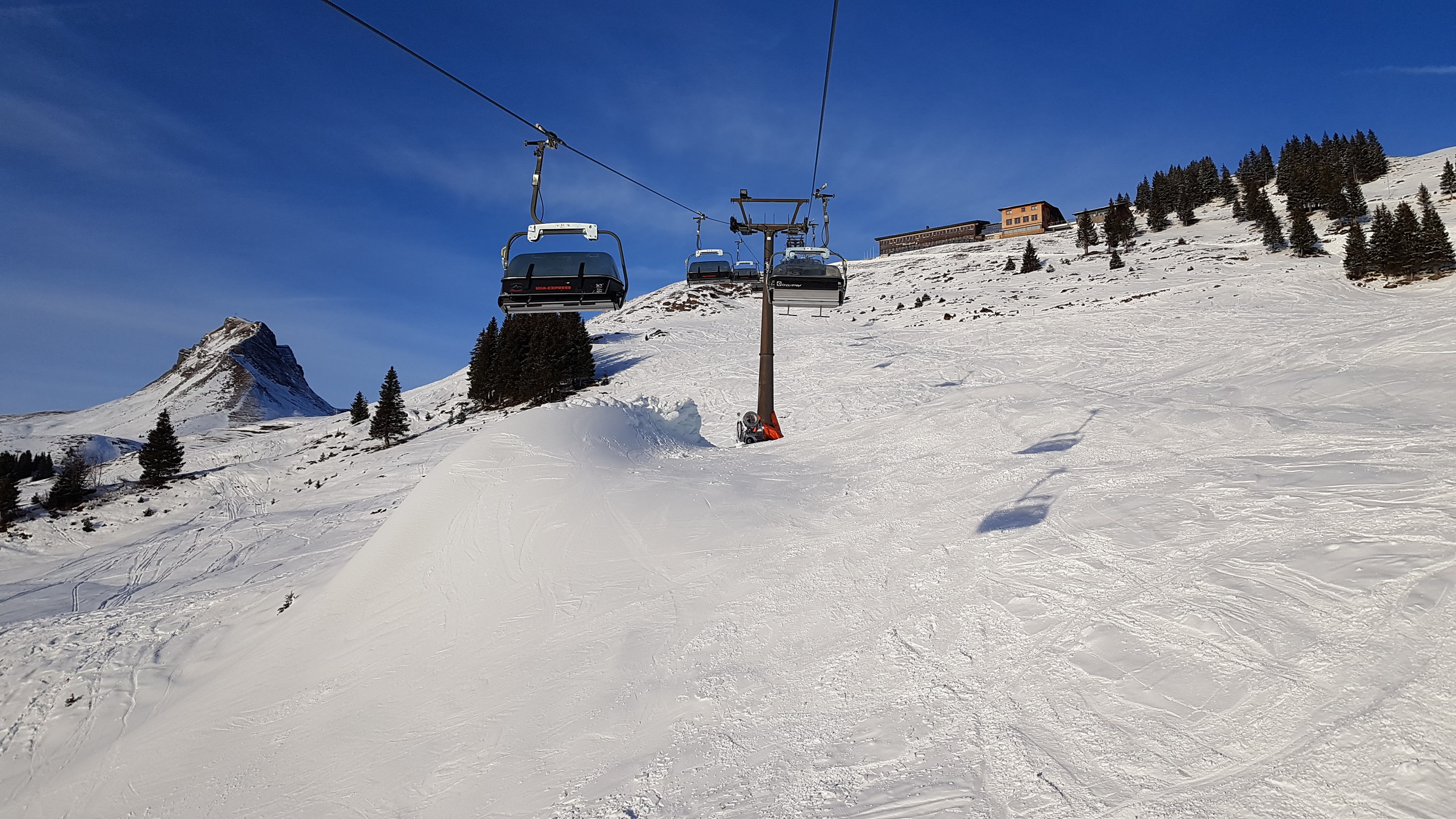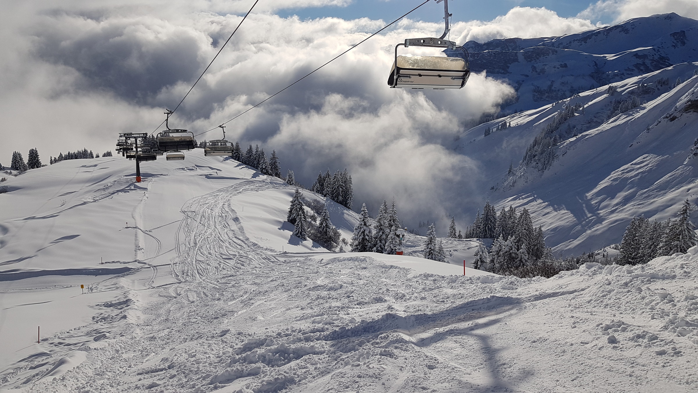 Los war vor allem in Damüls etwas mehr als sonst, also etwa 2 Sessel warten. Heute hatte ich auch des öfteren Mitfahrer, das ist bis jetzt eigentlich kaum vorgekommen.