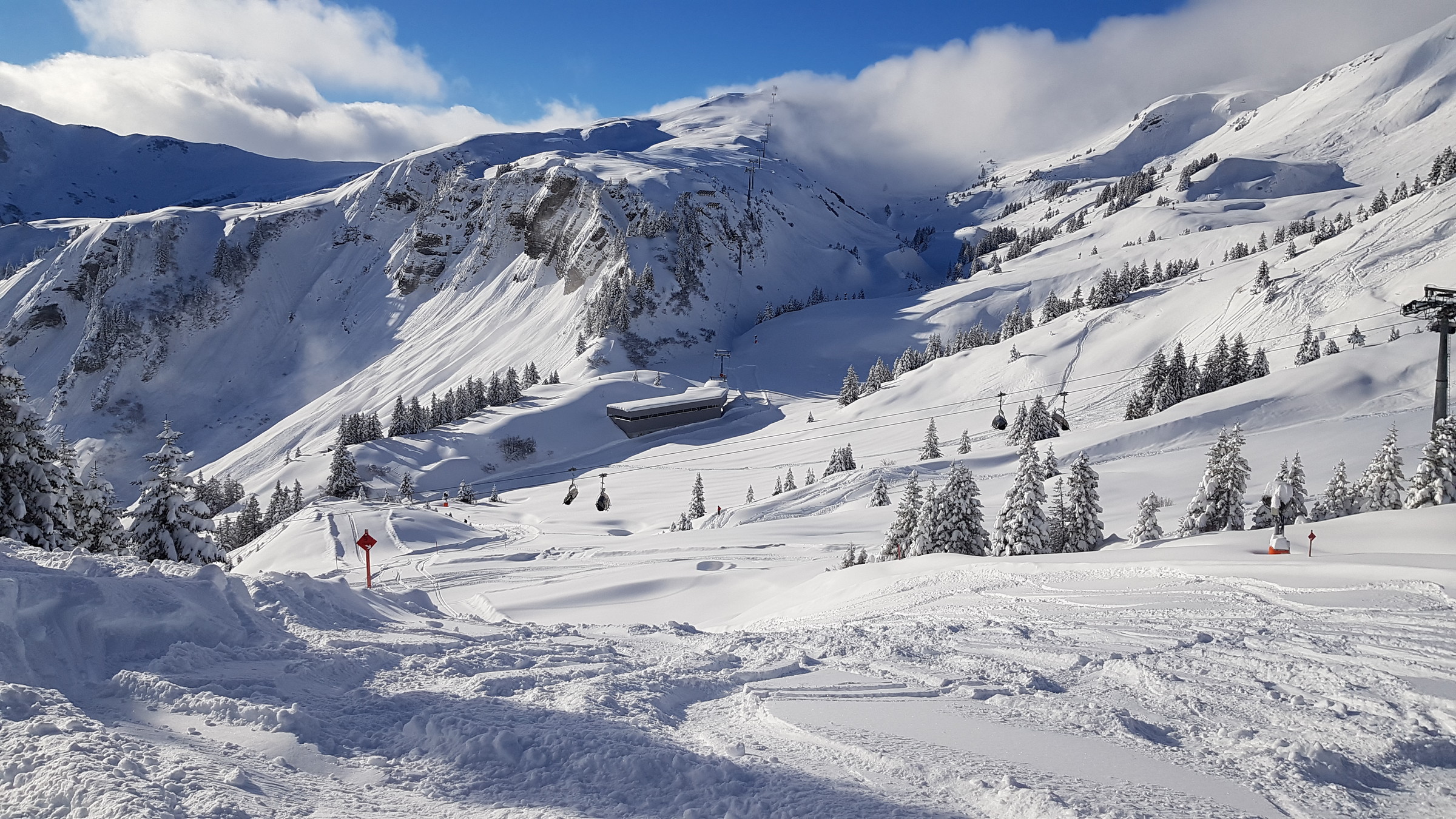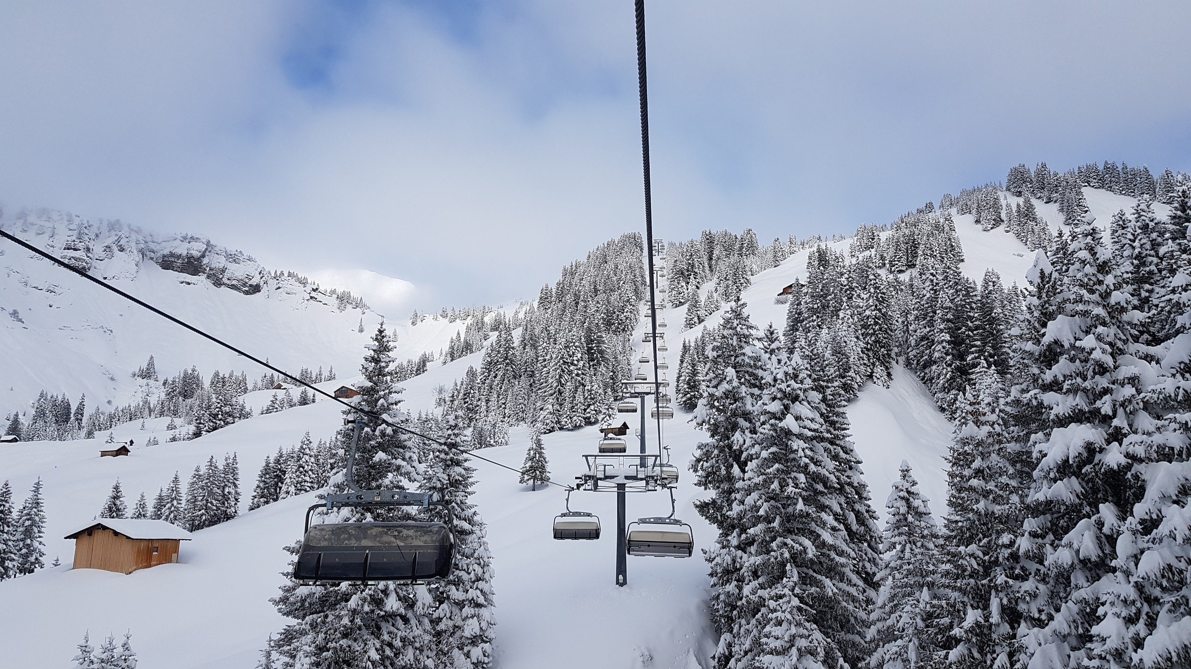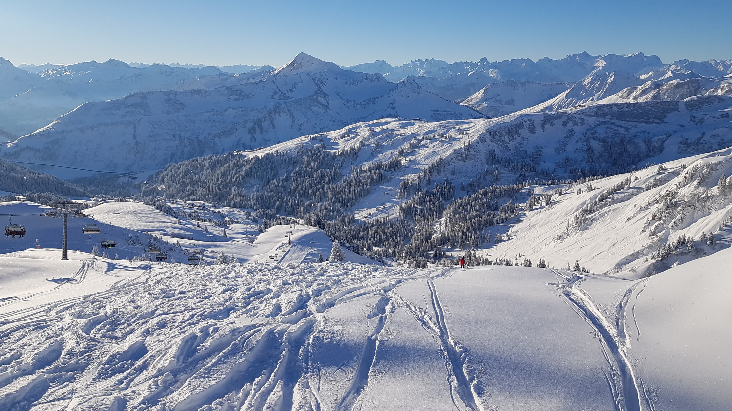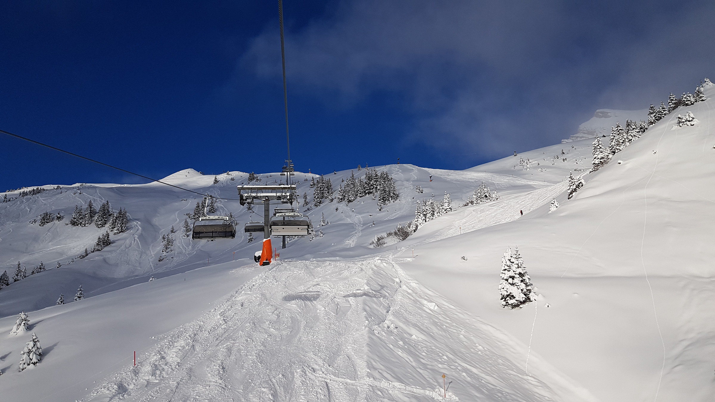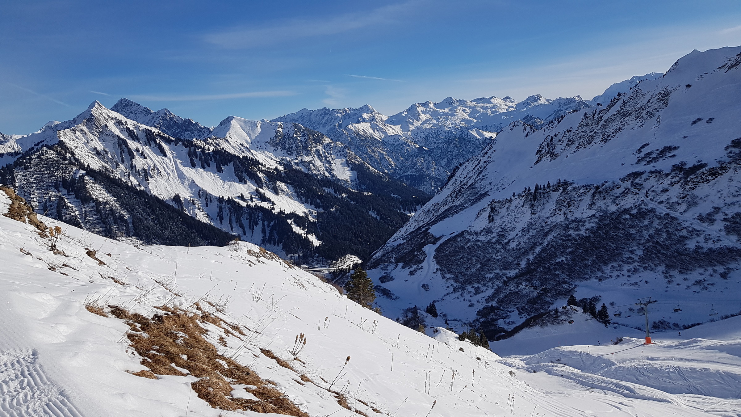 Los war vor allem in Damüls etwas mehr als sonst, also etwa 2 Sessel warten. Heute hatte ich auch des öfteren Mitfahrer, das ist bis jetzt eigentlich kaum vorgekommen.