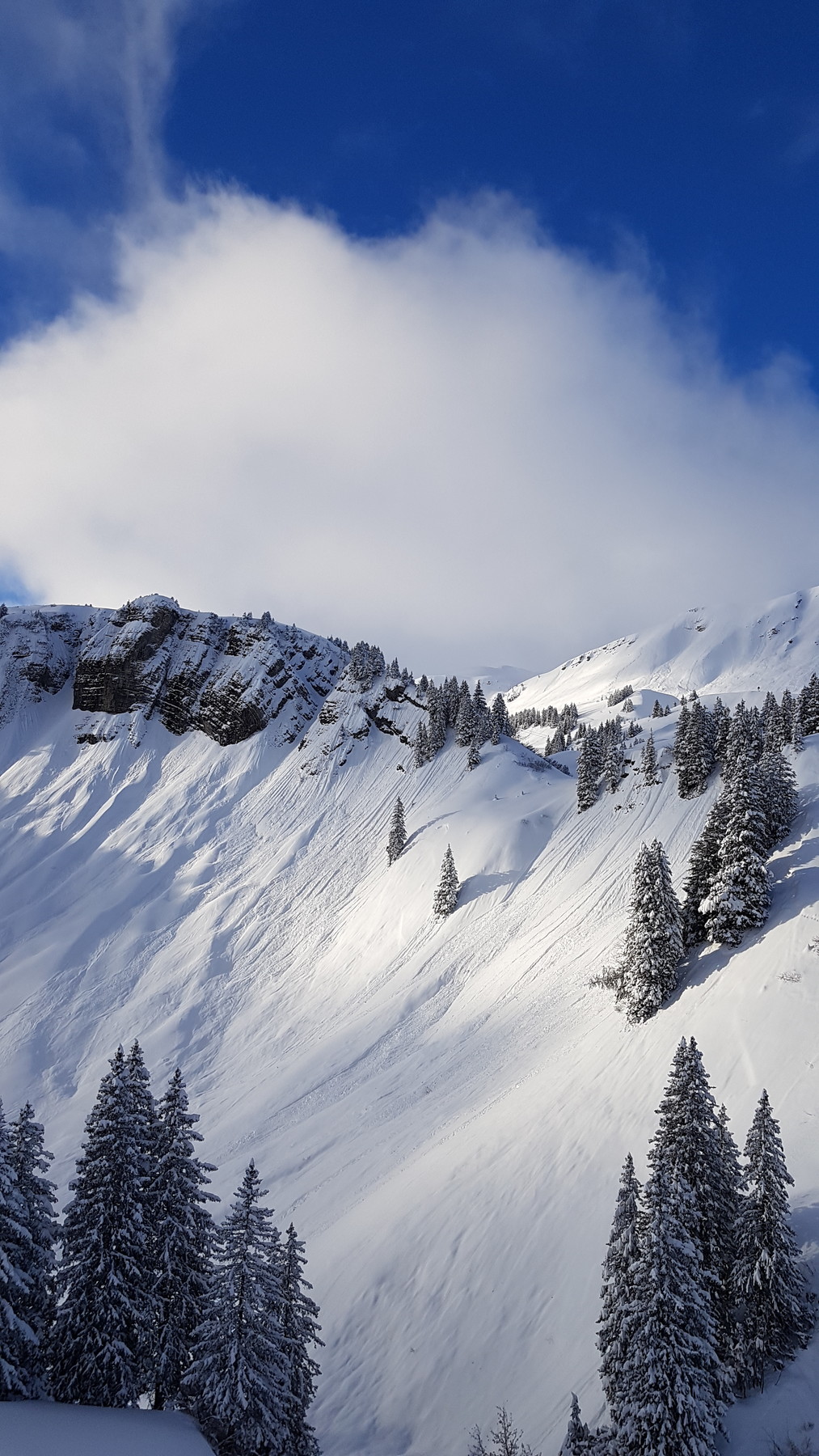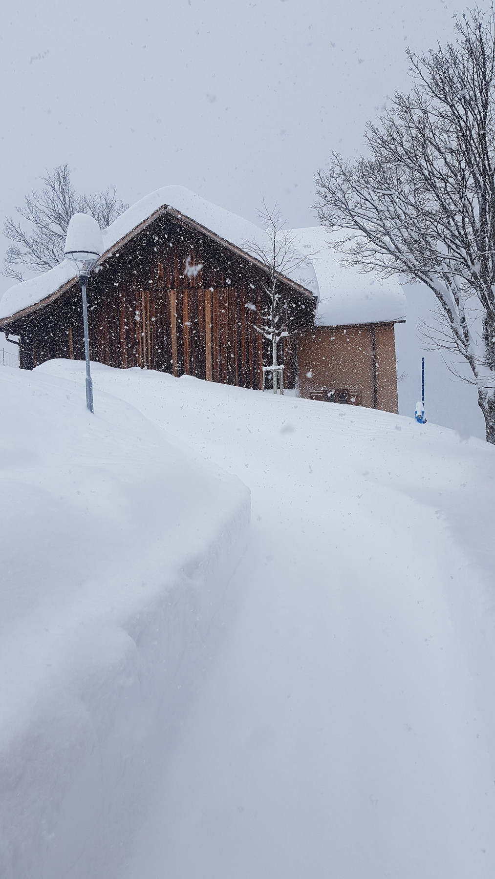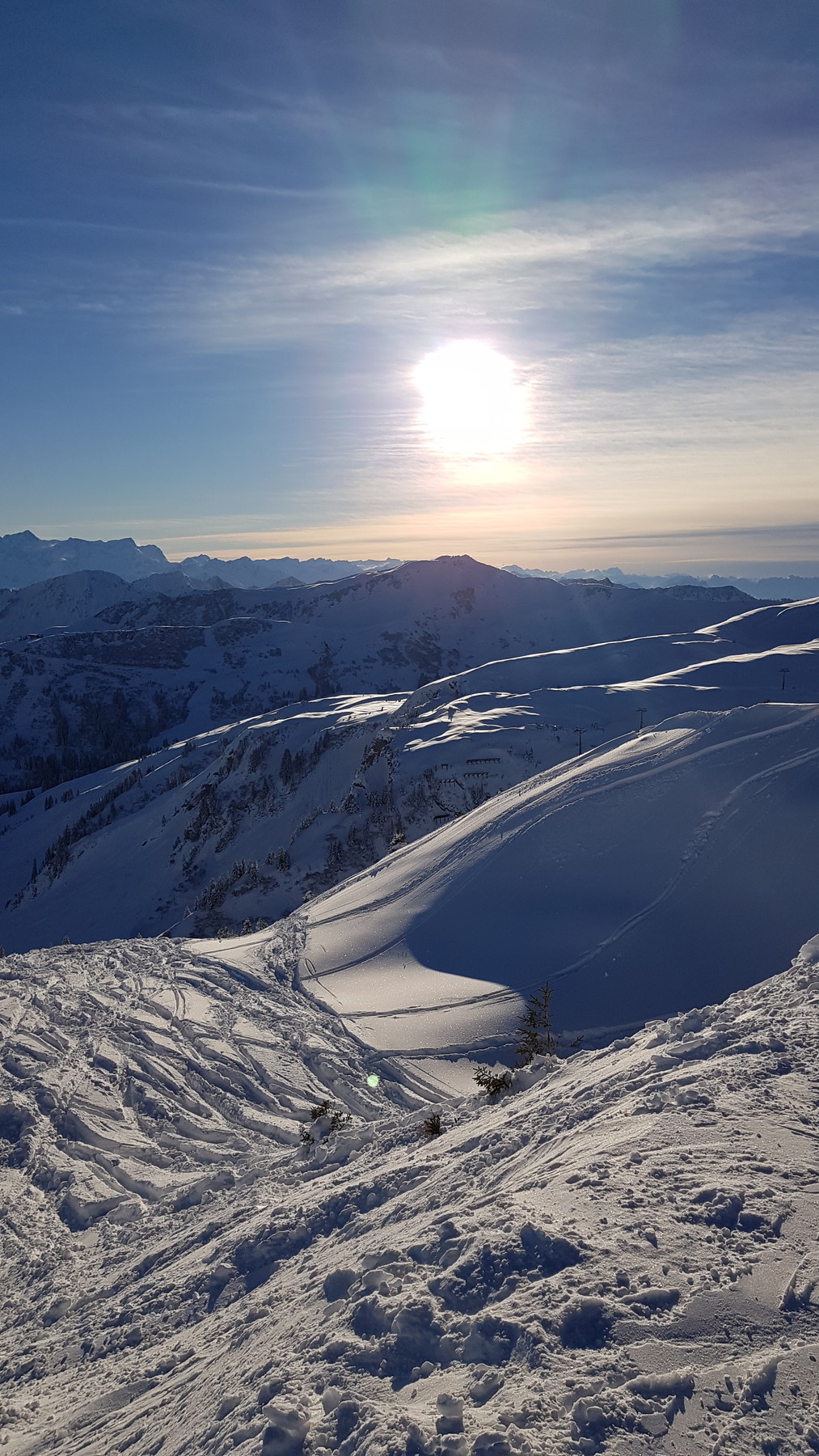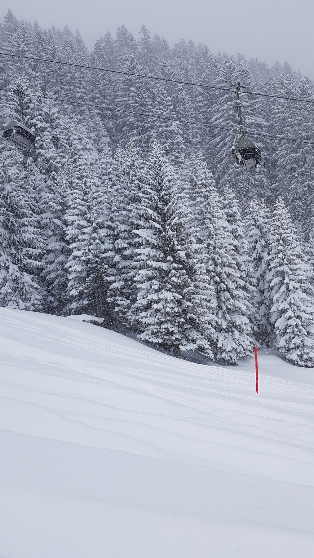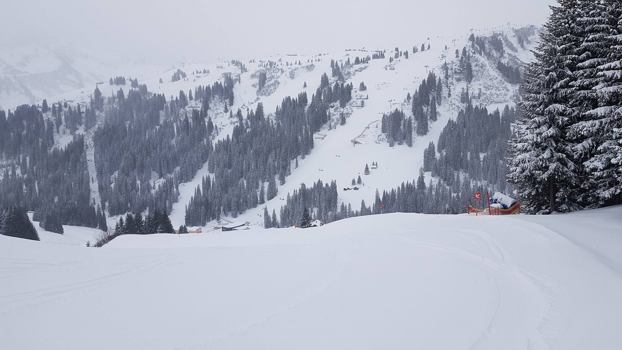 Wer hat sich das ausgedacht? Auf den genialen, fluffig-leichten Pulverschnee von gestern gab's nun nochmal 20-30 cm schweren und bremsenden Neuschnee oben drauf :sniff: der Pulverschnee somit vernichtet... Man musste sehr konzentriert fahren, um nicht stehen zu bleiben oder vorne über zu kippen. Gestern konnte man selbst durch 1 Meter tiefen Schnee ohne wirklichen Widerstand durch fahren.