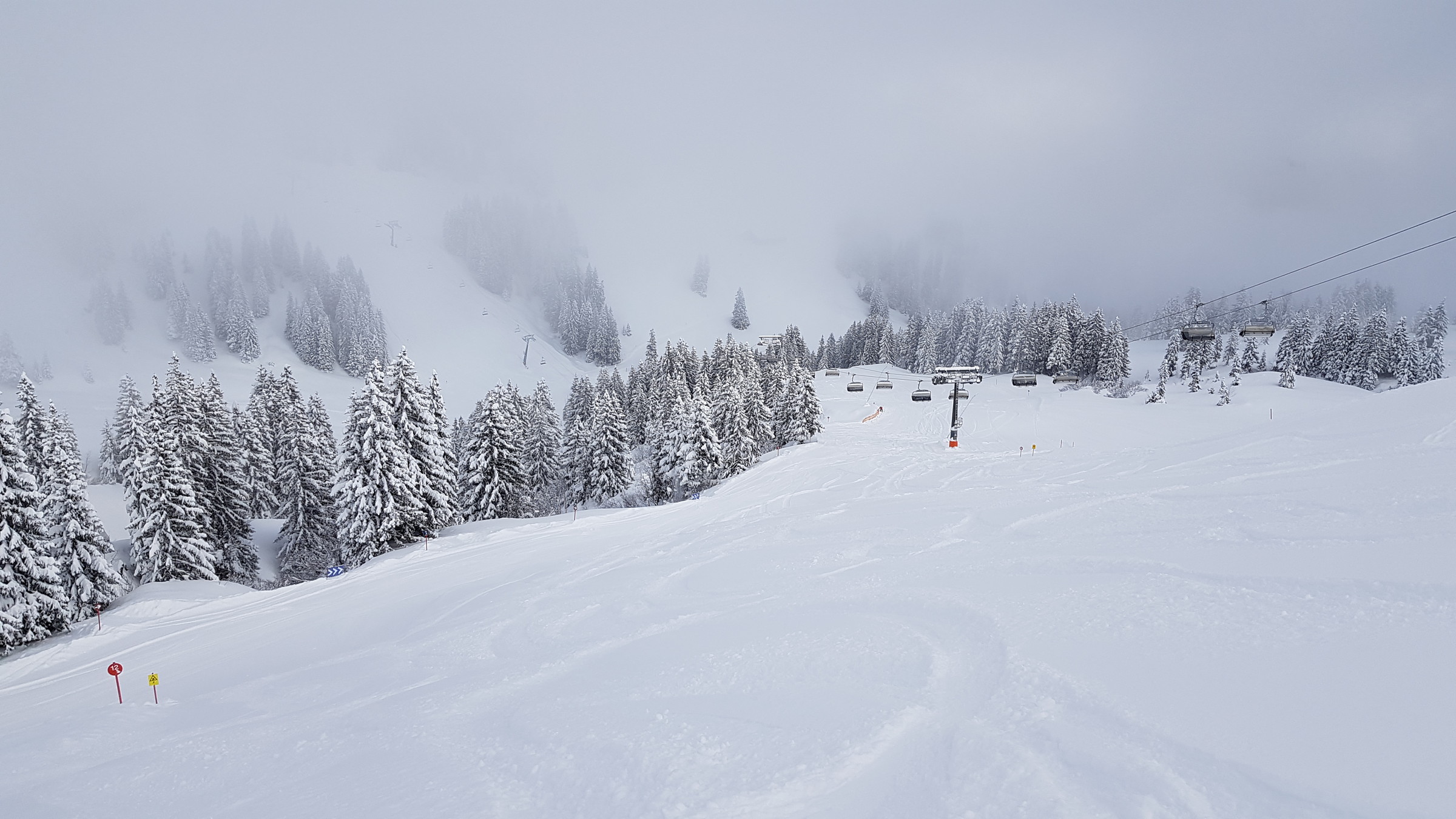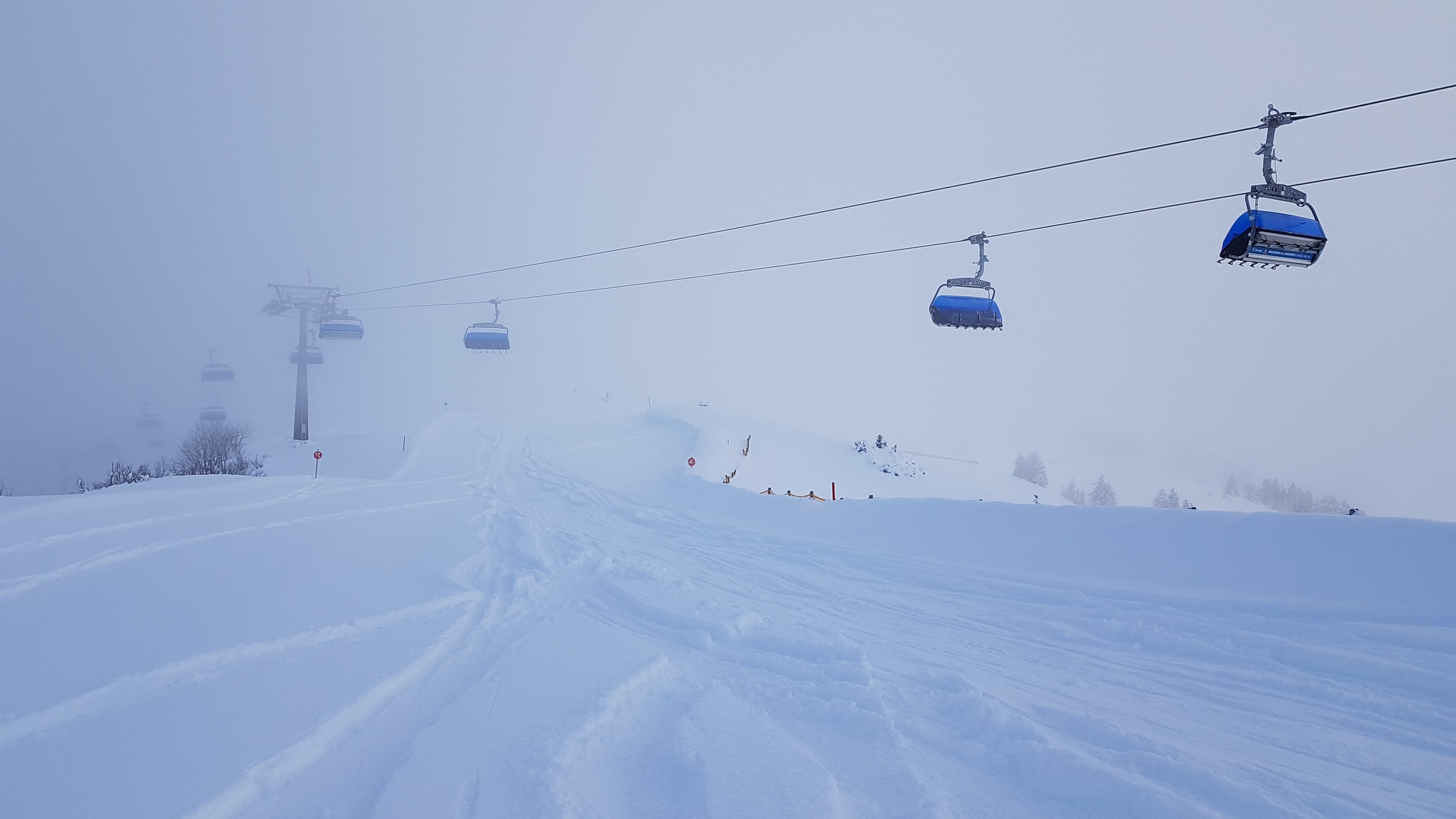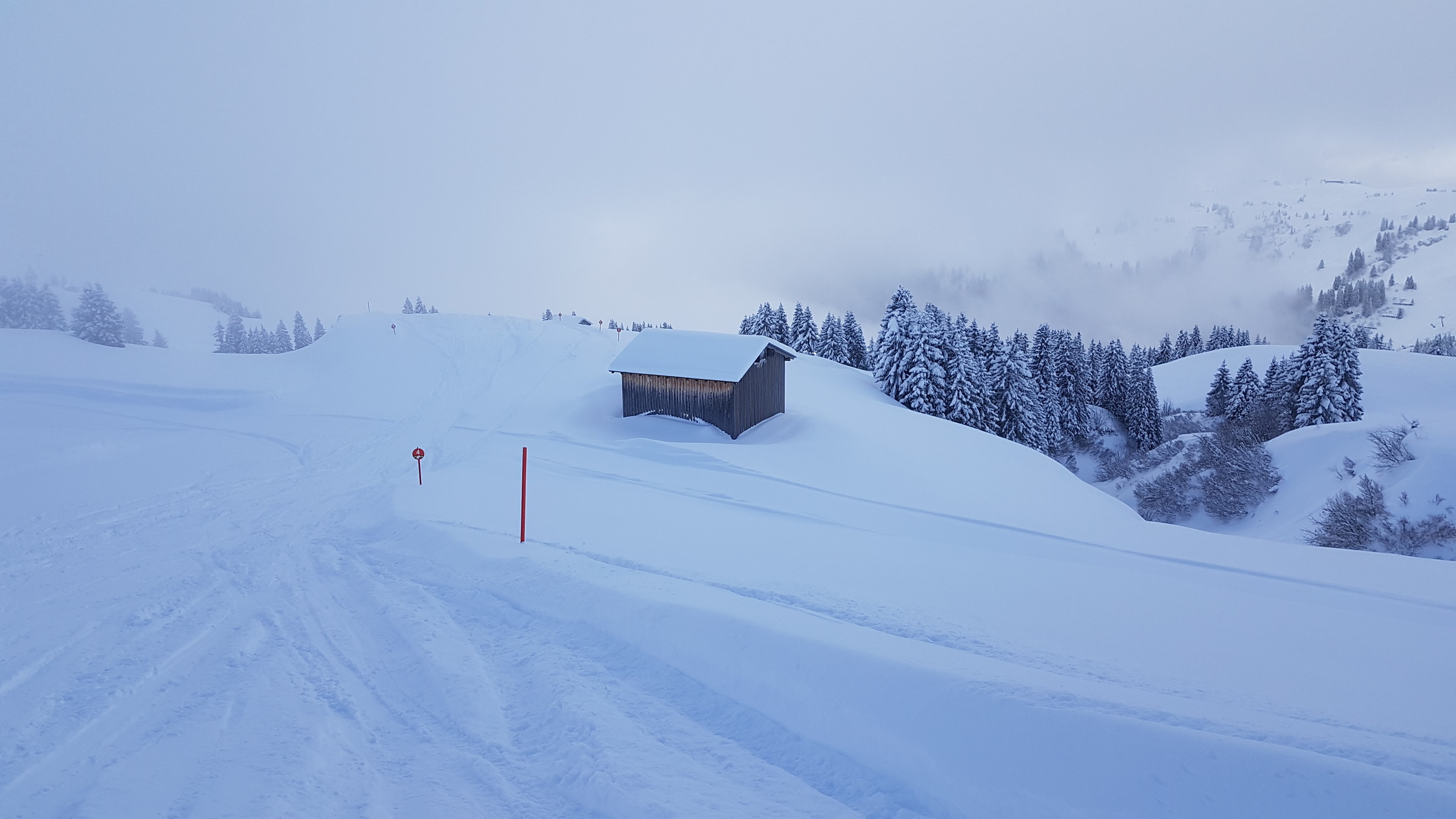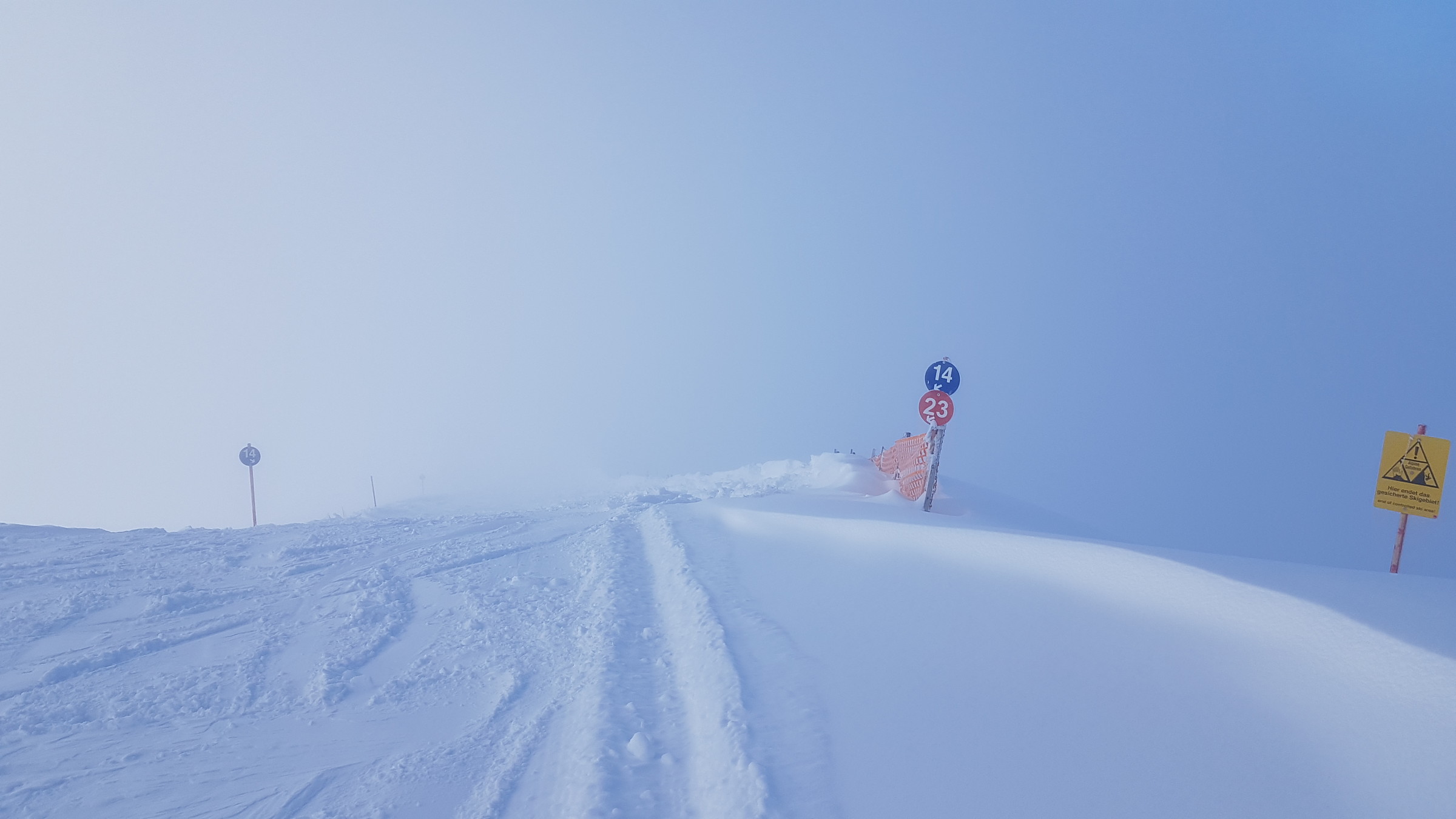 Zusammengefasst: vom Schnee deutlich schlechter als die letzten beiden Tage, dafür öfter mal sonnig (wenn man nicht gerade in so einem "undurchschaubaren" Nebelfeld festhing).