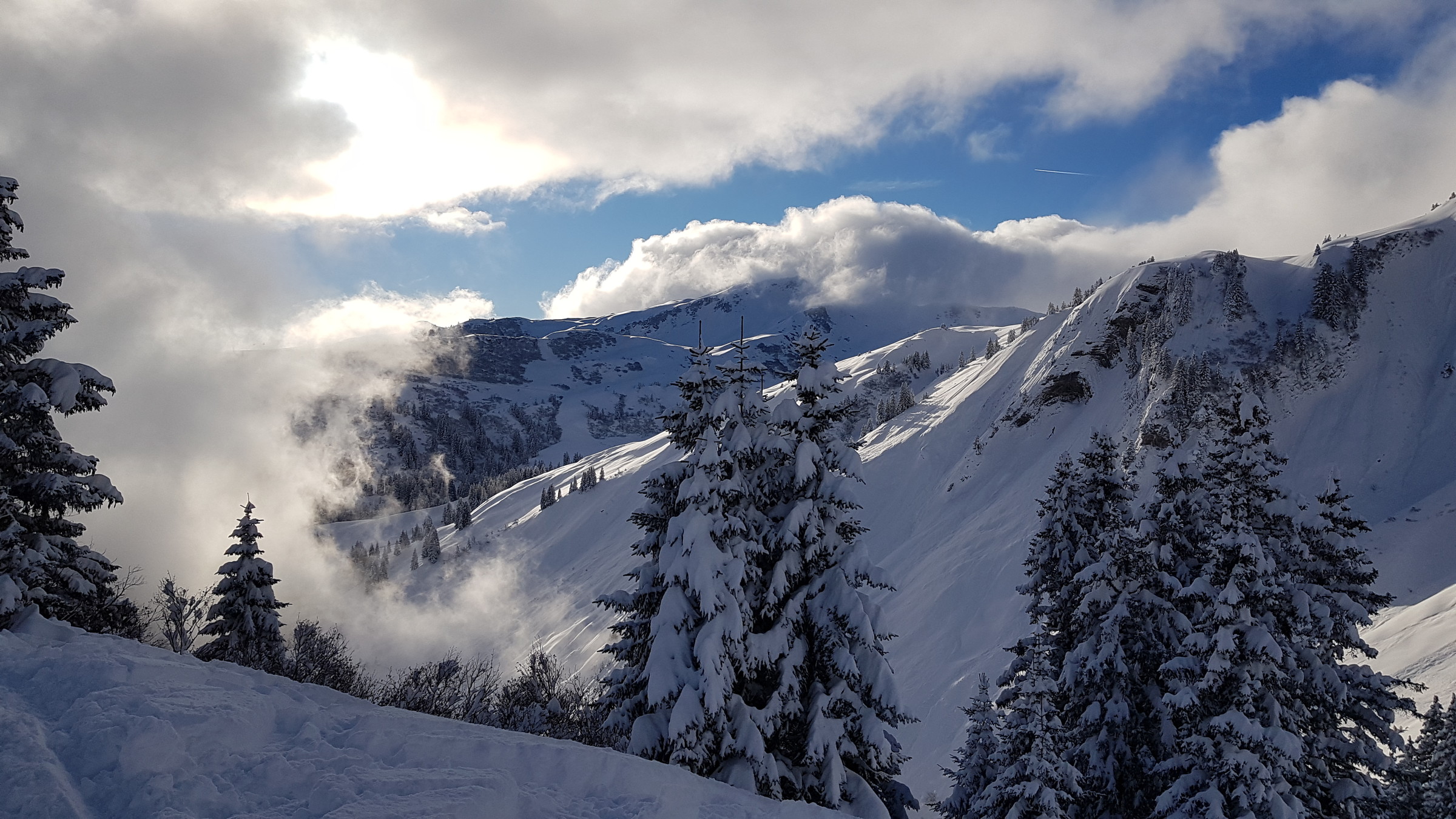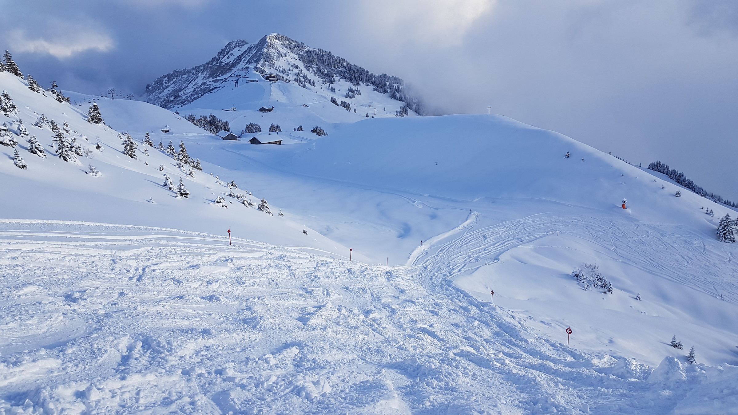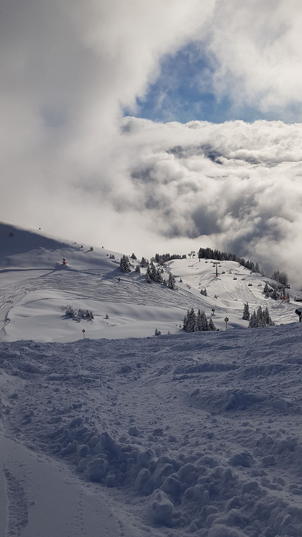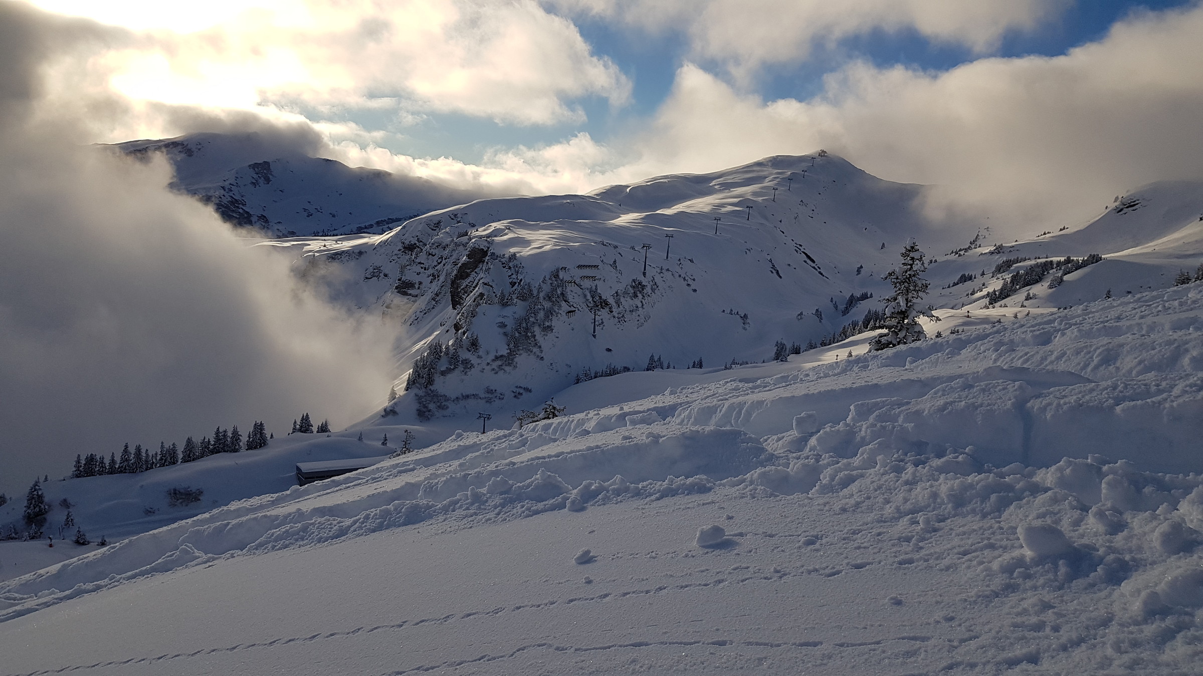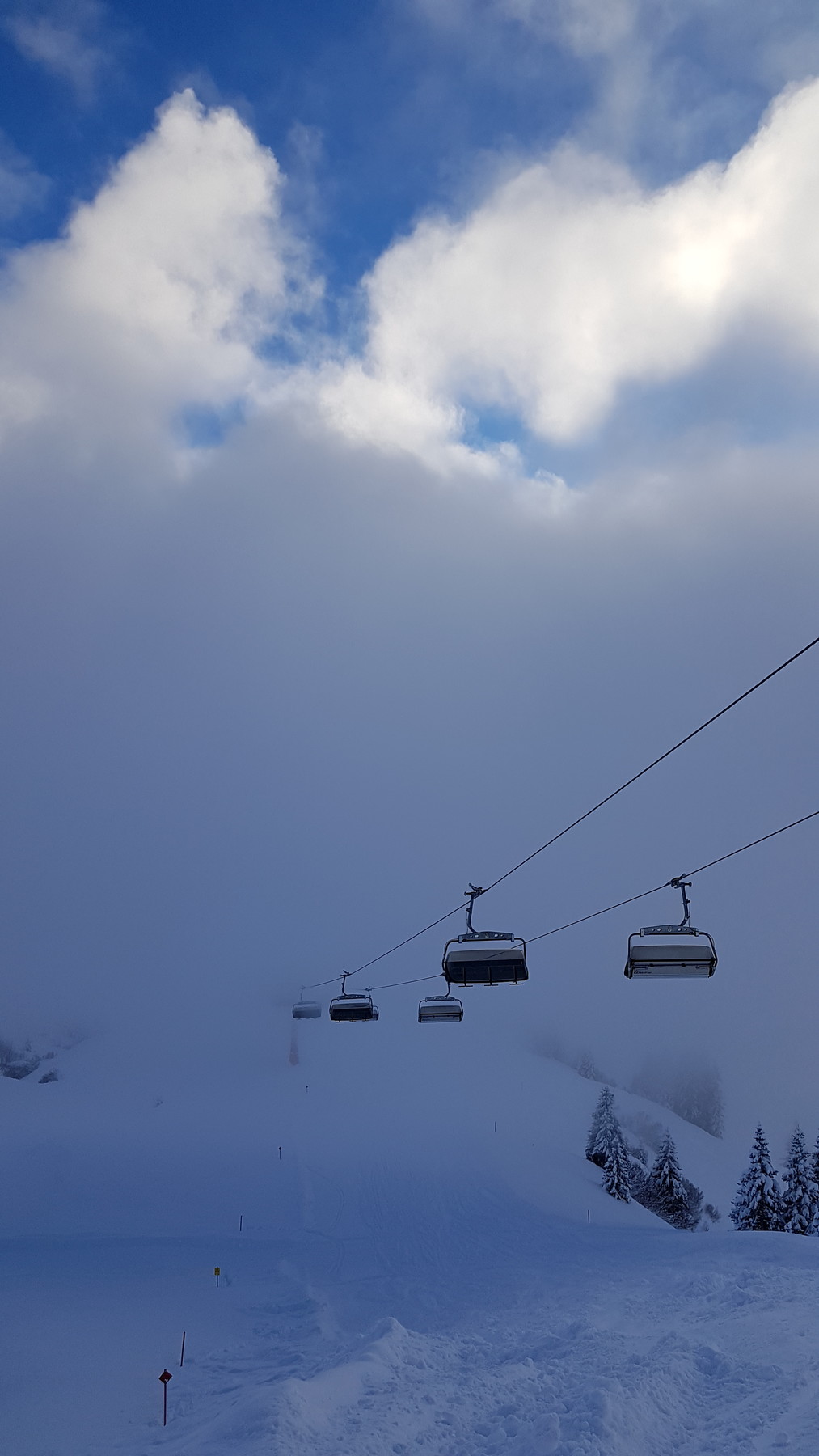 Zusammengefasst: vom Schnee deutlich schlechter als die letzten beiden Tage, dafür öfter mal sonnig (wenn man nicht gerade in so einem "undurchschaubaren" Nebelfeld festhing).