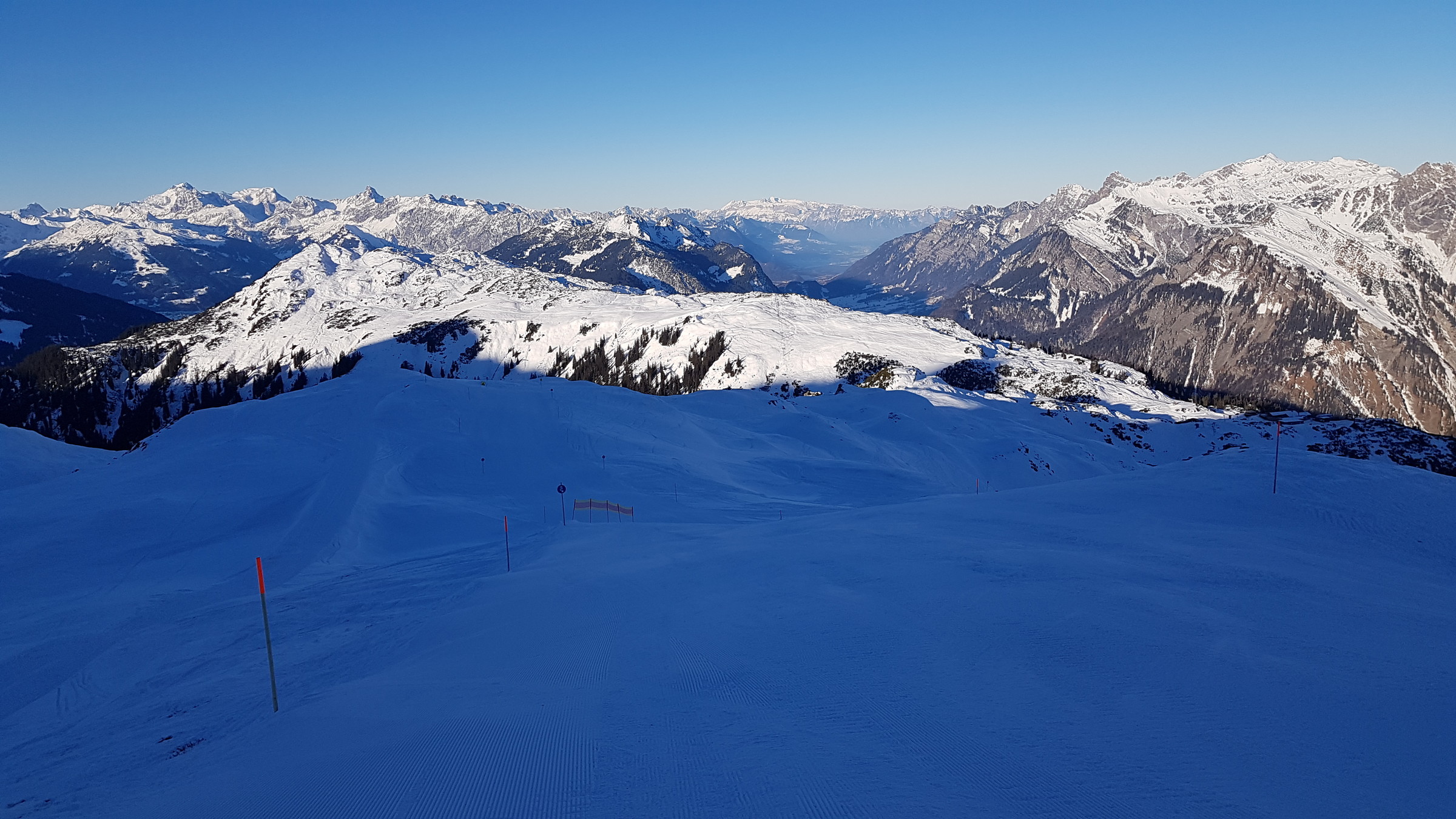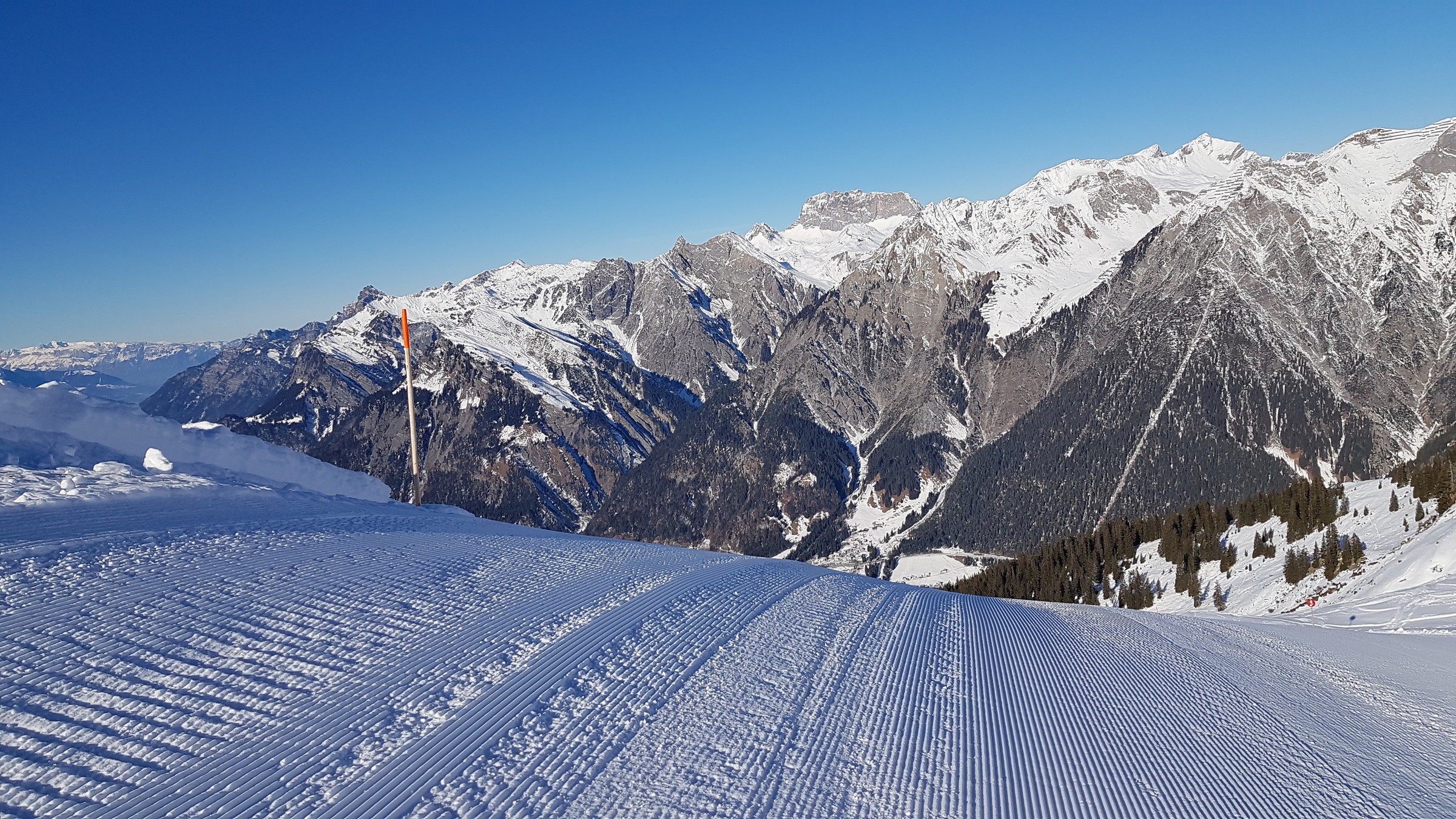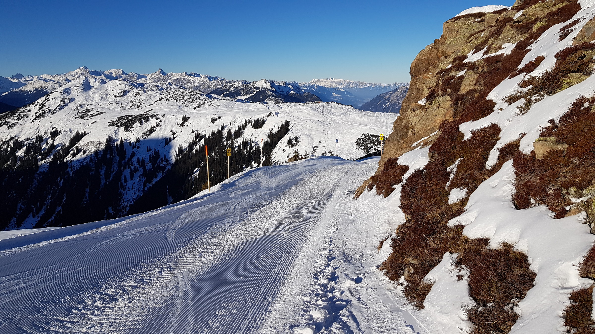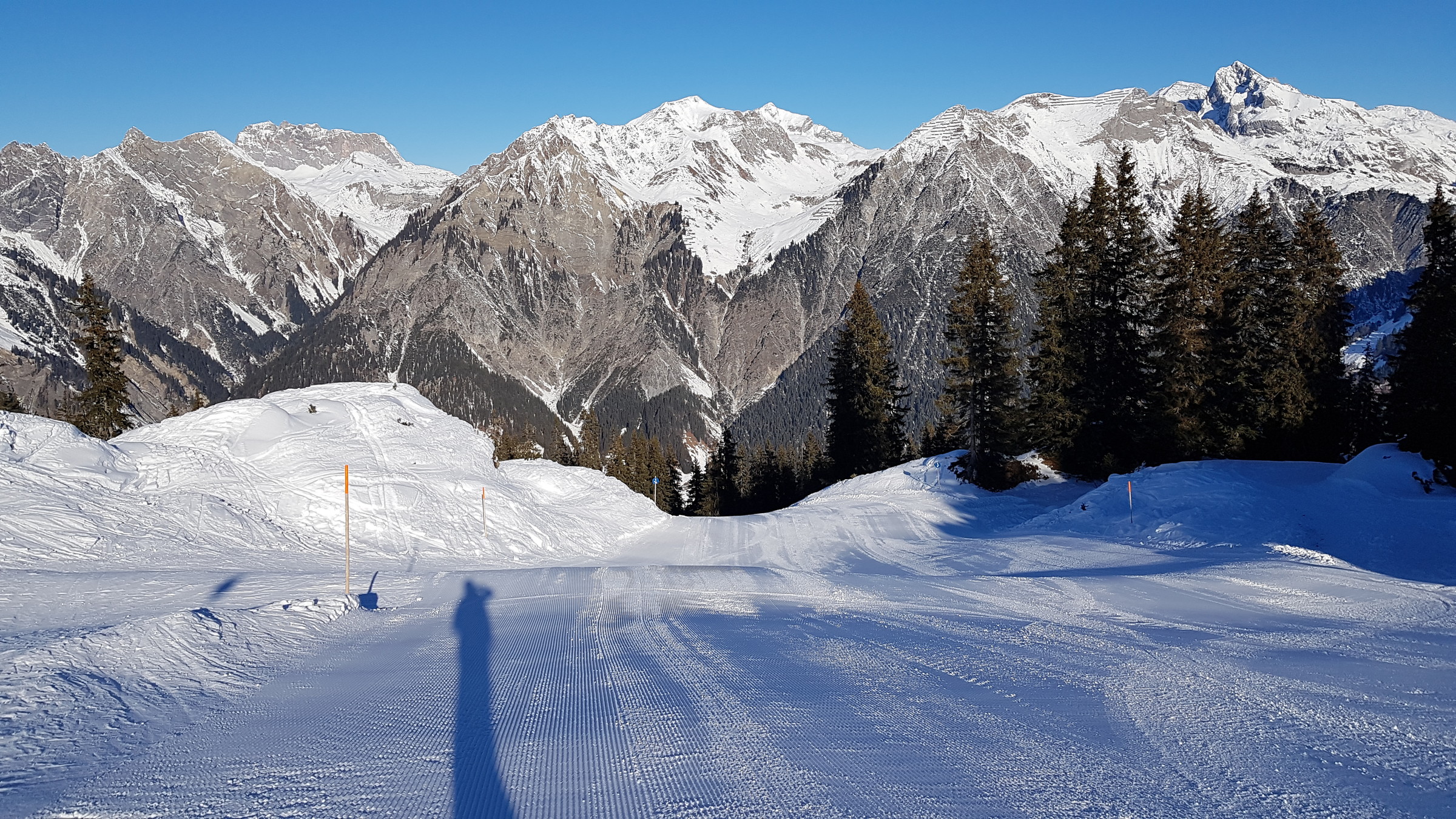 Die Pisten sind reiner Naturschnee und von dem fehlt bekanntlich einiges, dennoch waren die offenen Pisten gut zu fahren, wenn auch nicht in gewohnter Breite, dafür ohne Eis und schön griffig.