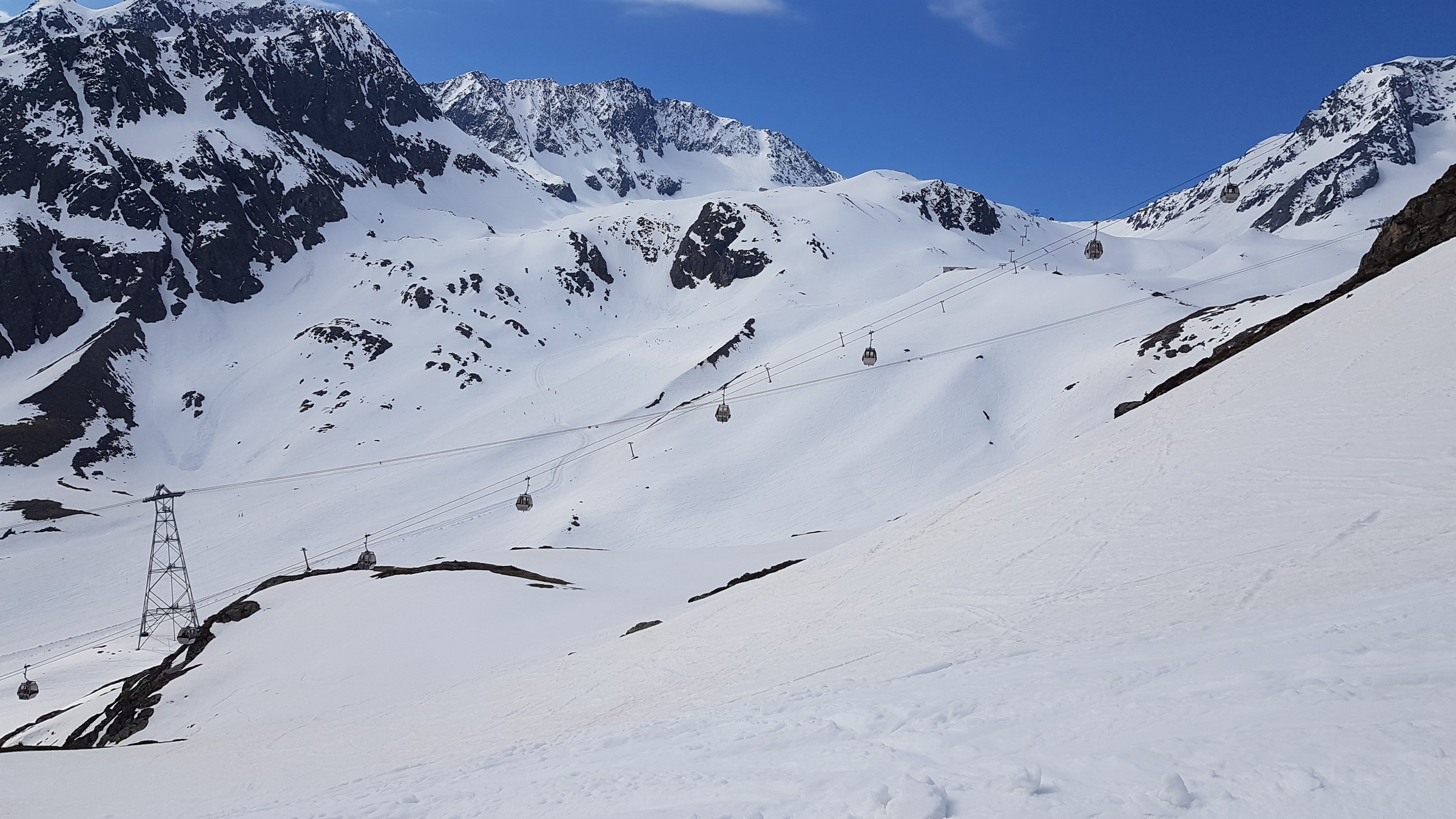 Ein kurzer Bericht vom Stubaier Gletscher von heute: Die Schneelage ist für Mitte Mai noch sehr gut, oberhalb von Gamsgarten ok, am besten am Daunferner. Zwischen Gamsgarten und Mittelstation Fernau weich, aber gut fahrbar.