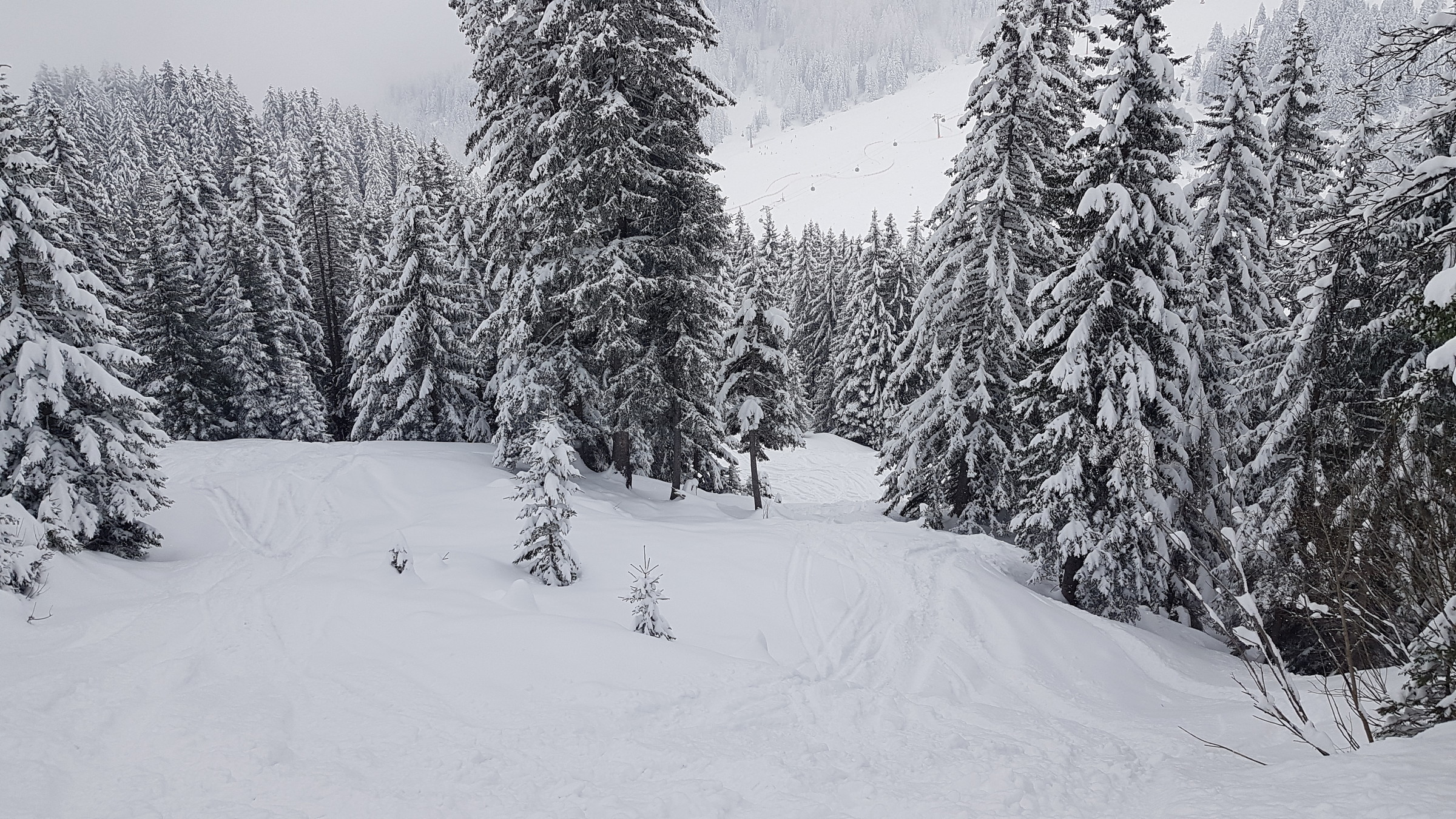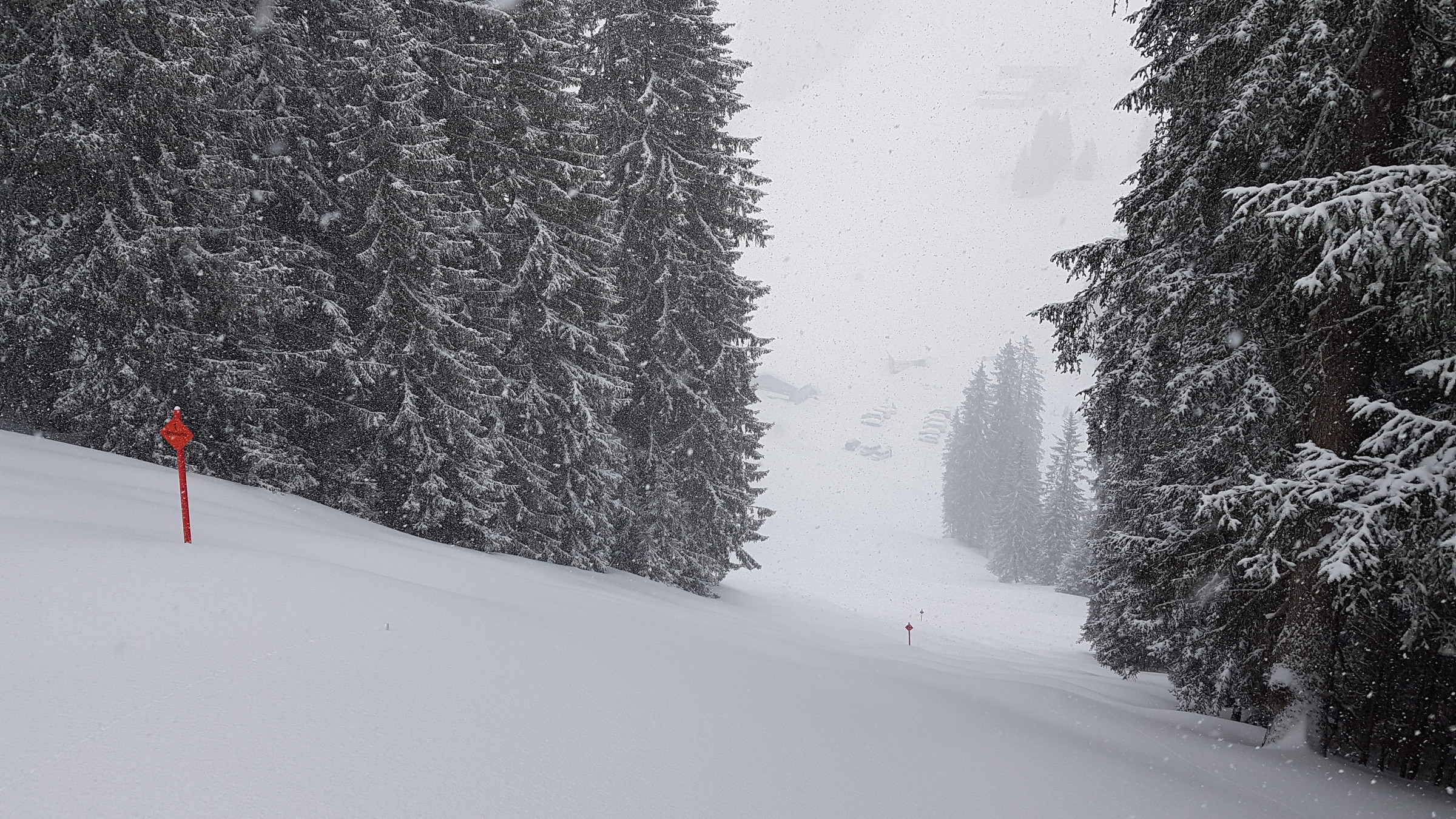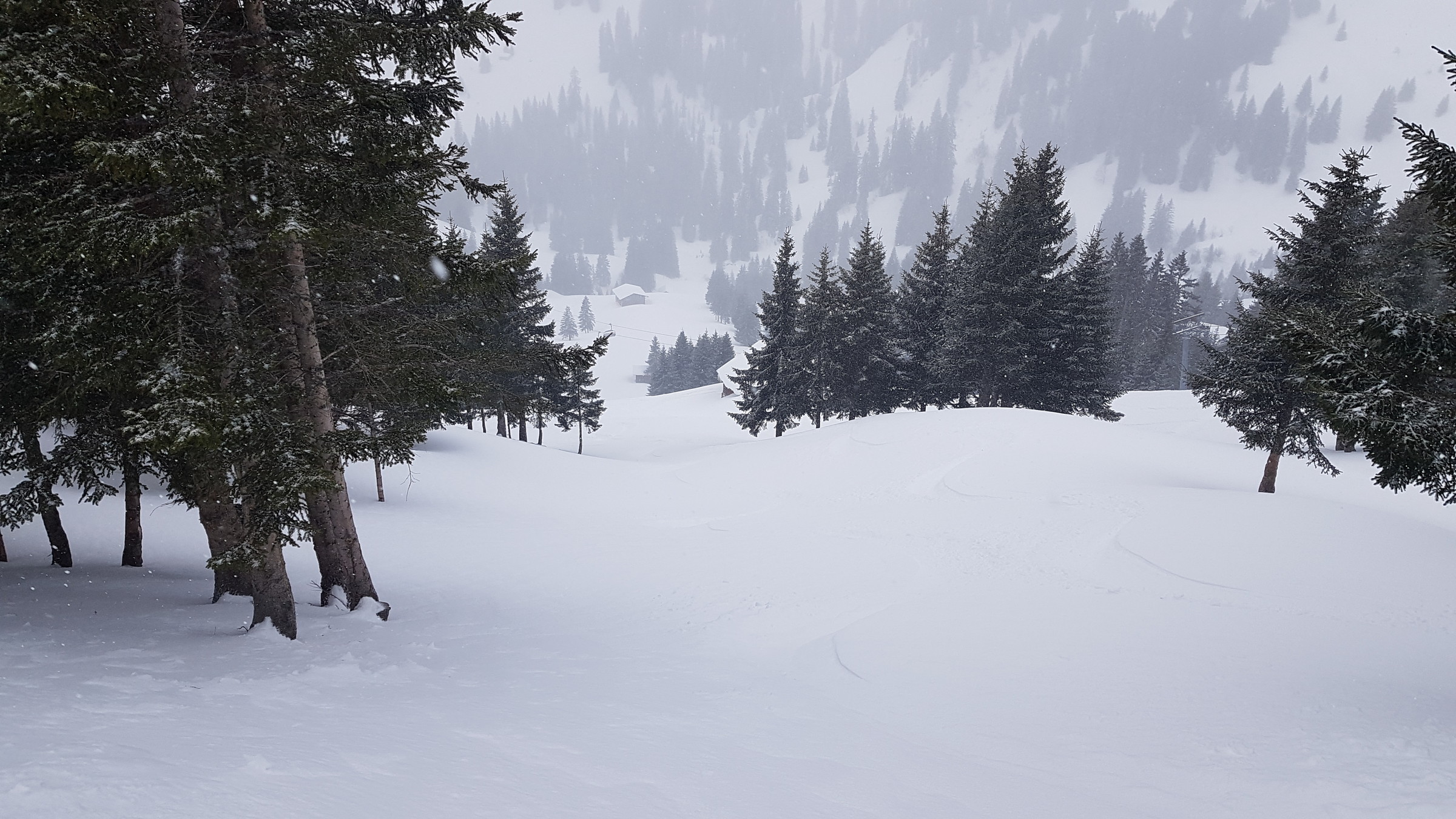 Heute auf jeden Fall ein super Powdertag. Ragaz und die Verbindung nach Mellau blieben zu. Aufgrund der Sichtverhältnisse blieb ich aber eh den ganzen Tag auf den waldigen Geländevarianten an Sunnegg und Hasenbühel. Vormittags waren noch ein paar mehr im Gelände unterwegs, ab dem Mittag wurde es dann ruhiger. Und unter den Wochengästen nur wenige, die abseits fuhren. Außerdem schneite es den ganzen Tag, teils kräftig durch. So hatte ich immer frische, unverspurte Hänge