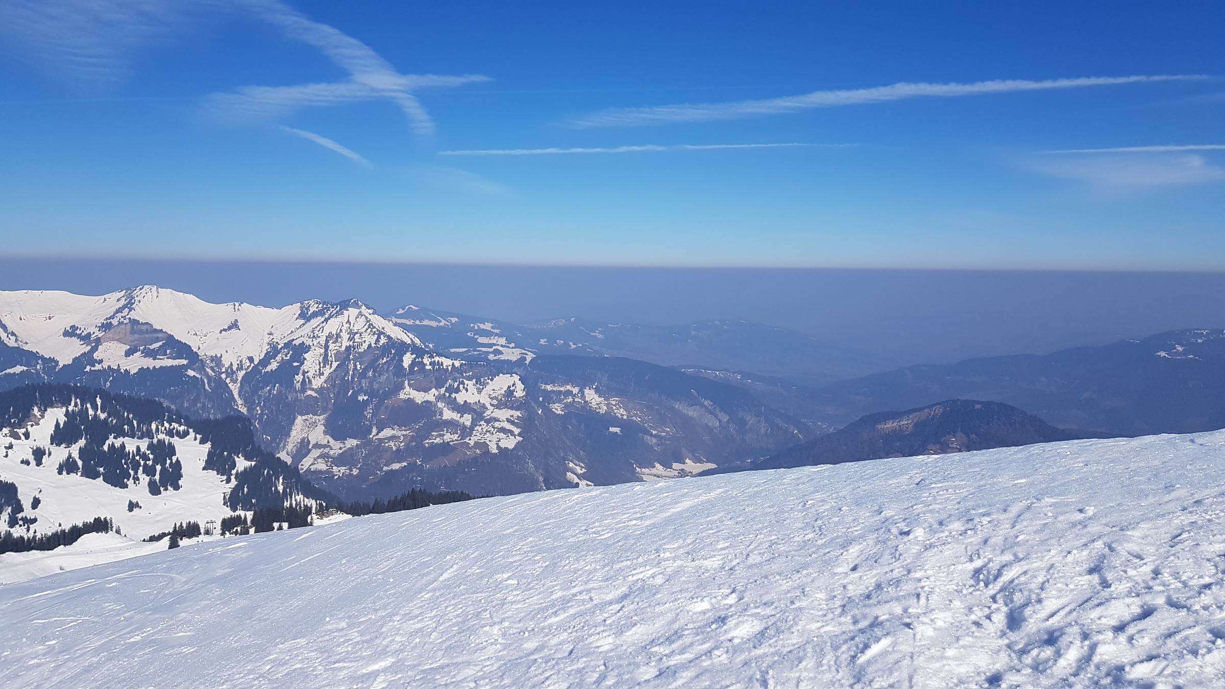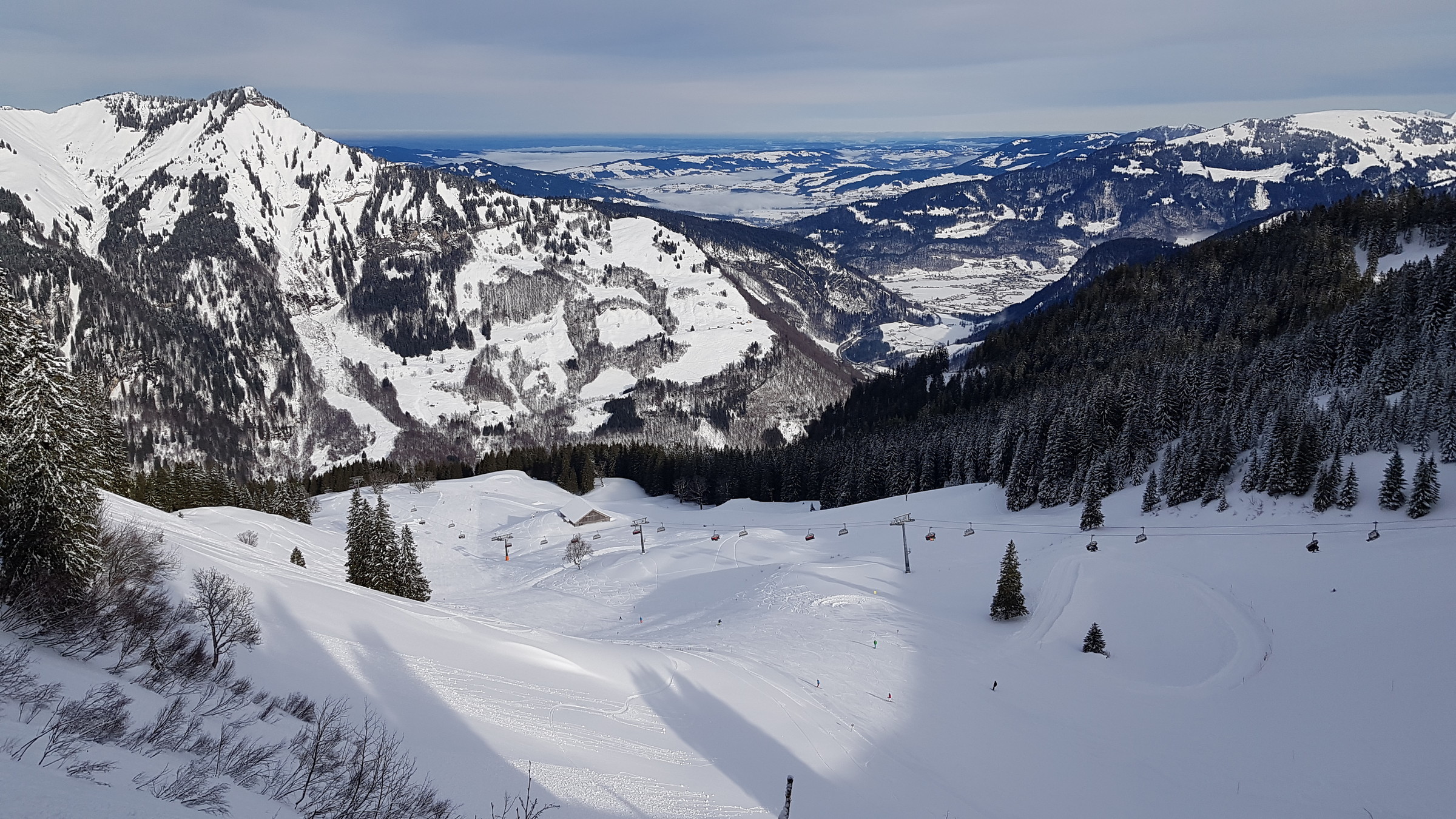 Heute vormittag gab's dann nochmal gut 10 cm on top, dank zunehmend kalter Temperaturen auch ziemlich pulvrig. Bin dann ab Mittag auf die Piste, als die Sonne herauskam. Südseitig wurde der Neuschnee entsprechend schnell schwer, nordseitig (Sunnegg-Varianten, Elsenkopf, Gipfelbahn, Suttis) blieb er aber sehr gut. Die Pisten häufig nicht schön (ziemlich glatt mit bremsenden Haufen), Gelände viel besser.