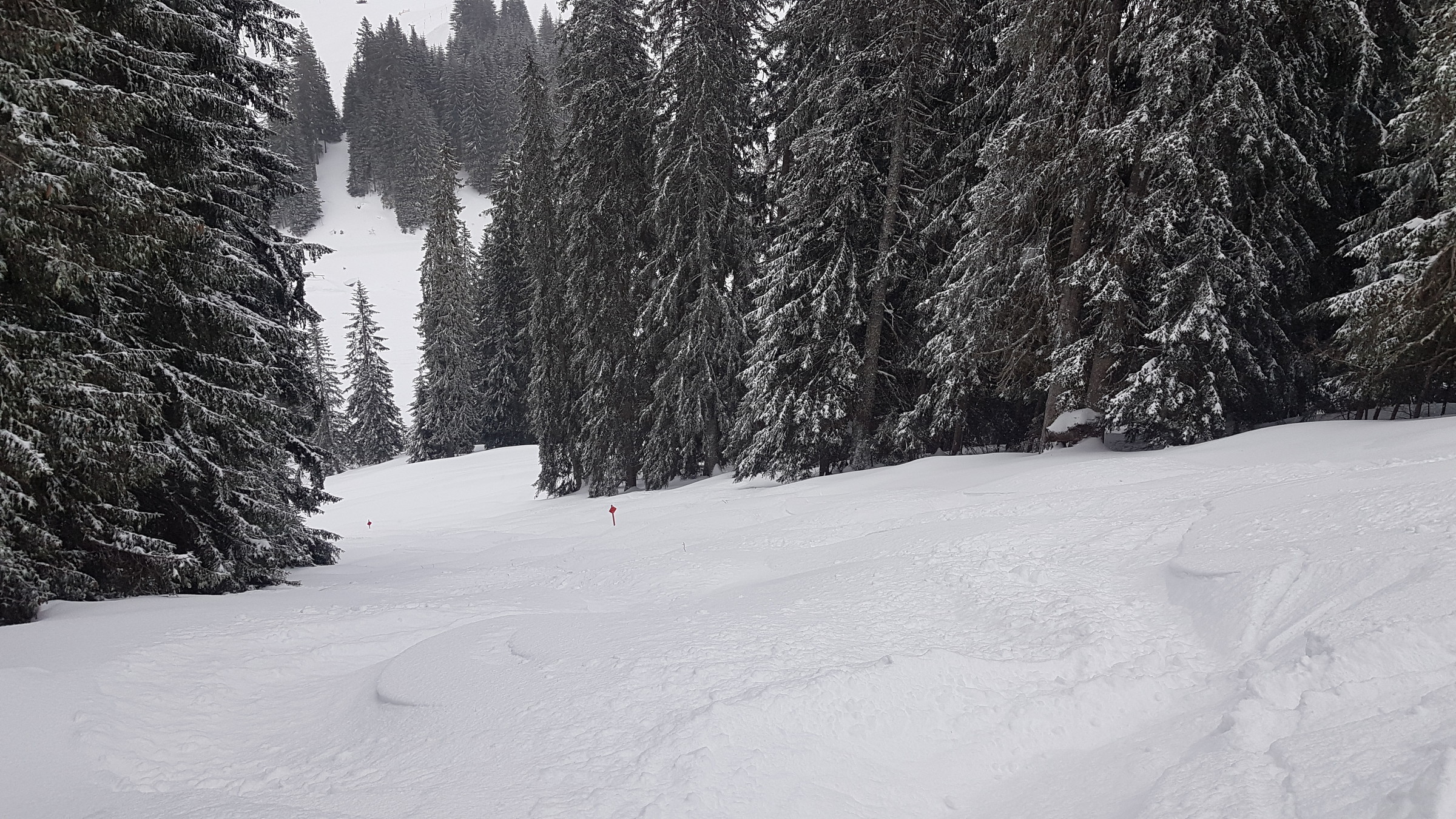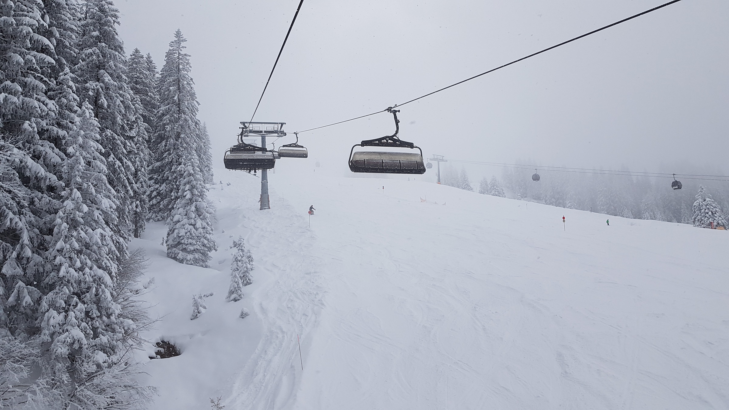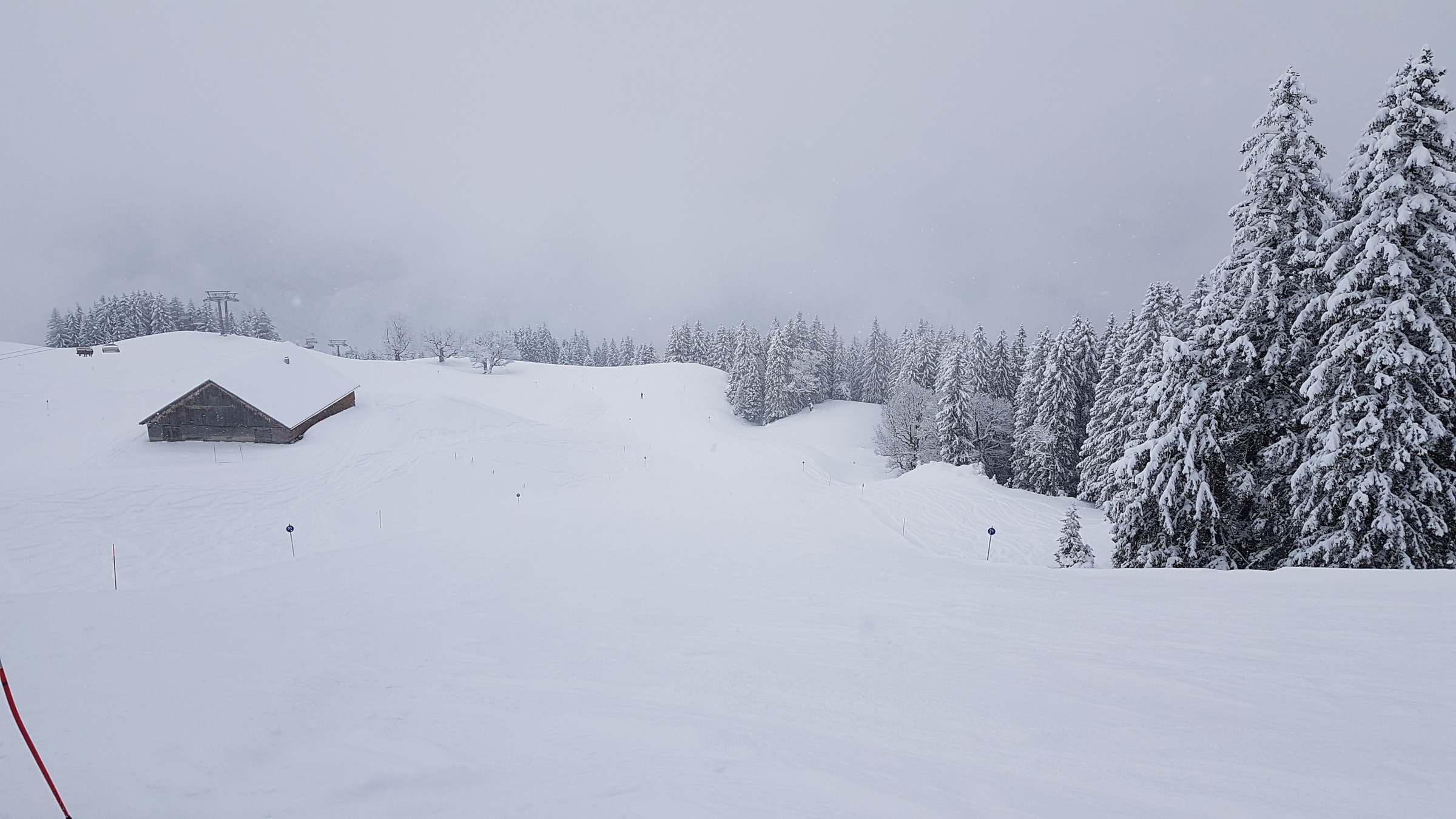 Nach 20-30 l Regen die letzten Tage wurde es in der Nacht endlich mal kalt genug für Schneefall. Immerhin gut 20 cm und in ganz guter Qualität in den höheren Lagen. Auch am Nachmittag fand man noch unverspurte Varianten, auch weil trotz Wochenende heute nur sehr wenig los war im Skigebiet.
