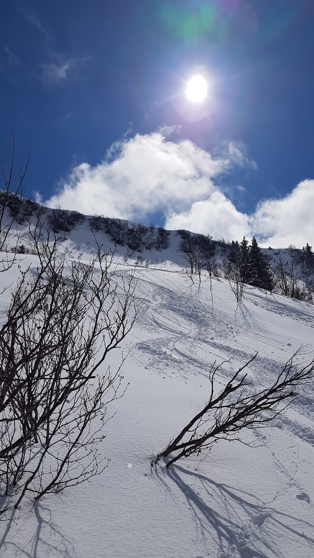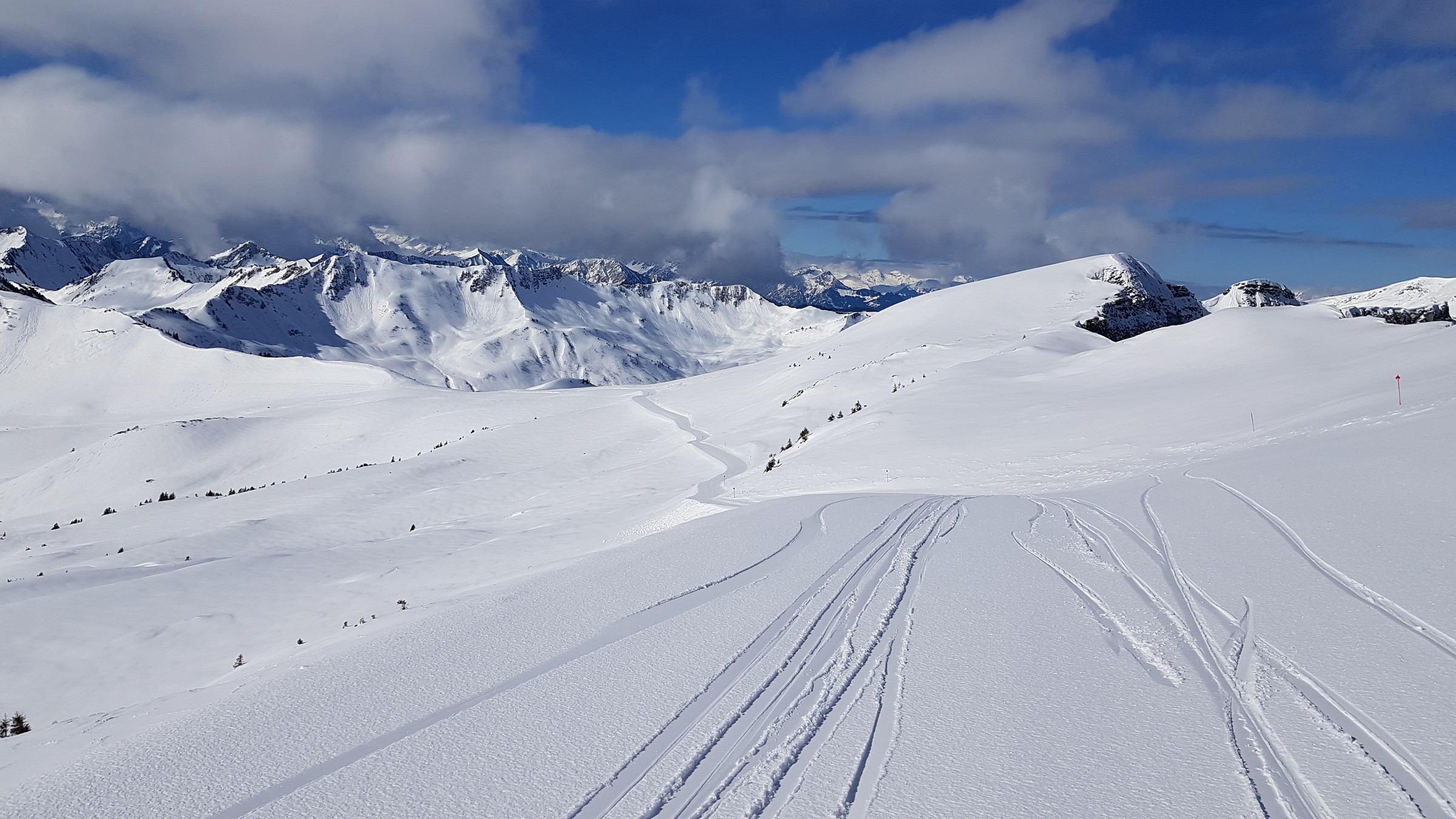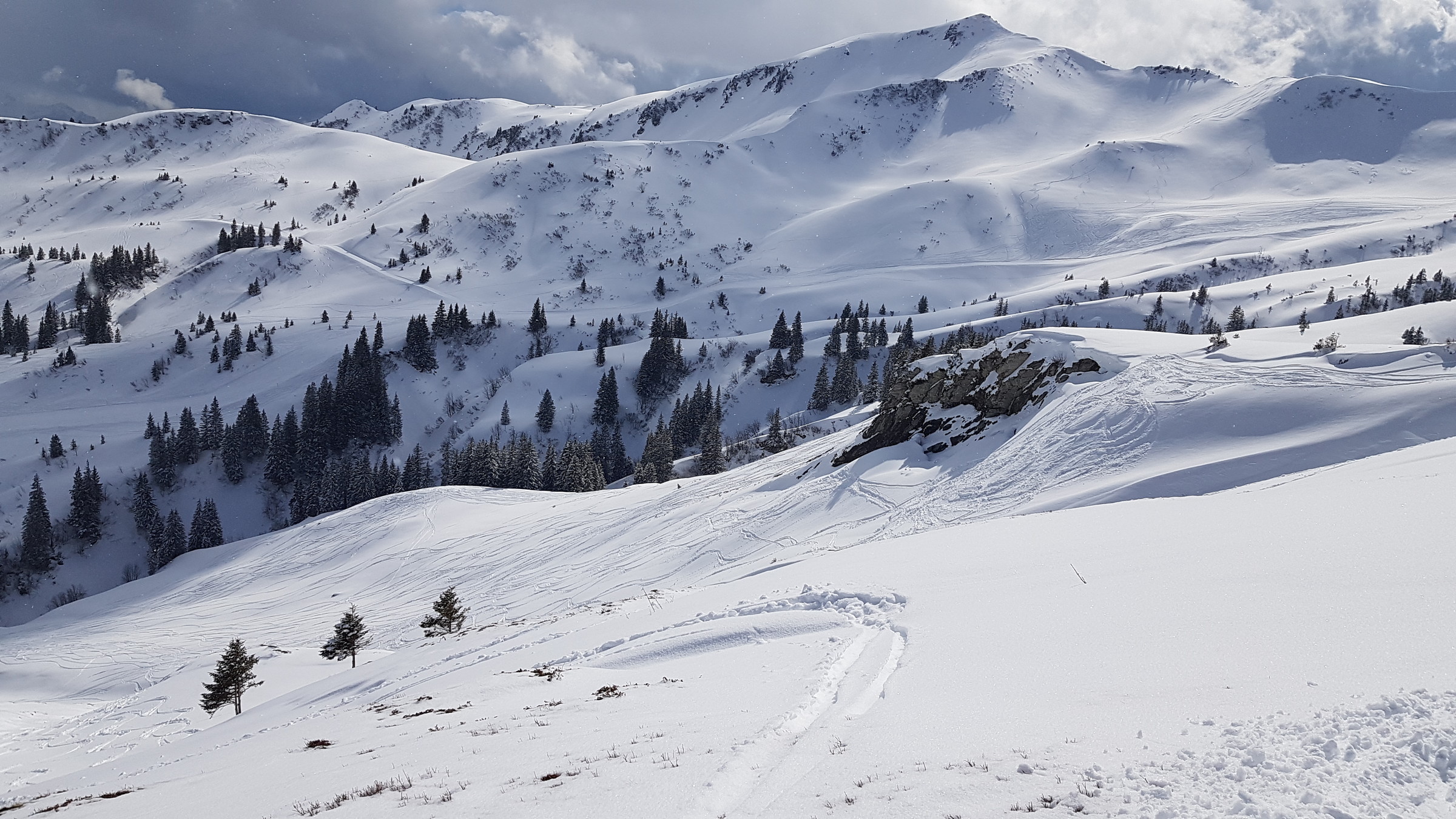 Die letzten Tage waren überraschend gut. Schöner Pulver der lange pulvrig geblieben ist, dem Sonnen-Wolkenspiel sei dank.