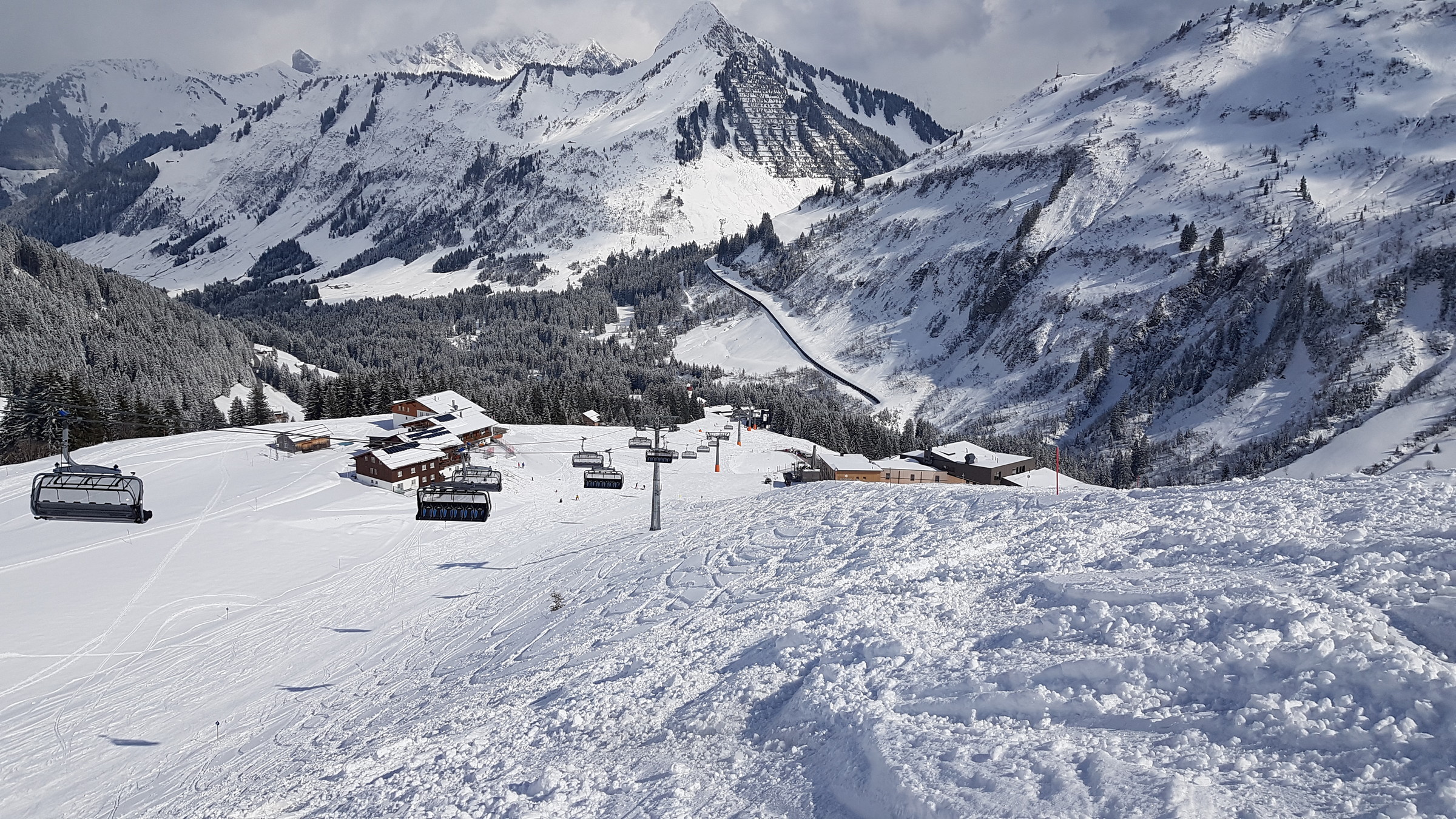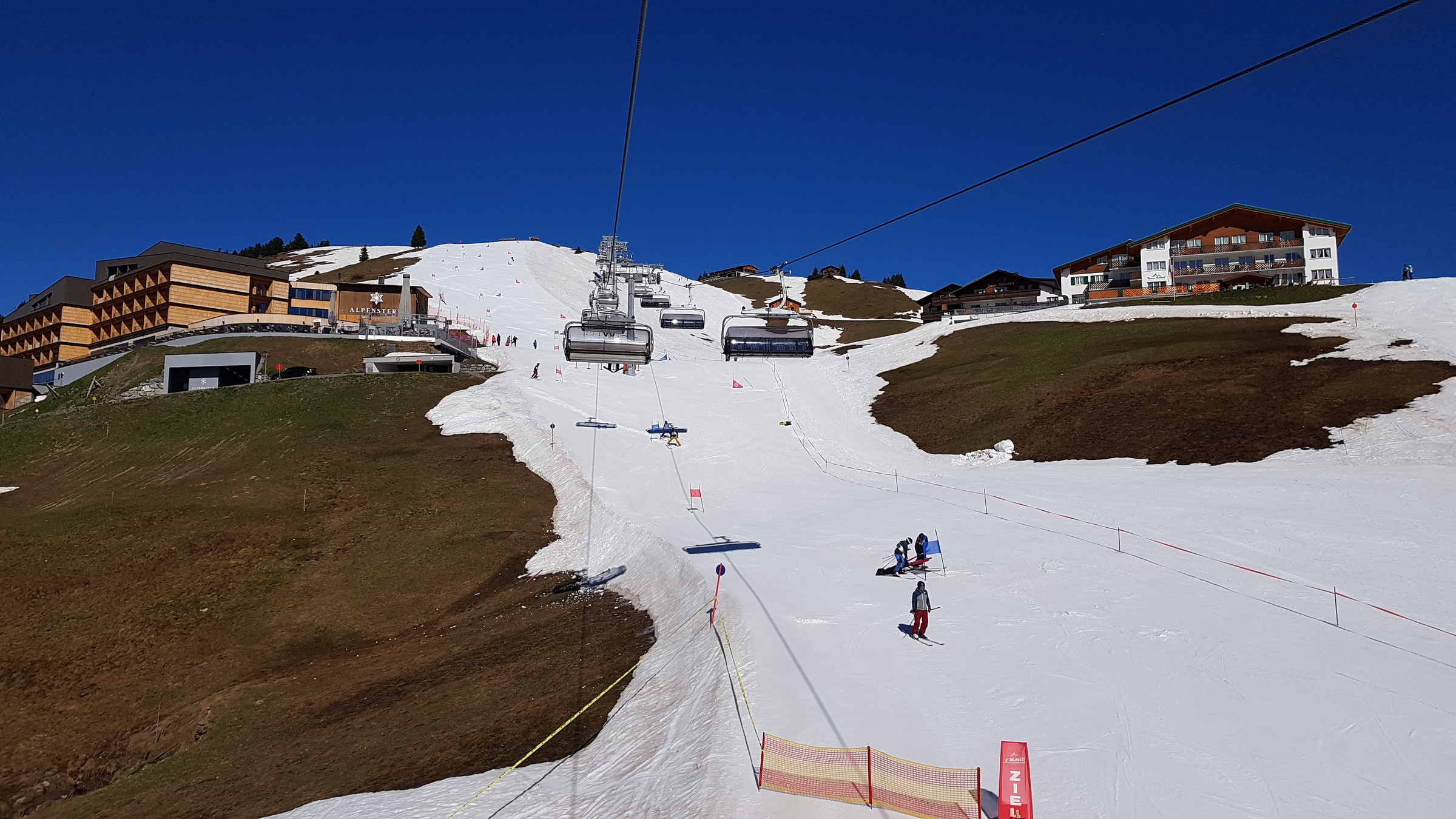 Da hatte ich es am Montag noch besser erwischt, als ich zu einem richtigen Frühlingsskitag in Damüls war. Morgens war es sehr leer und die frisch präparierte Direkte an der Sunnegg war super. Gegen elf wurde es dann doch voller und an der Hasenbühel musste man auch richtig anstehen. Das lag aber daran, dass die Hohe Licht nicht in Betrieb war. Ein paar Steine habe ich nur an der Wildgunten entdecken können. Nachmittags waren dann die Sonnenpisten schöner Sulz (es war total warm) und die anderen teilweise abgerutscht und hart. Richtige Eisplatten gab es aber nicht.