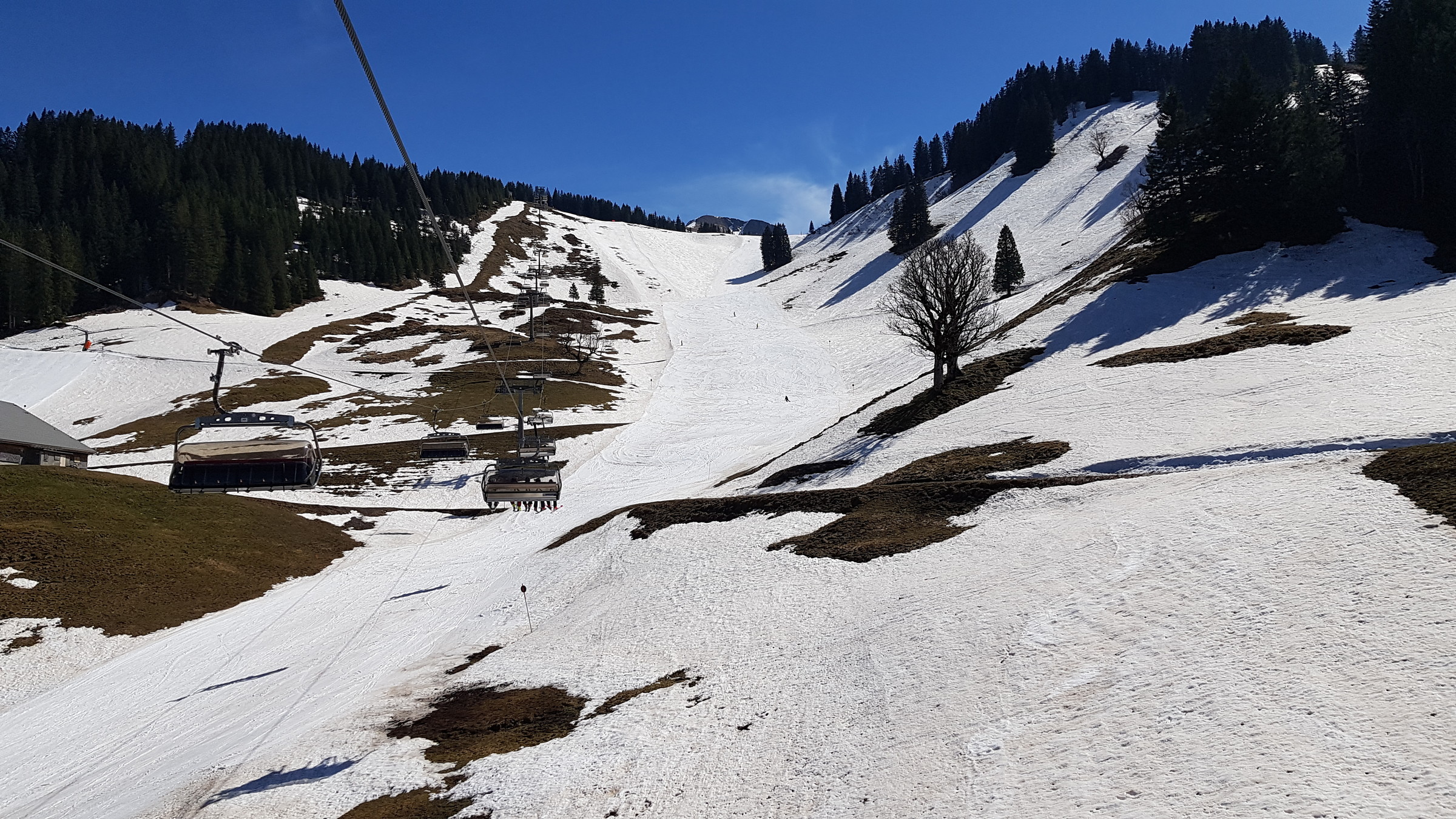 Als weitere Folge gibt es im Vergleich zum Vorjahr nun deutlich weniger Schnee abseits der Pisten. Nordseitig geht es naheliegenderweise noch am besten. Die Pisten halten bezüglich der Schneehöhe, trotz der Qualen der letzten Wochen, noch erstaunlich gut durch, selbst die Rodelbahn ist noch offen.