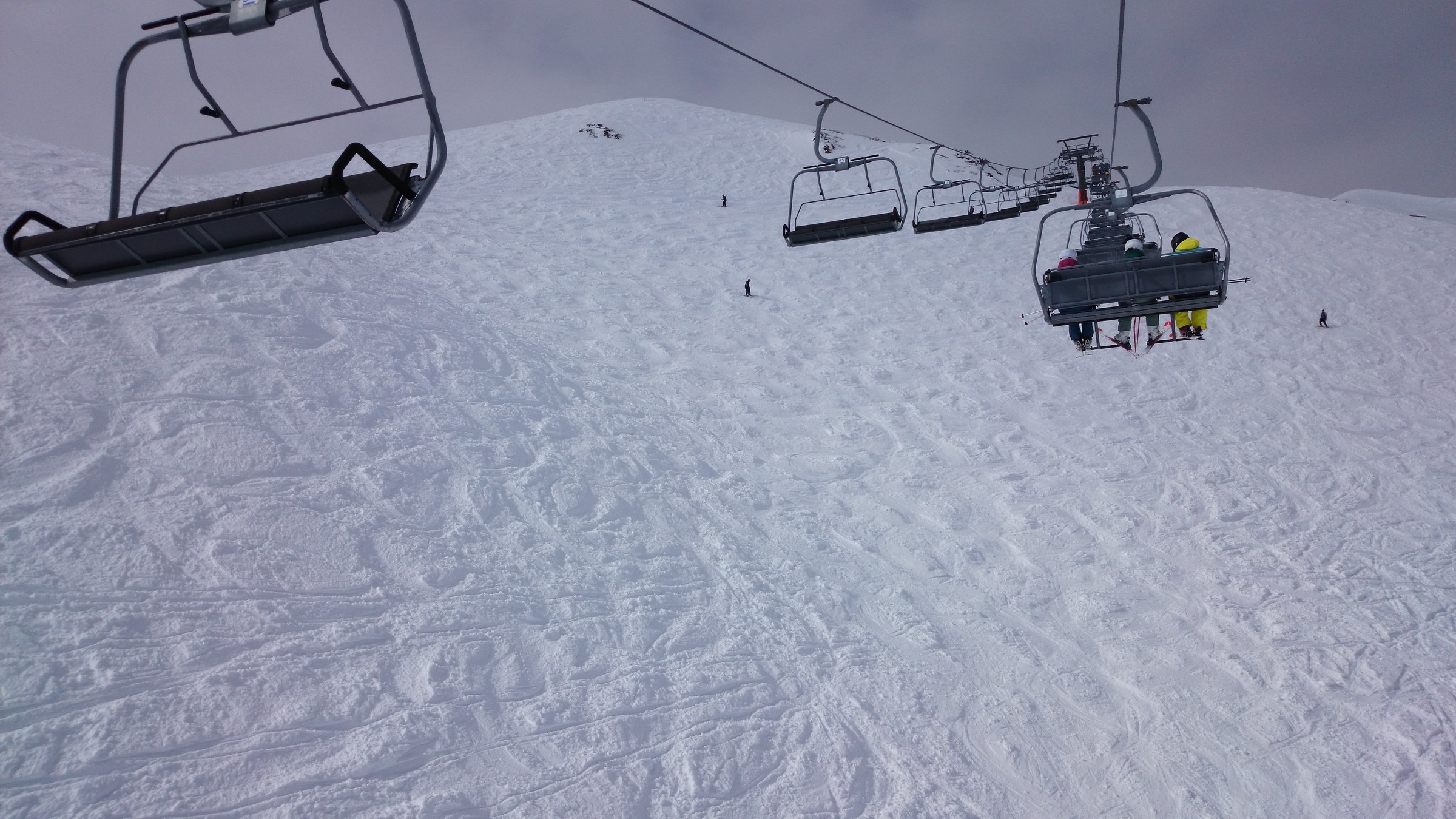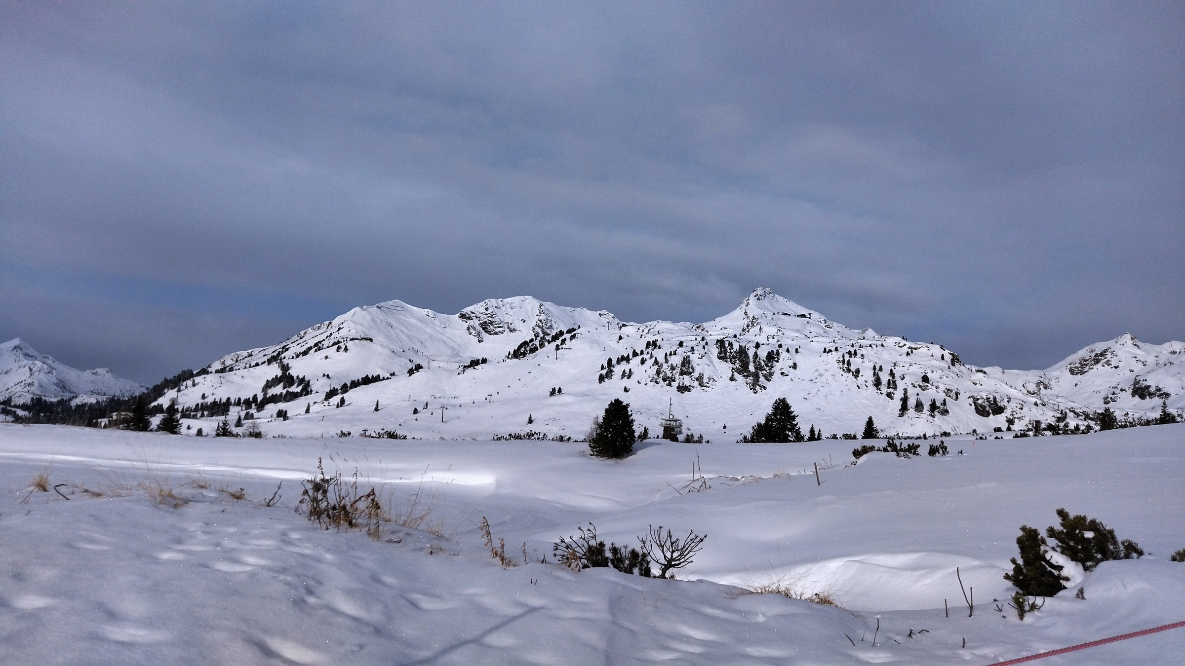 Schnee abseits ist plattgedrückt und nicht erwähnenswert, aber auf den Pisten weitgehend griffig und kaum glatte Stellen.