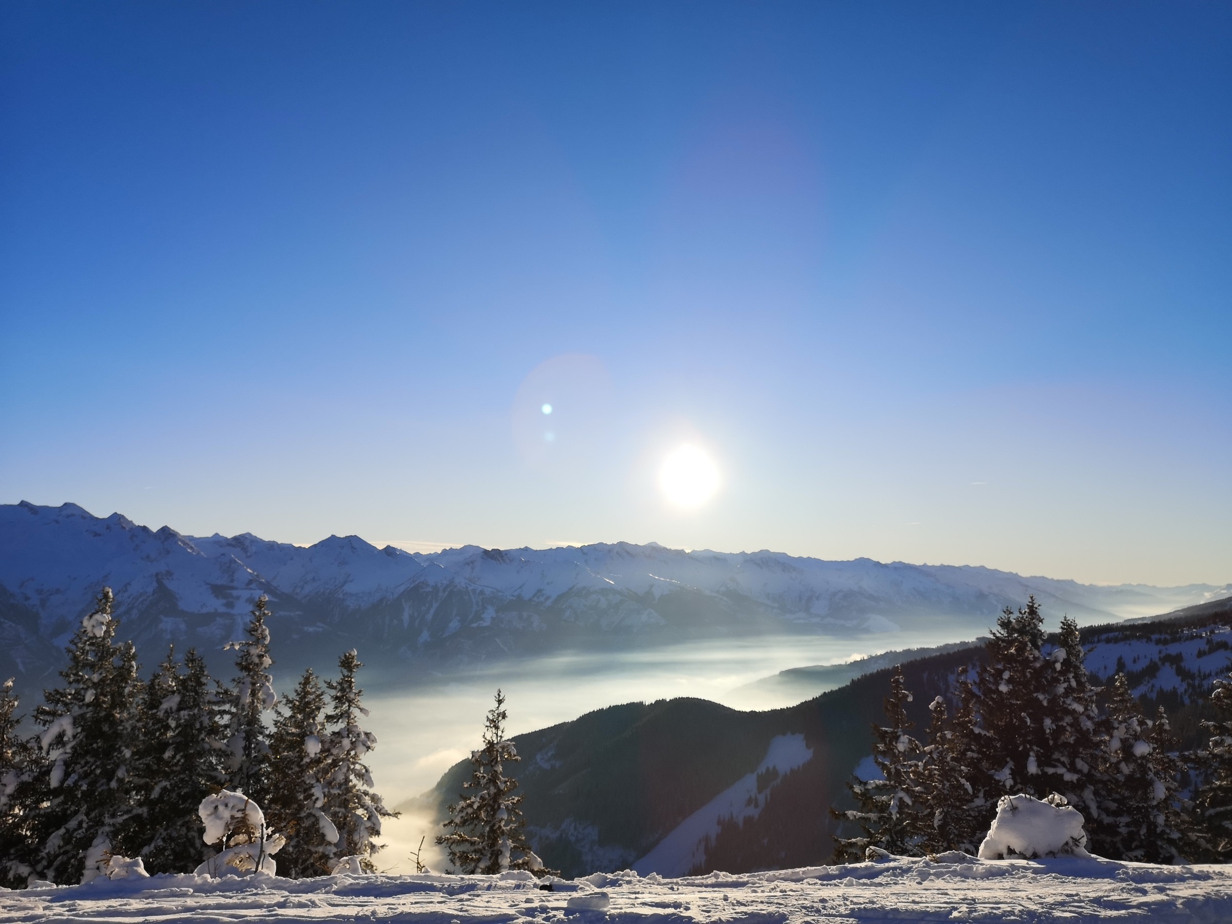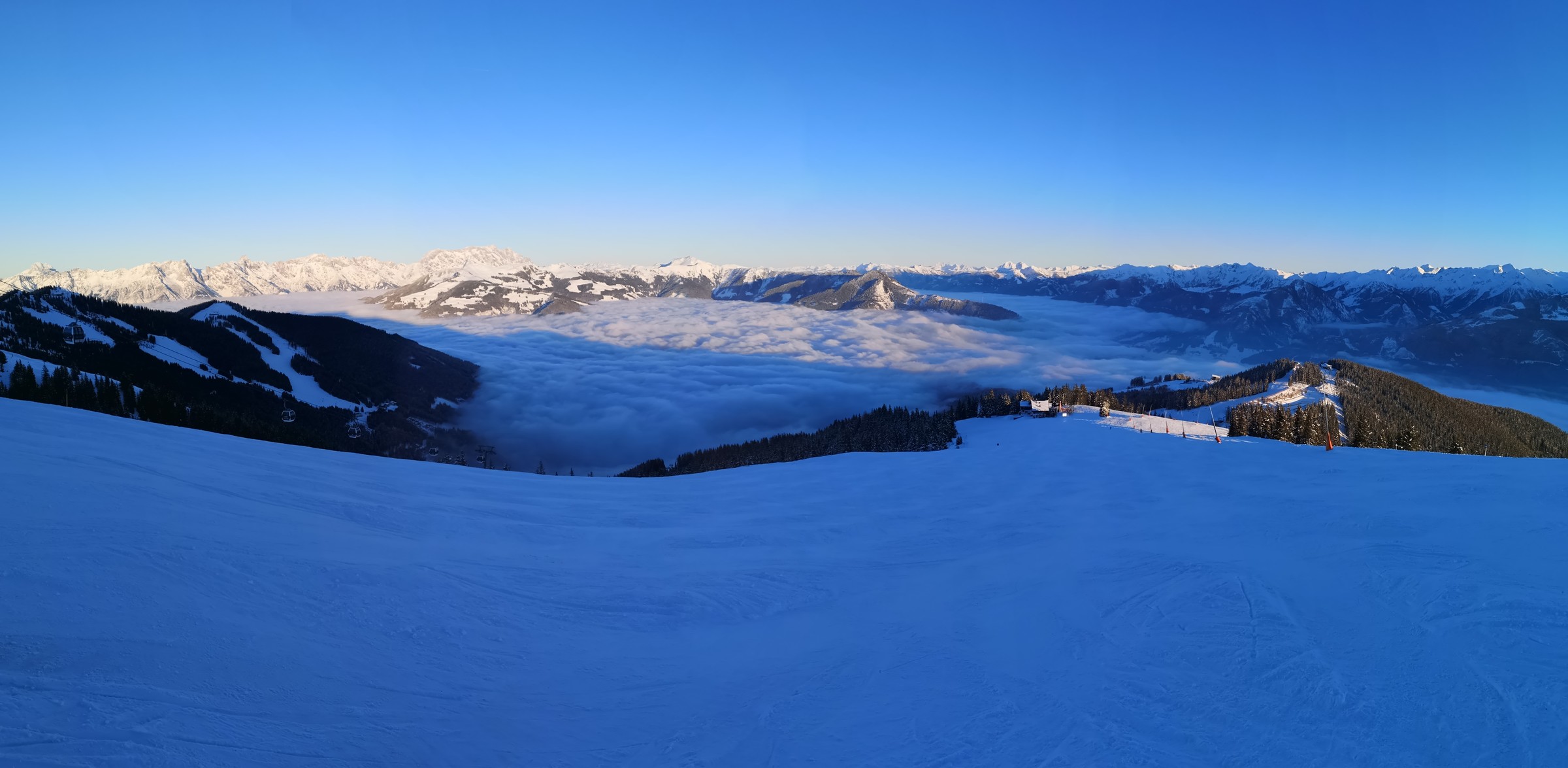 Was gibts sonst noch zu sagen: Panorama wie immer gewaltig. Wetter war am Vormittag traumhaft, Nebel im Tal. Gegen Mittag etwas bewölkt. Skihütten dadurch und wegen der Kälte überfüllt. Draußen sitzen wollte ich nicht. Nach 3 Versuchen an 3 Hütten den Plan etwas zu essen abgebrochen. Am Nachmittag dann wieder ein Sonnenfenster.