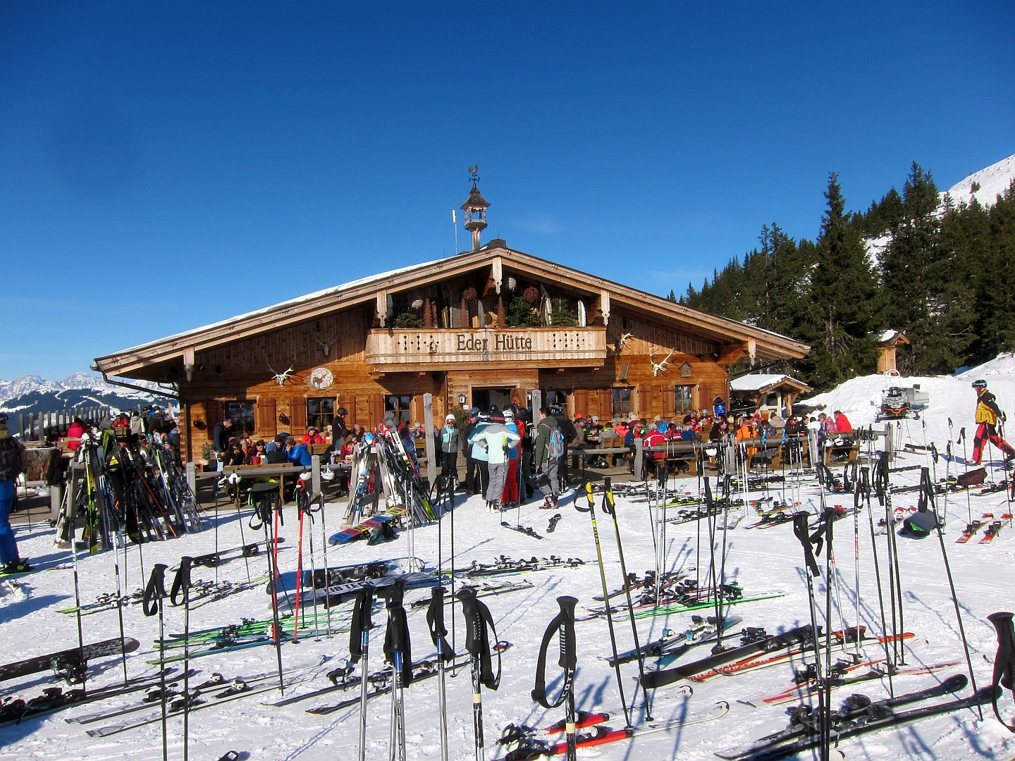 - 4. Der Einkehrschwung führt mich diesmal etwas abseits der Standardmöglichkeiten. Nämlich zur Pinzgauer Hütte. Hab durch durch Zufall an der Talstation der Kapellbahn das "Geöffnet" Schild gesehen und musste es natürlich ausprobieren. Und ich muss sagen, ich war sehr zufrieden. Gutes Essen, gemütlich, schönes Panorama und das Highlight kommt zum Schluss: Rücktransport zur Kapellbahn per Skido.