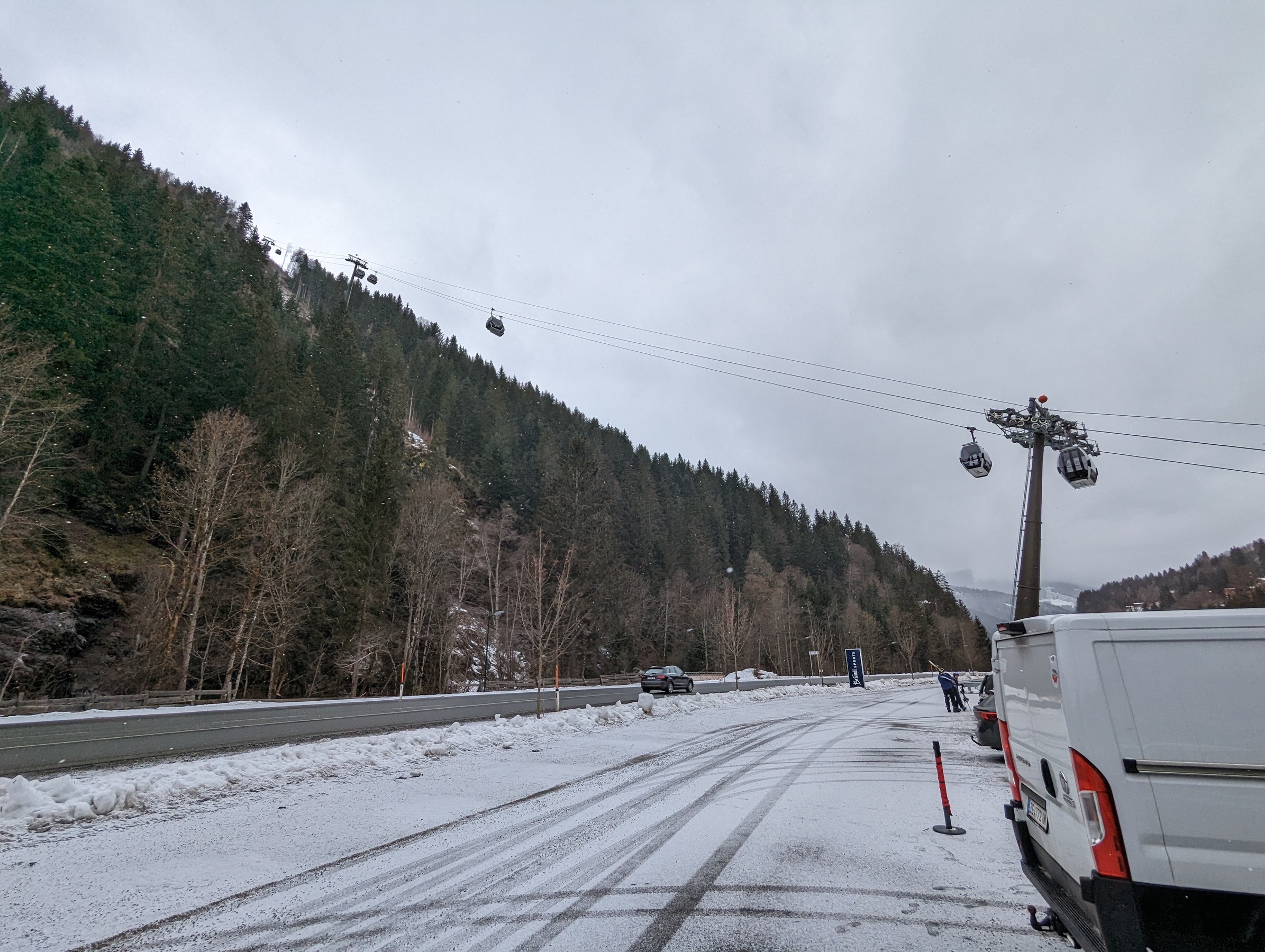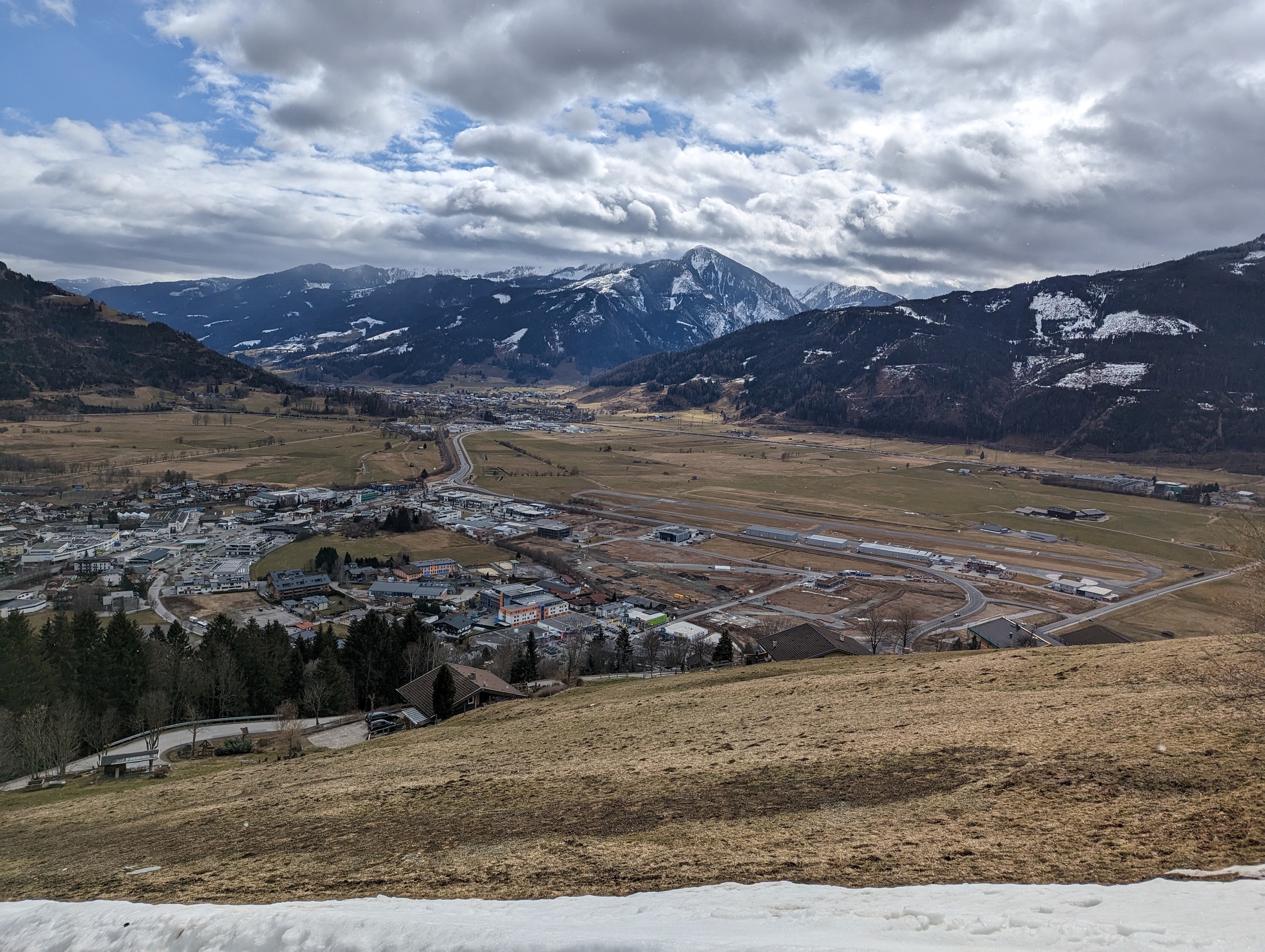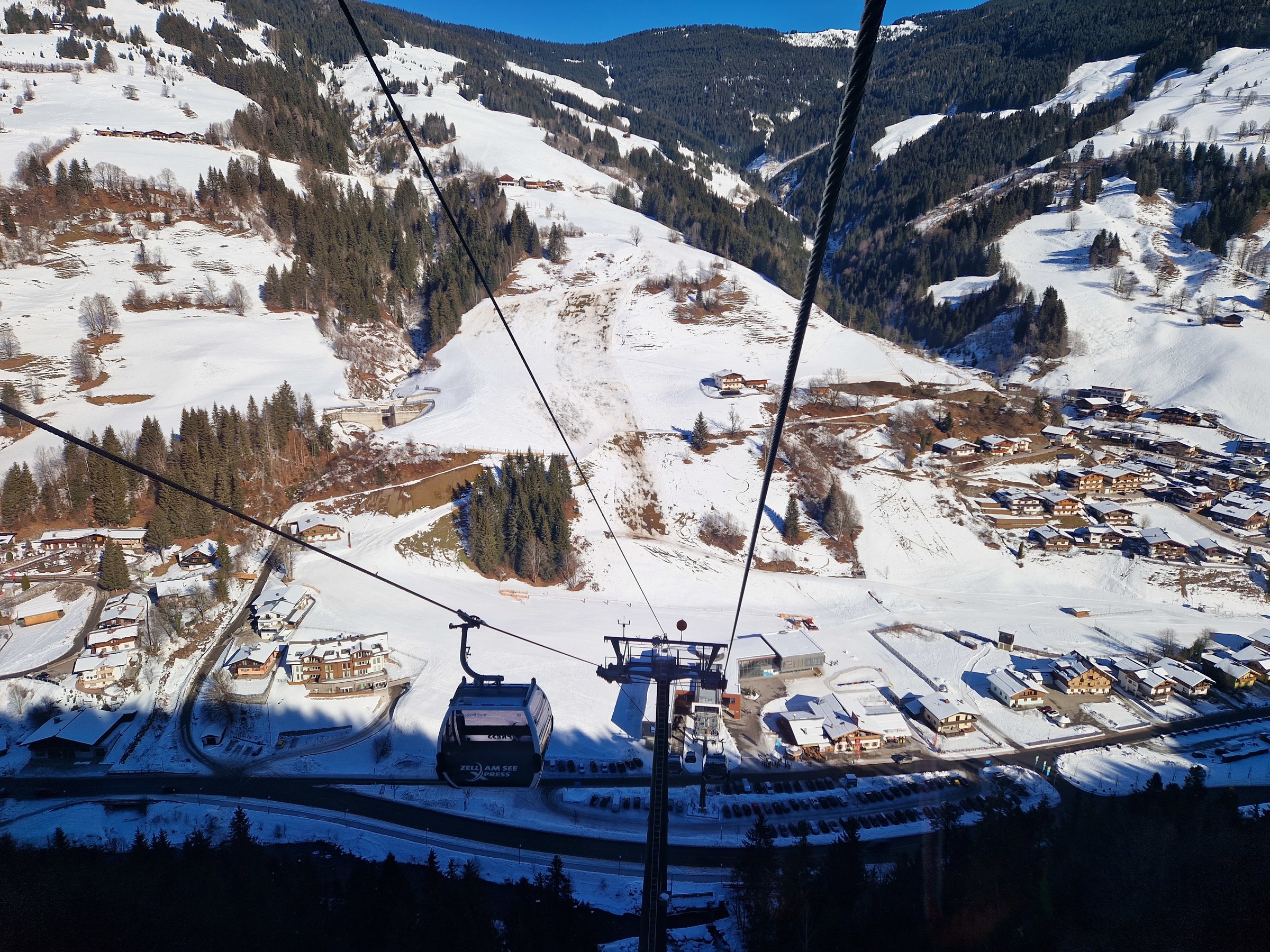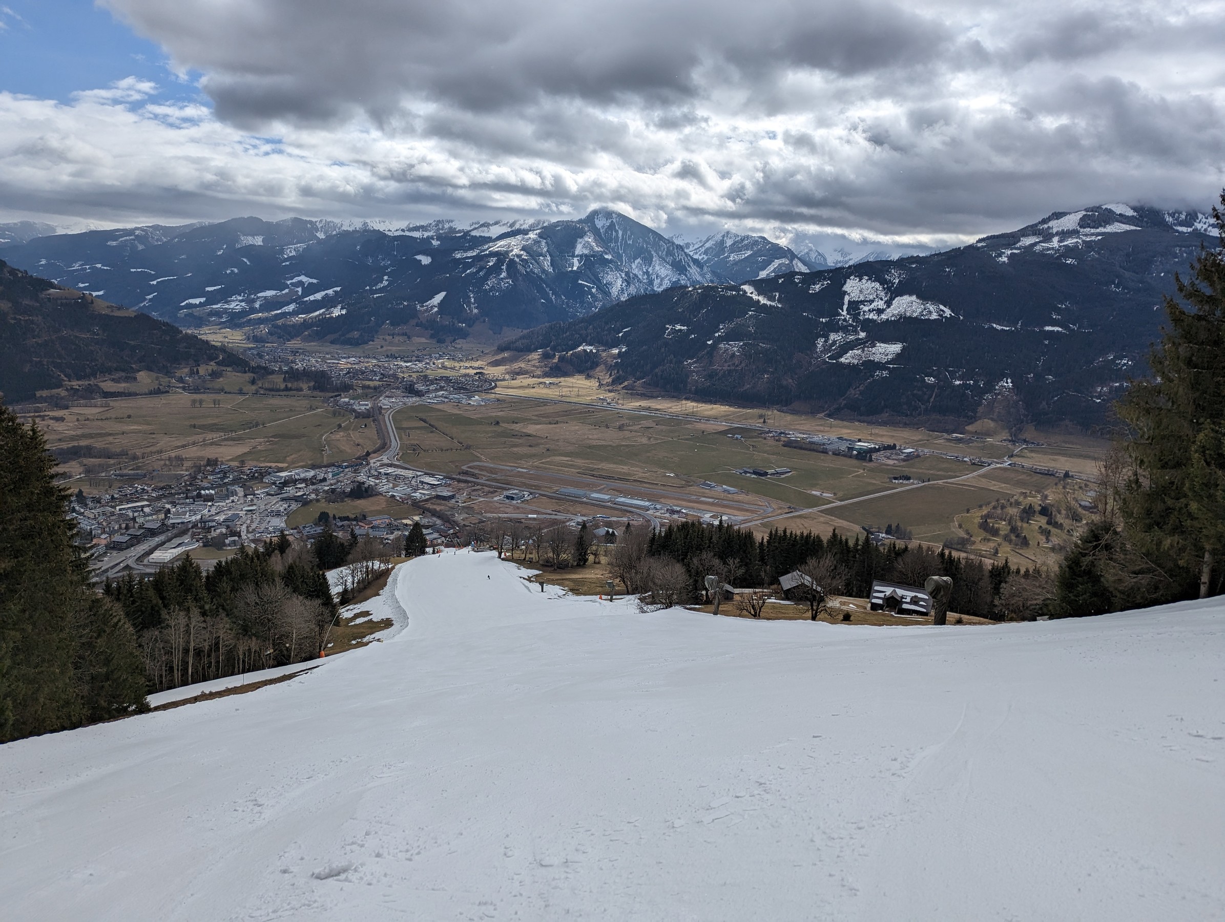 - 1. Auffahrt ZellamseeXpress. Sonnseitige Lagen sind schon extrem schneearm. Eher wie im April, als März.