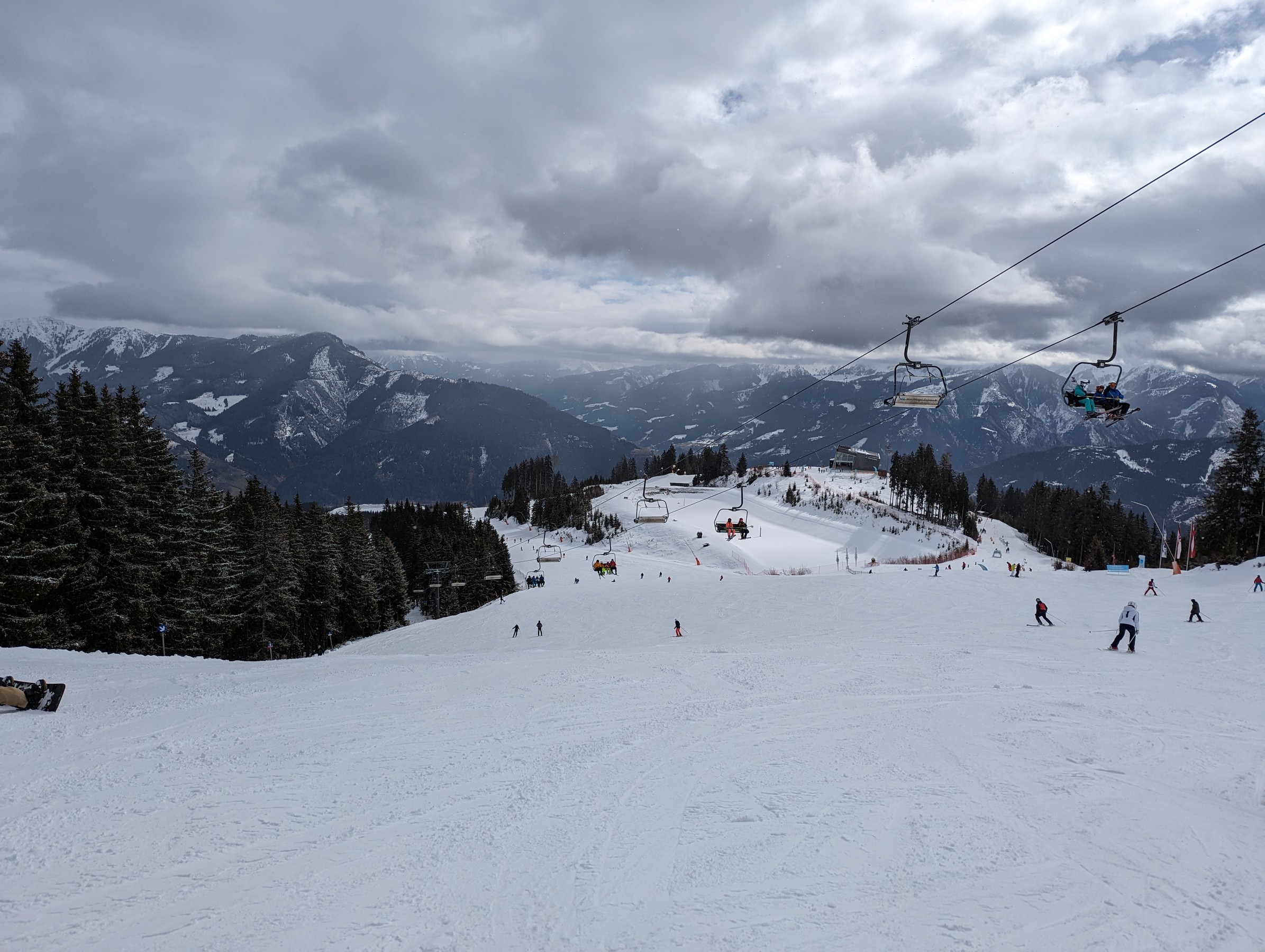 Beste Pisten: Vom Ausstieg Hirschkogl-Express über die Nordabfahrt hinunter zum Trass-Express. Schwarze Abfahrt am Sonnkogel 3er. (Ich würde sogar sagen die Abfahrt am City Express war auch sehr gut, weil wenig zerfahren. Allerdings die Kombination viele Steine + neue Ski, haben mich doch von Wiederholungsfahrten abgehalten. Hier wären alte Ski ein Traum gewesen, aber man kann ja nicht alles haben