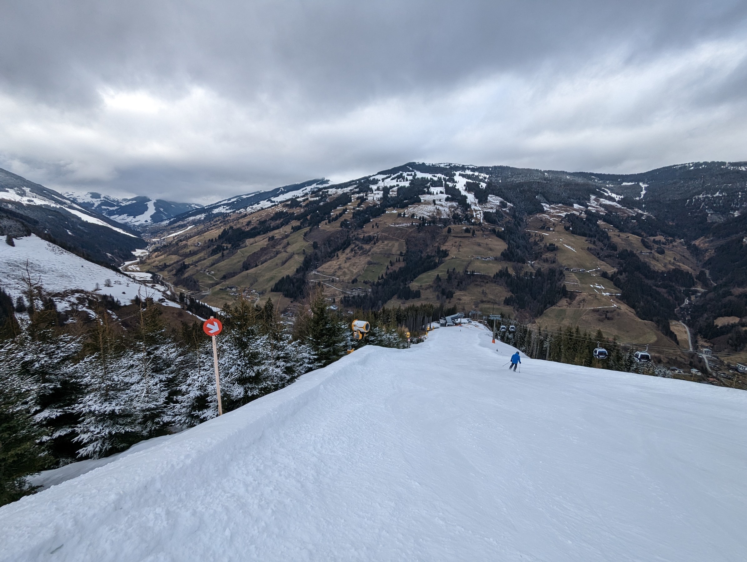 Wenig los, daher ganztags kaum verbuckelt und aufgrund der niedrigen Temperaturen pulvrig. (Allerdings auch einige Schneekanonen in Betrieb, die aber auf den Talabfahrten dringend benötigt werden.)