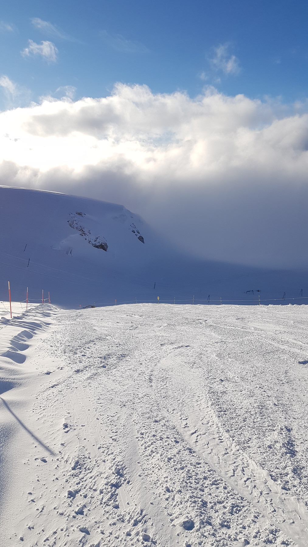 Der Neuschnee (vllt 20-30 cm, auf jeden deutlich weniger als in den Ostalpen ) war auf allen Pisten nochmal frisch präpariert. Das gibt's nur selten in Skigebieten und war super gut. Dennoch fuhren manche Pisten etwas auf, war mit 106er Skiern aber kein Problem.