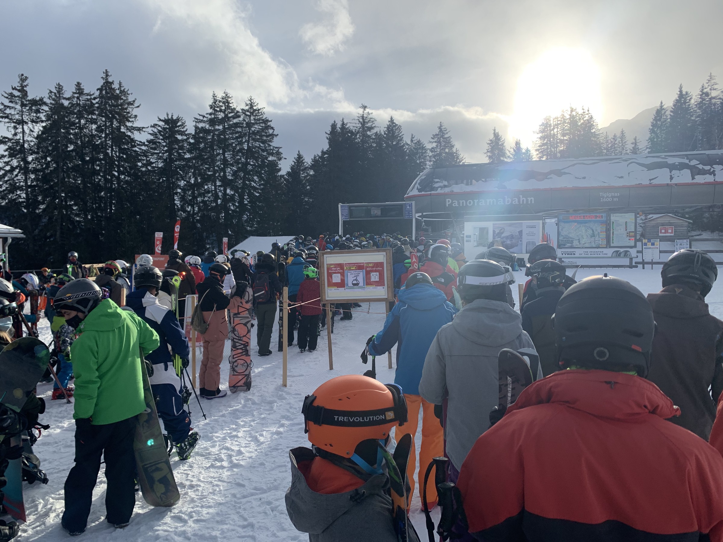 Die untere EUB lief tatsächlich sehr unregelmässig und die Schlange war dementsprechend lang, hab mir dabei aber eigentlich keine grossen Gedanken gemacht. Böse Zungen würden sagen, ich hätte ich mich zu fest an die Zustände am Arenaexpress in Flims gewöhnt.