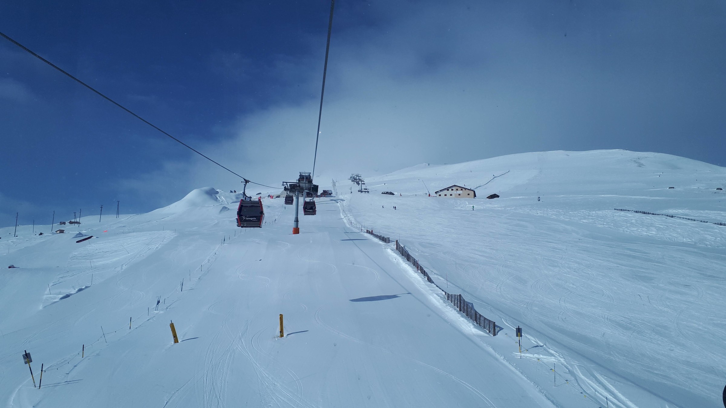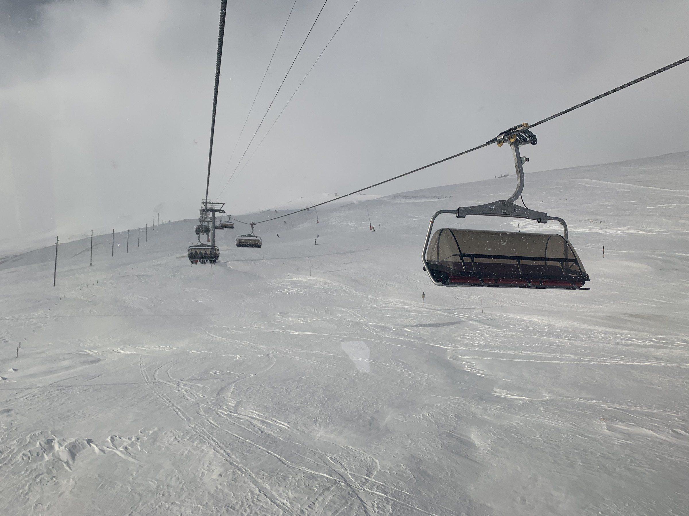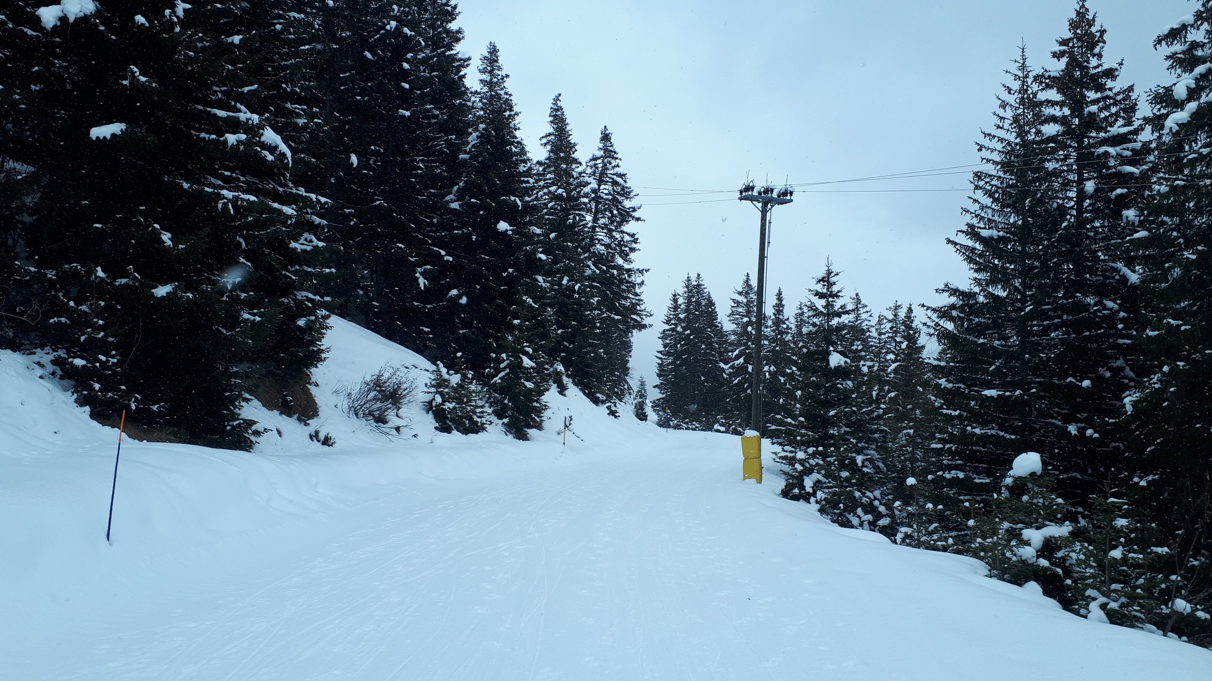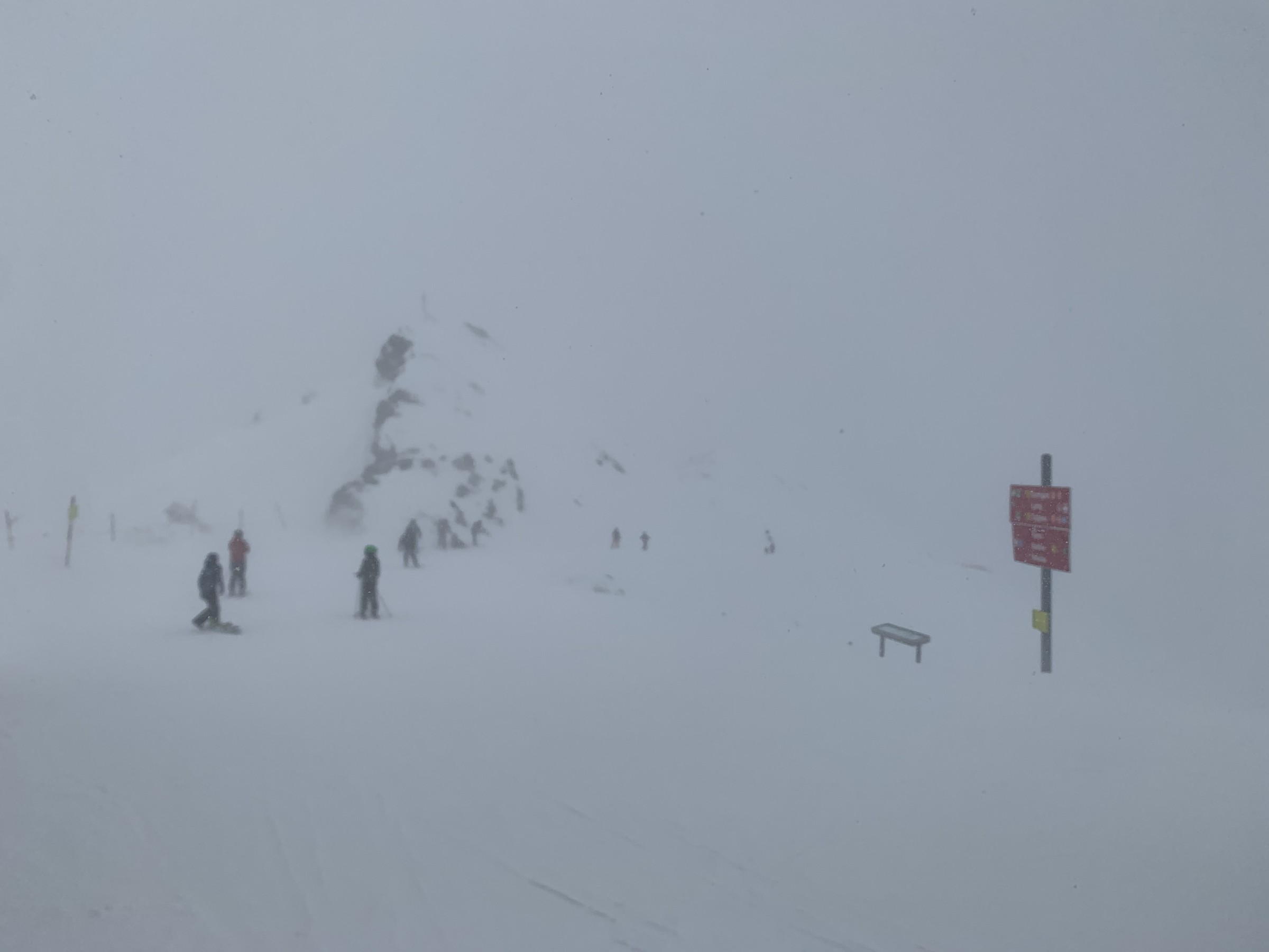 Heute war es doch eher enttäuschend. Aufgrund einer Kombination von fehlender Motivation und Wind blieben alle Anlagen ausser den beiden Gondelbahnen geschlossen. Die offenen Pisten waren zwar ganz in Ordnung, aber halt fast schon voll (verglichen mit gestern). Es waren doch ziemlich alle Gondeln gefüllt, aber es wurden kaum Gästegruppen gemischt. Wetter an sich ziemlich gut, zwar immer wieder einzelne Schneeschauer, aber auch regelmässig Sonne.