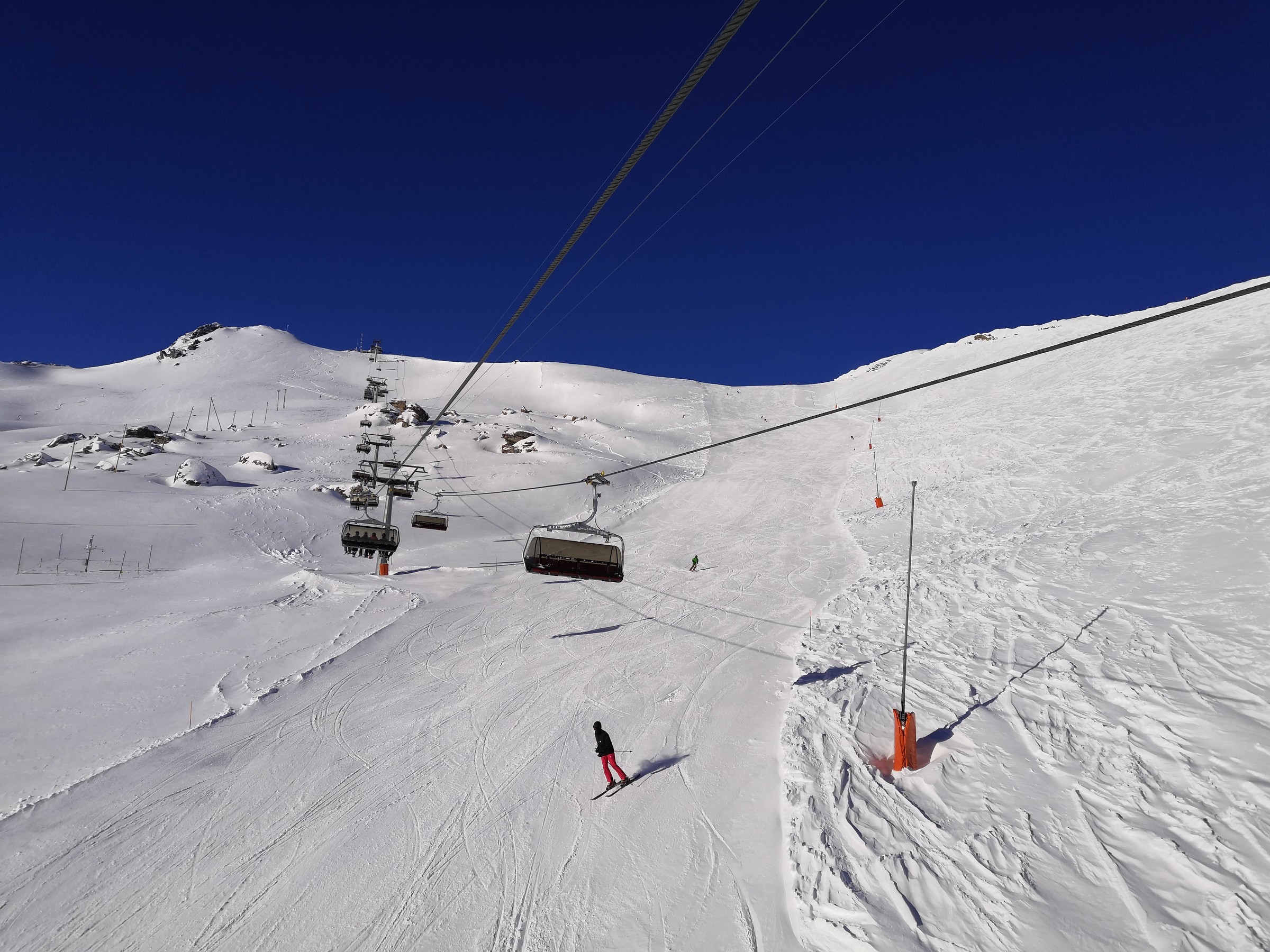Auch Piste 9 ein absoluter Traum, einzig unten ein paar Stellen mit kleinen Steinen. Das ist der Preis dafür, das hier kein Kunstschnee eingearbeitet ist. Auf dem Skilift ist der Wind zuweilen doch ziemlich unangenehm (besonders, wenn man zum fotografieren die Handschuhe auszieht