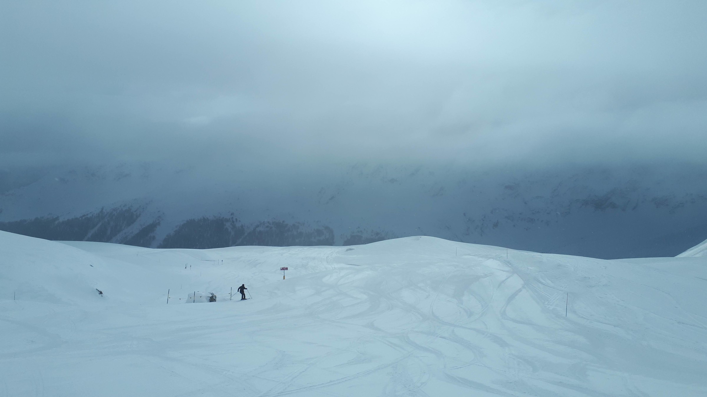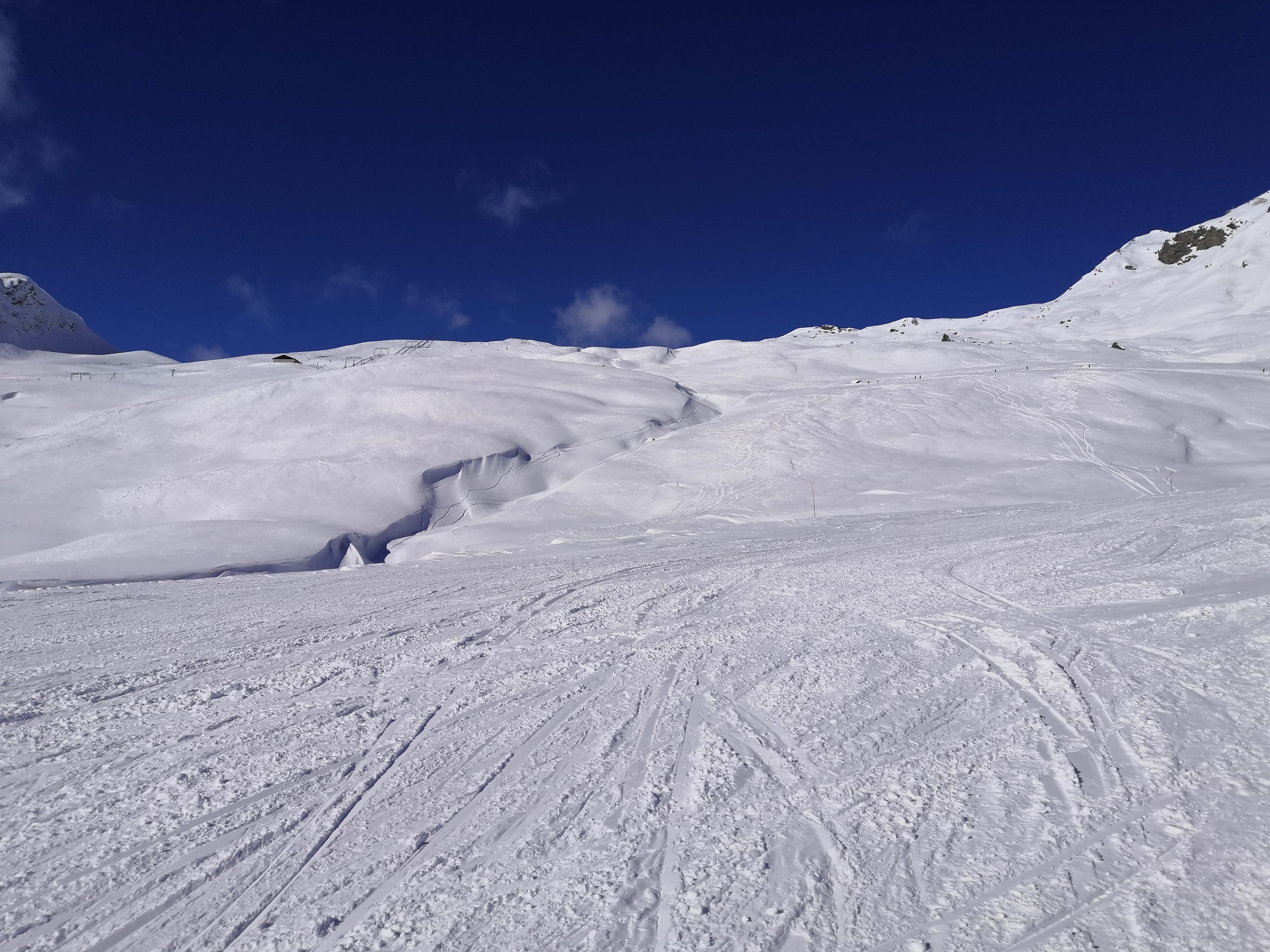 Auf den Pisten waren so 2-5cm Neuschnee, aber auch darunter war es schöner Pulverschnee. Rund um Tigignas war der Untergrund etwas härter, aber trotzdem super zu fahren. Die Talabfahrt war ganz leicht angesulzt und habe ich noch nie so gut erlebt. Da nichts los war, blieben die Pisten den ganzen Tag unverändert toll.