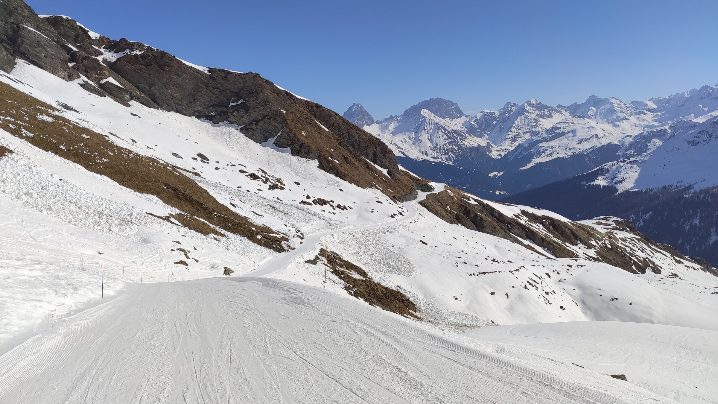 Ich war 8.30h an der Bahn, die auch um diese Zeit aufmacht. Die Talabfahrt war zu dem Zeitpunkt schon vollständig in der Sonne, ein früher Start lohnt sich also. Zuerst bin ich mit der Gondelbahn hoch und bin die Talabfahrt gefahren. Die blaue Variante war zu, die rote wird beschneit und die Basis ist dort noch sehr solide. War auch gar nicht so hart, sondern mit einer Kunstschnee-Auflage griffig zu fahren. Die Talabfahrten muss man immer zuerst machen, um sie zu geniessen. Dann bin ich mit der zweiten Gondel von Tiginias weiter hoch und bin dort die rote und blaue Variante gefahren. Auch dort top. Ich hatte bisher immer angenommen, dass die Gondelbahn durchgängig ist, aber aus irgendeinem Grund hat man zwei separate gebaut. Kapazitätsreduktion war auf 6 Personen - nicht wirklich ein Problem, da man die Gondeln sehr grosszügig dimensioniert hat. An der 2. Gondelbahn wurde es dann gegen 10h etwas voller, aber vielleicht maximal 5min Wartezeit. Das war auch die einzige Stelle, wo heute überhaupt eine nennenswerte Schlange war. Danach habe ich ein paar Runden mit dem Sessellift auf den Piz Martegnas gemacht in Kombination mit dem Laritg-Lift. Die Pisten dort haben mir sehr gut gefallen, bis Tigignas runter gibt es viele Varianten. Pistenzustand war top, alles sehr griffig. Dann bin ich gegen Mittag in den Sektor Radons gefahren. Am unteren Doppelschlepper hat man den Frühling dann gemerkt, die Pisten waren schon weich und teilweise braune und eisige Stellen. Von den Doppelschleppern lief jeweils nur der linke, dort war aber auch fast kein Betrieb. Mittagspause habe ich auch in Radons gemacht. Das Takeway-Angebot ist begrenzt, und draussen ist wieder Stehbankett angesagt. Dann bin ich nochmal komplett hoch auf den Piz Cartas, im oberen Teil waren die Pisten noch top. Auf die Dauer sind die Schlepper aber zu mühsam mit dem Board, deshalb bin ich dann wieder zurück gewechselt. Piste 13A ist eher Langlauf, die habe ich mir gespart, ansonsten kommt man noch über die 11a/b wieder zurück, wobei dort ein Gegenanstieg drin ist, bei dem man schieben muss. Den kann man vermeiden, wenn man die Piste 16 bis zum Naladas-Schlepper nimmt. Danach bin ich noch die restlichen Varianten am Piz Martegnas gefahren, auch hier keine Spur von Sulz. Am Nachmittag sind ein paar Wolken aus Richtung Lenzerheide aufgezogen, aber es war immer noch sonnig. 14.30 war es dann Zeit für die finale Talabfahrt über Piste 8, 5 und 1. Die Piste 5 war immer noch in einem so gutem Zustand, dass ich die einfach nochmals fahren musste. Wirklich kein Sulz und kaum zerfahren, ich habe es fast nicht glauben können. Ab Tigignas runter war dann natürlich eine Sulz-Schlacht. Alles in allem ein ziemlich guter Tag, laut GPS-Tracker 48km und 11.600 Höhenmeter und damit recht steil. Steiler war glaube ich bisher nur Airolo, aber dort besteht auch das halbe Skigebiet aus schwarzen Pisten. Tagespass kostet 61 CHF, Preis-Leistungs-Verhältnis ist absolut in Ordnung.