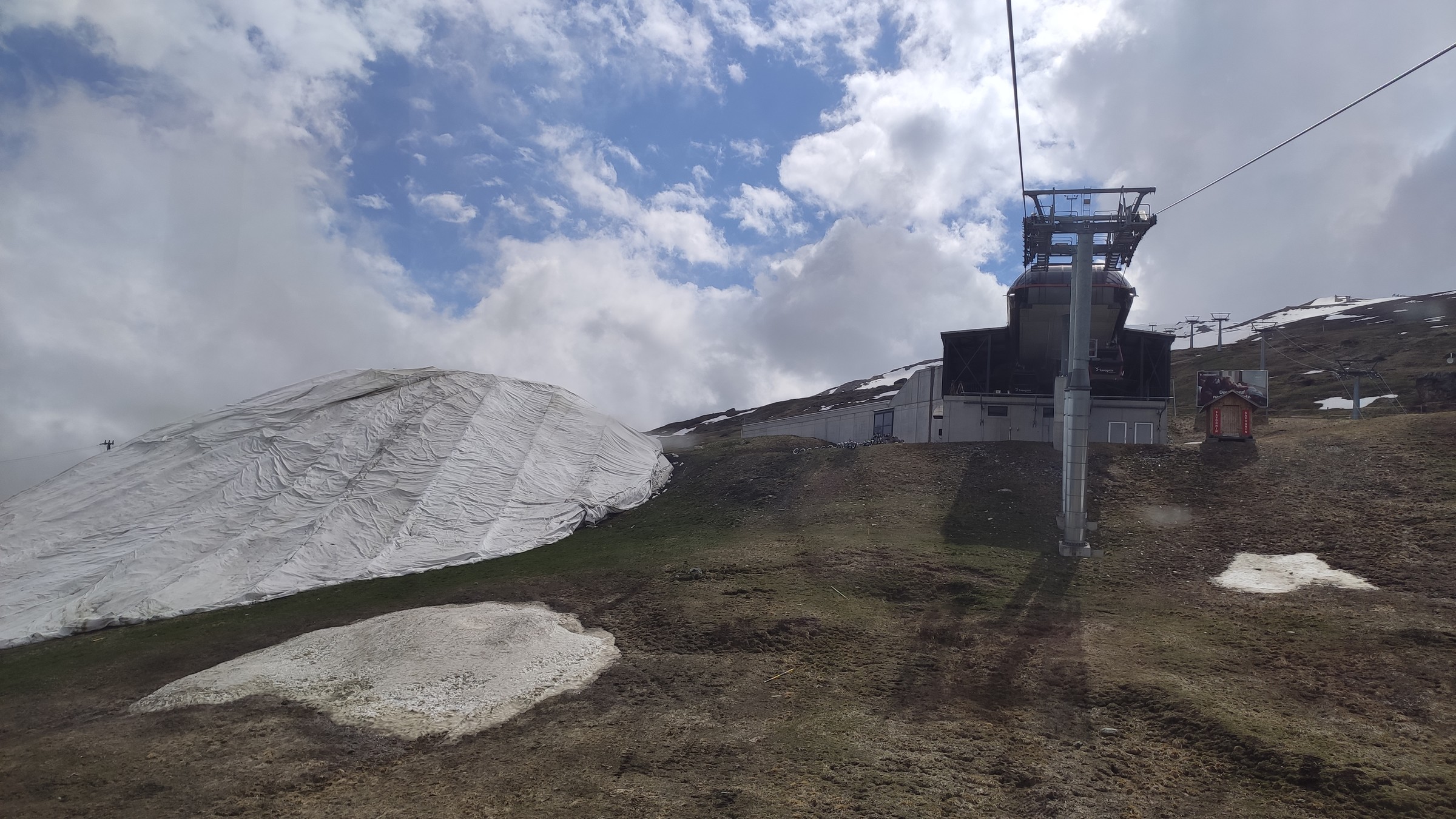Um diese herum manövriert, kommt man schliesslich in Naladas an: Besonders im oberen Teil des Lifts ist die Fahrspur streckenweise eine einzige Eisplatte, durch die man fast bis zum Boden schauen kann. Stelle ich mir durchaus auch anspruchsvoll vor für nicht so geübte Skiliftfahrer.