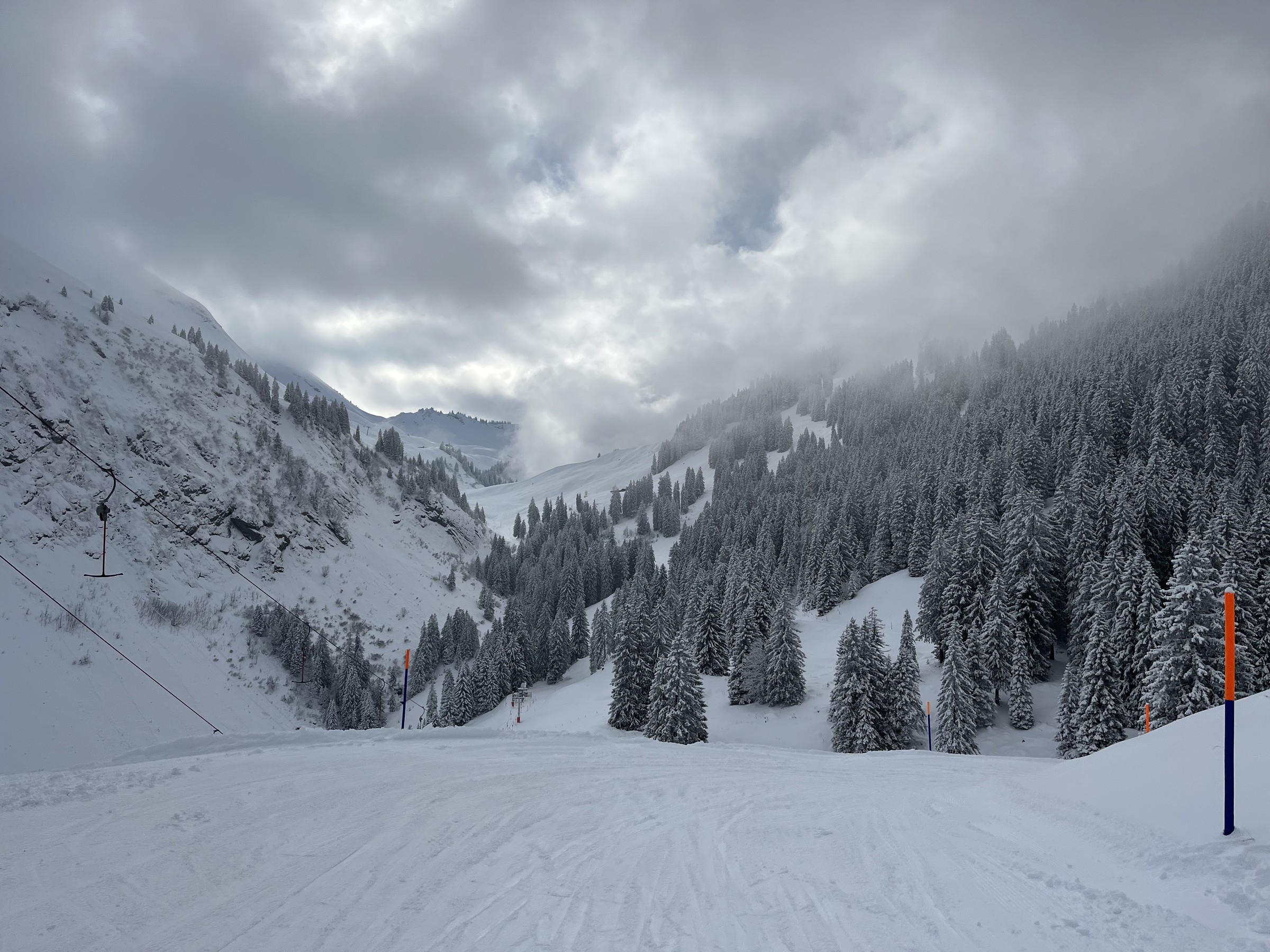 Die Verbindung zur Stockhütte wird wohl morgen oder übermorgen geschlossen: Twäregg wird sowieso demnächst kapitulieren: Sehr bremsiger Schnee auf der Talabfahrt: Krass, was da in 24 Stunden passiert ist: Schade.