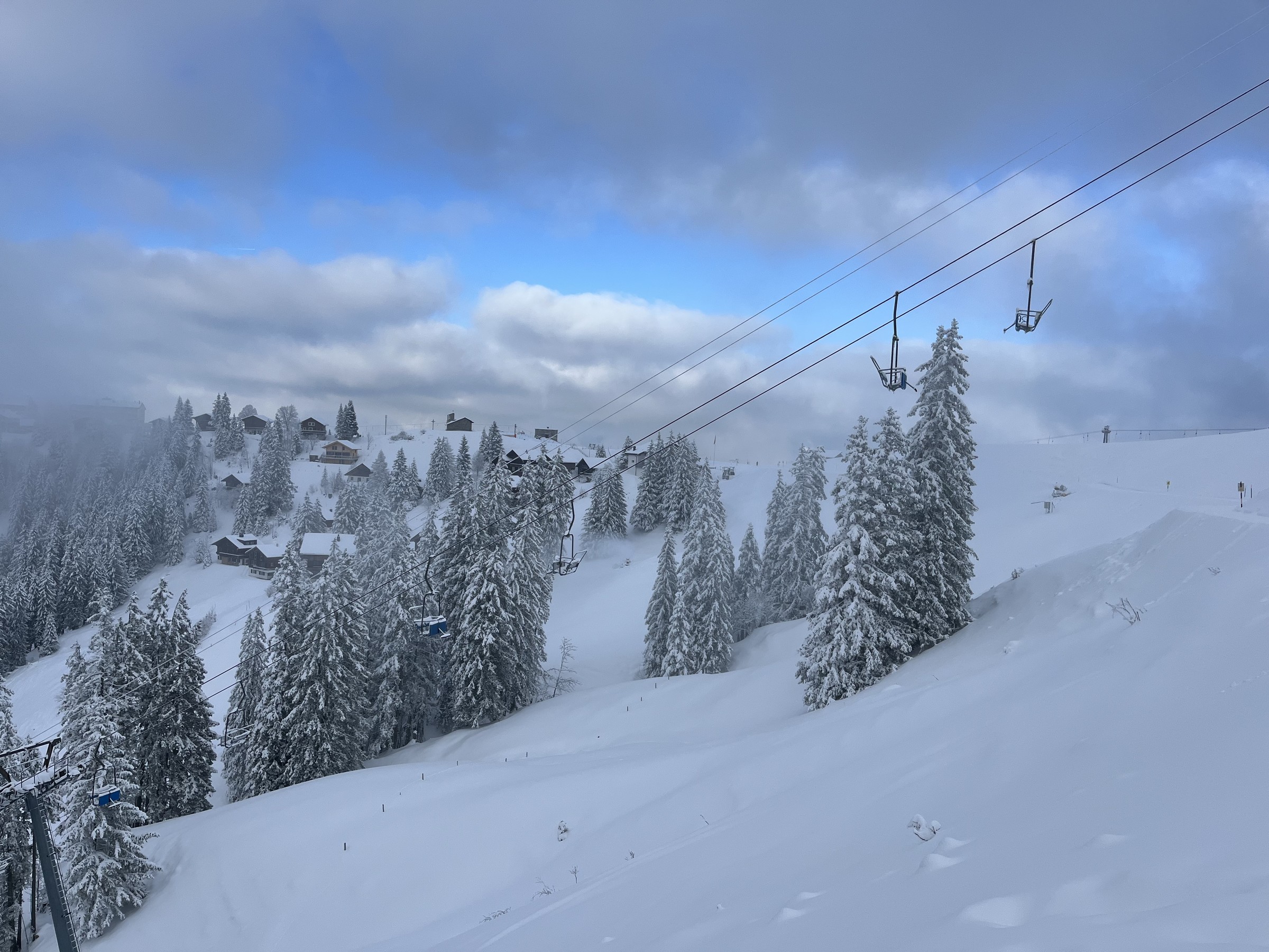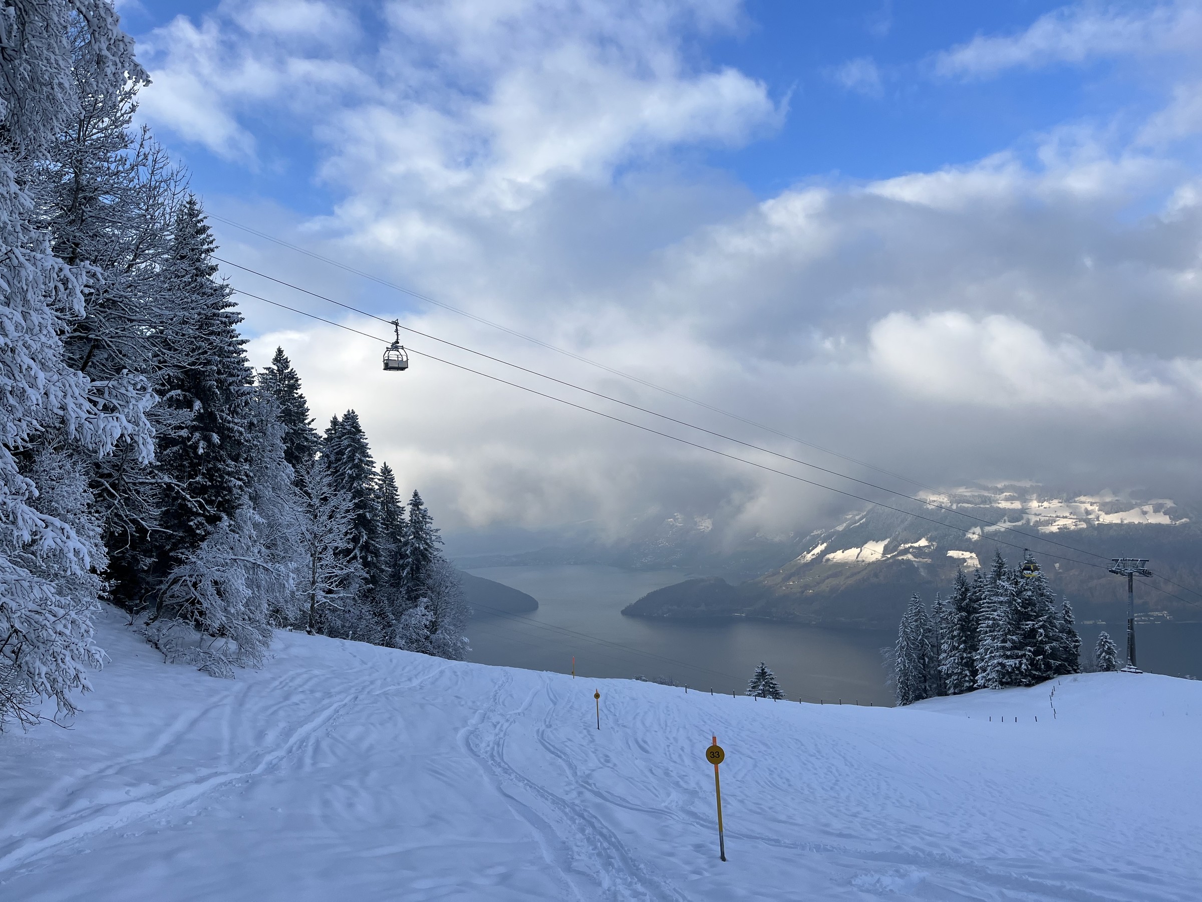 Anders als gestern musste ich heute das Gondeli nehmen, um ins Skigebiet zu kommen