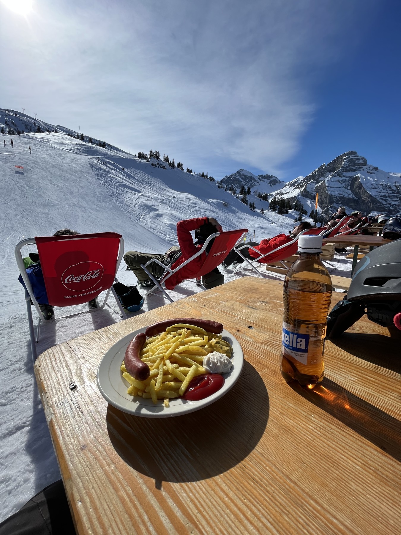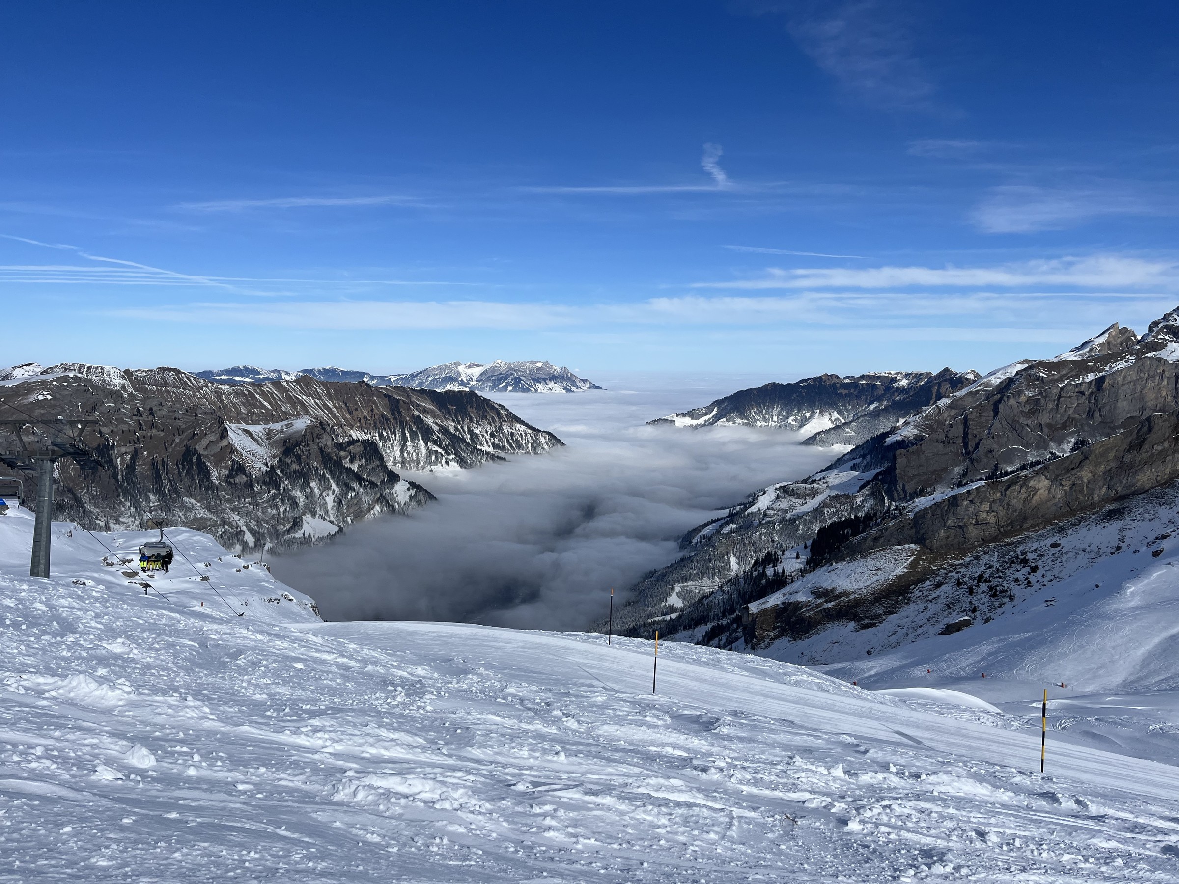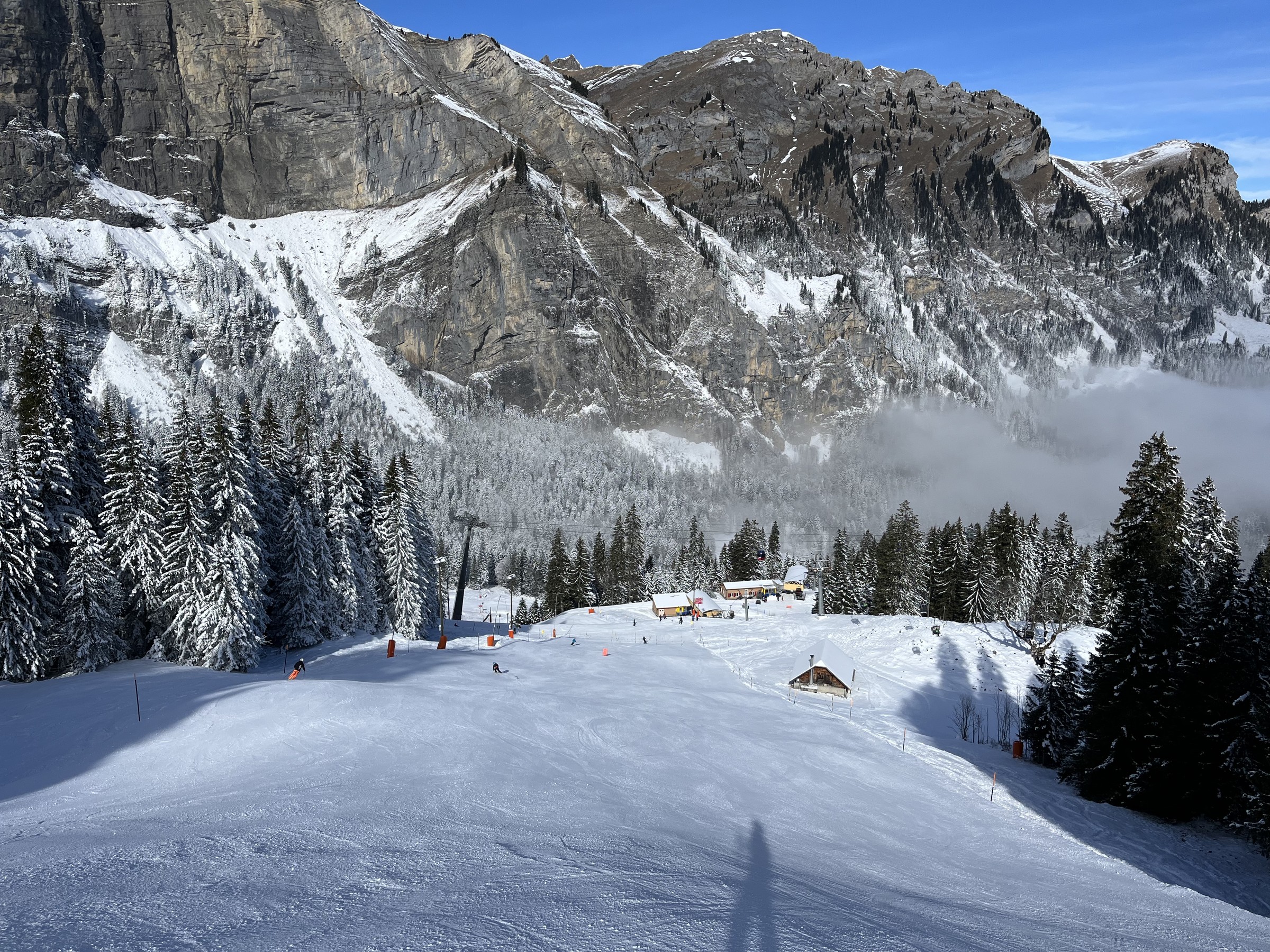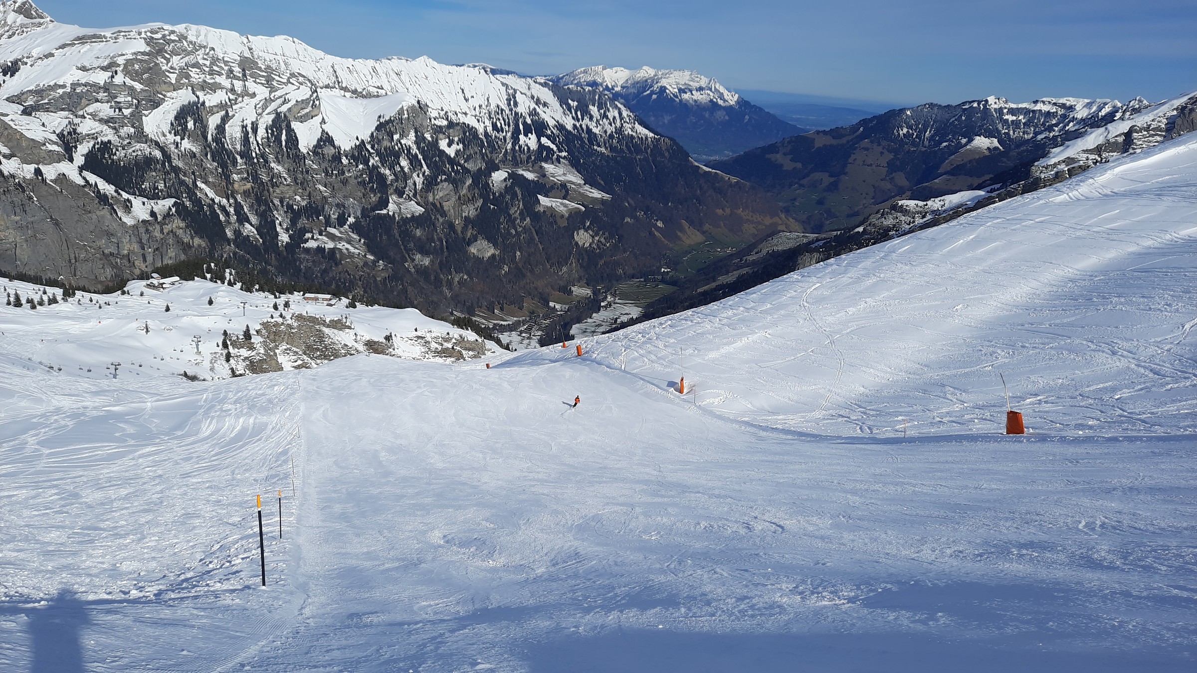 Vormittags ist einiges los. Auf den Bonistock-Pisten wird es manchmal unangenehm eng und wie ich gesehen habe, ist die Kolonne am Erzegg lang. Nach 11.30 Uhr leert es aber bereits schlagartig und es ist angenehm.