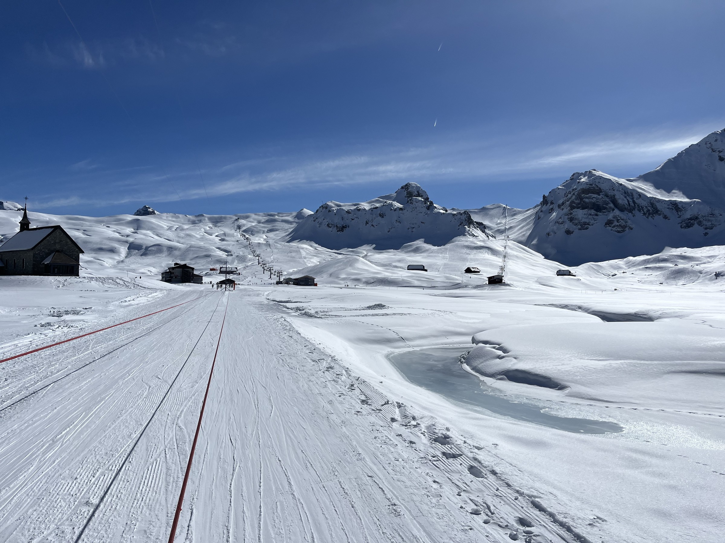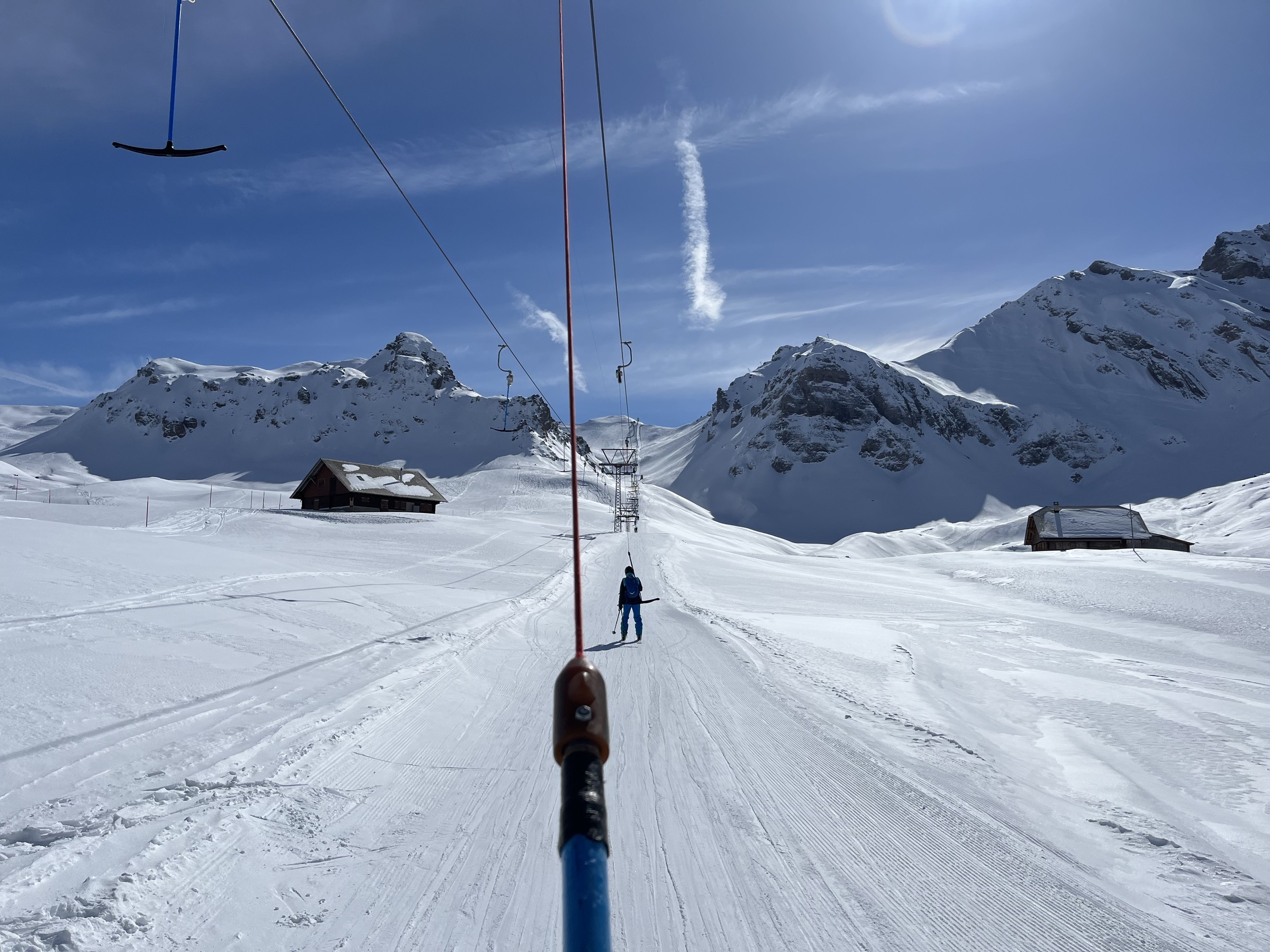 Der Nebel zieht sich schon um 10 Uhr zurück. Bei Cheselen sieht es noch richtig winterlich aus: Bald mal wird die Paradepiste (eigentlich die einzige, die mir wirklich gut gefällt) leer. Natürlich kommen dann auch Erinnerungen an die vier bahnunterstützen Abfahrten hier während des Coronalockdowns auf. Diese Umgehung der aus heutiger Sicht damals unnötigen Skigebietsschliessung zaubert mir auch heute noch ein Lächeln ins Gesicht. Nach 10x Bonistock und 5x die unteren 2er-Sessel wechsle ich der Vollständigkeit halber in den anderen Gebietsteil. Ätzend, dieser Wechsel. Und ätzend auch die flachen Pisten am Erzegg. Ebenfalls ätzend die Länge des Balmhorn-SLs. Schöne Aussicht zu Rosenhorn, Mittelhorn und Wetterhorn. Der erste Teil der Piste hier ist aber super. Schade, sind sie noch nie auf die Idee gekommen, in der Hälfte einen Zwischeneinstieg einzurichten. Dann also zur Rückkehr in den besseren Skigebietsteil nochmal Erzegg: Und ein Zmittag in der Bettenalp: