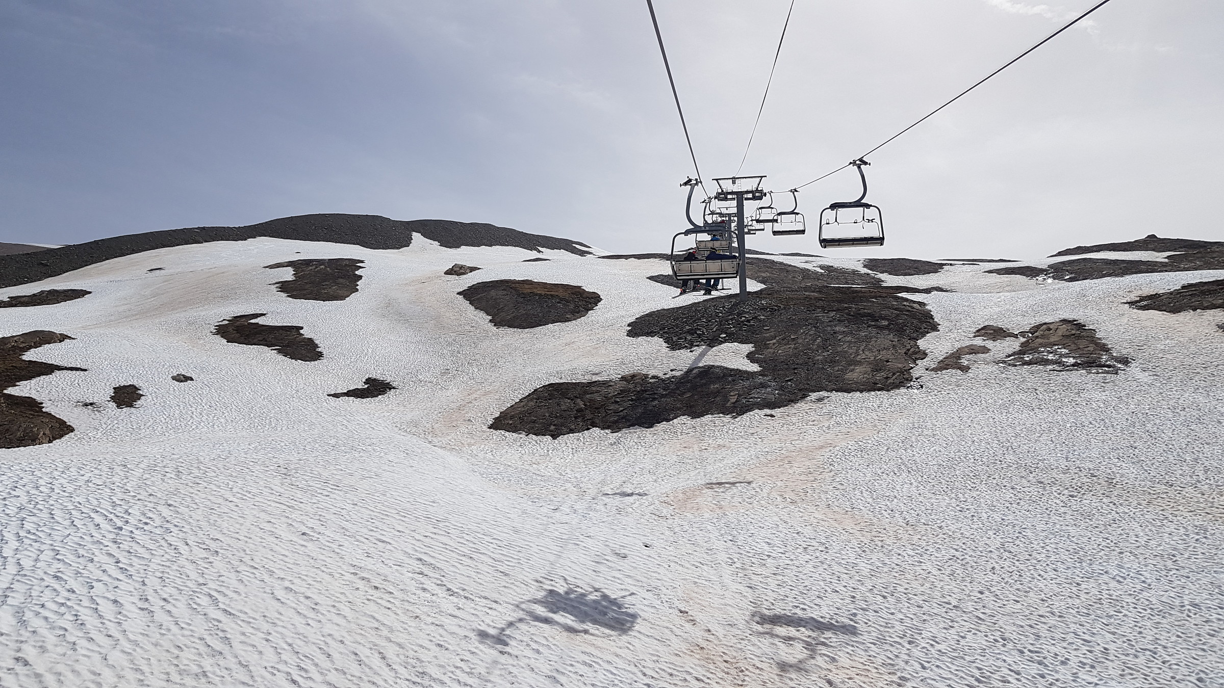 Hört sich nach 2 Slalomstrecken an der Bergstation des Liftes an. Sicher dann Transport per Skidoo oder Walze die von oben vom Gletscher her hin fährt.
