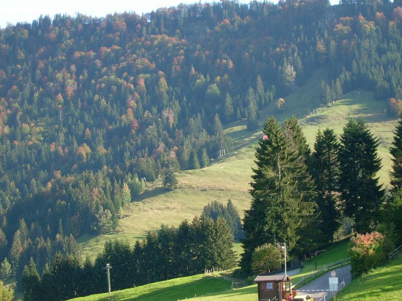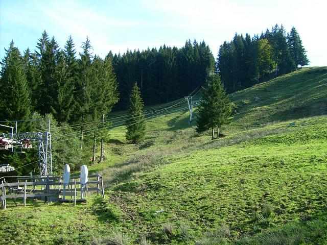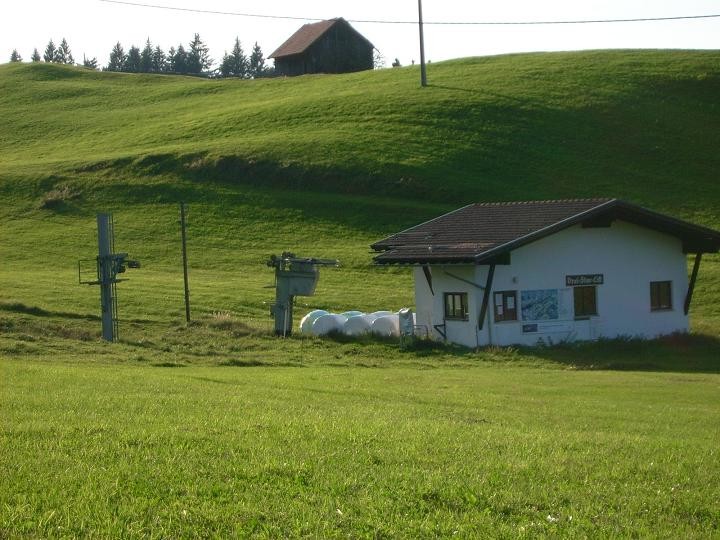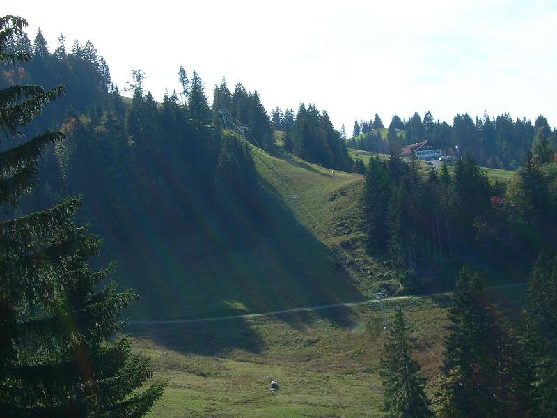 Am 22.9.07 bin ich nochmal in die Gegend gefahren. Am Hochgrat gab es am Südhang unterhalb des Staufner Hauses den Sonnenlift (ca. 1.000 Meter lang). Etwa 2 km weiter links der Hochgratbahn gab es im Tal unten den Hausberglift und - wie ich aus der alten Panoramakarte erst jetzt bemerkte - einen weiteren, kürzeren Lift, der parallel zum Hausberglift führte.