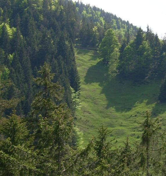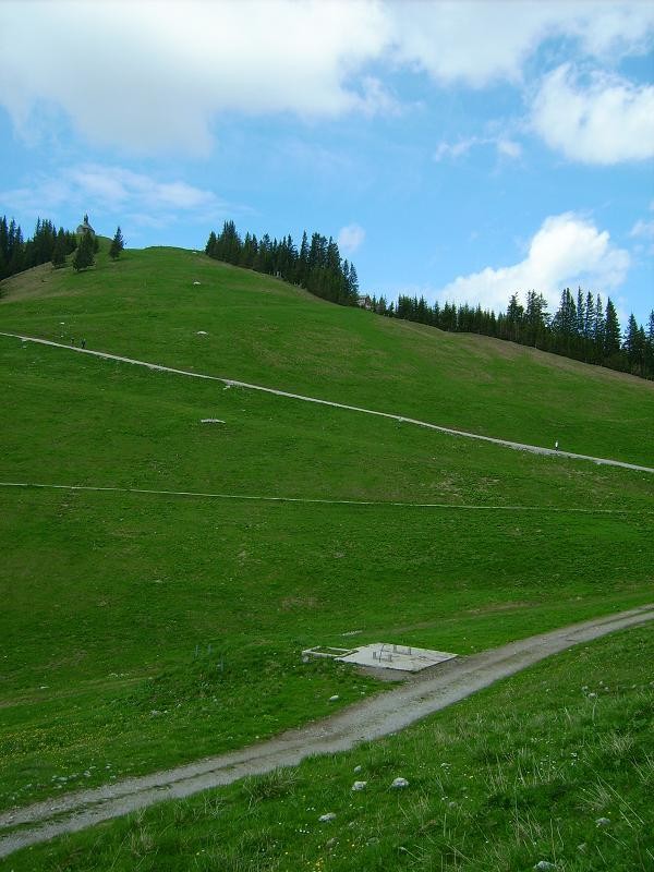^ Pano Setz-Berg, auf dem früher ein ESL führte; als Rückbringer gab es auch einen ESL, dessen Bergstation rechts vom Fotostandpunkt war. Man sieht 2 Stützenfundamente ...