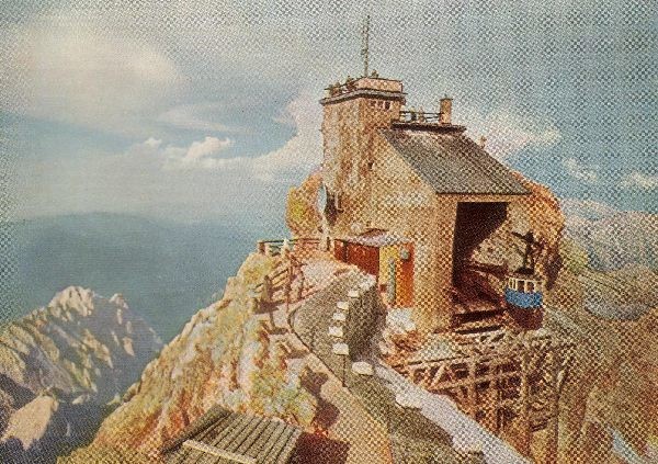 Ich hab mal versucht das Foto mit der Gipfelbahn etwas besser reinzustellen, iss aus dem Buch ``Die Zugspitze``, Farbfotos aus diesem Buch sind vom Huber Verlag Garmisch.
