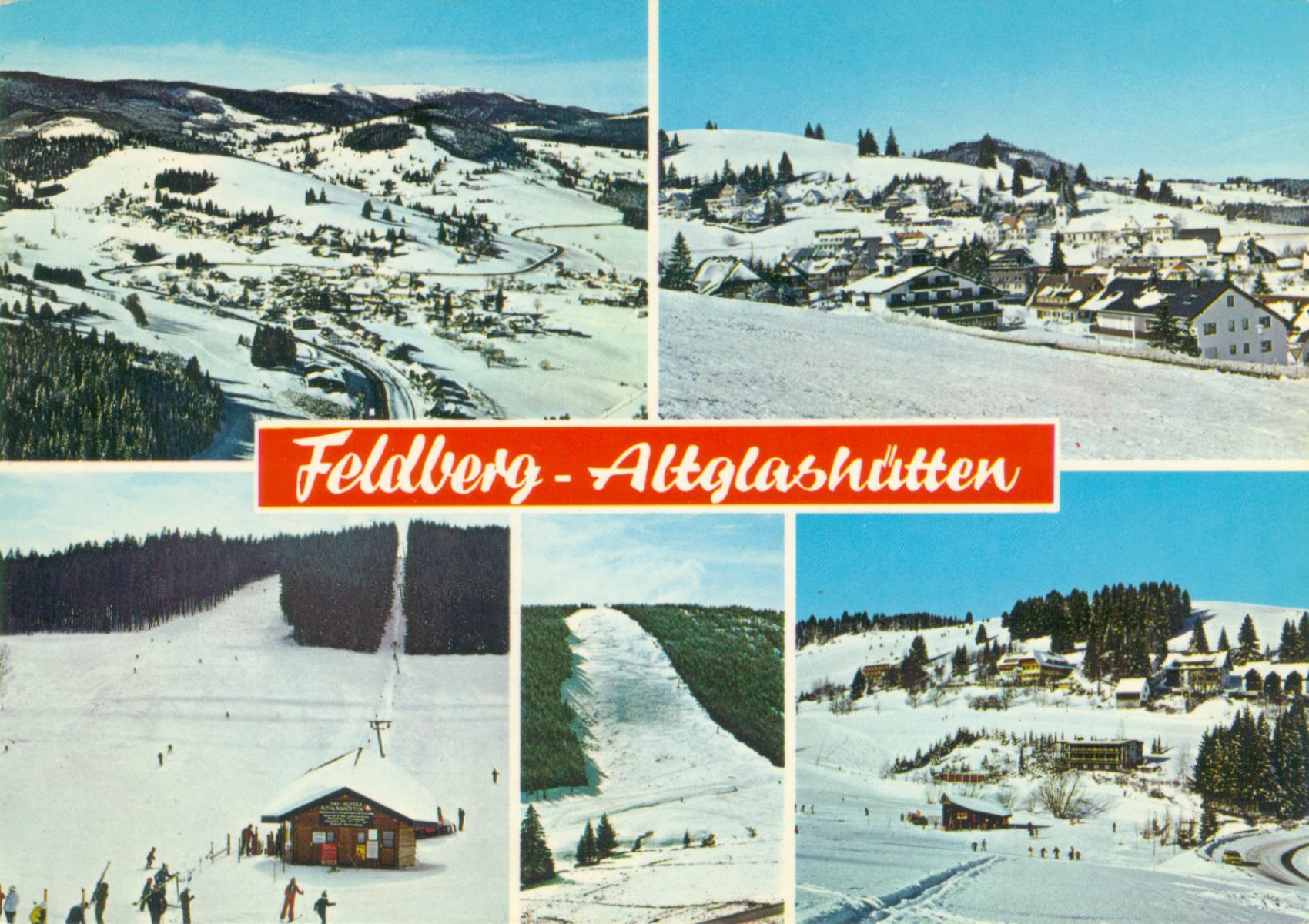 Altglashütten mit Skihang Kapellenkopf 1984, © Verlag Plamper, Titisee-Neustadt.