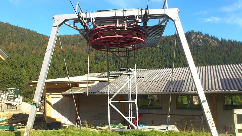 Hier merkt man eindeutig die Restlverwertung oder noch Copro mit Wolf und Switzeny. Die Portalstütze in ihrer Anatomie von W&S und die ROBAS eindeutig Wiener Brückenbau ,wie beim weiland Steinbergkogel in Kitz. Wobei die Bergstationsstütze, sowie die Talstationsausfahrniederhalterin aufgrund gröberer Probleme mit der Topographie und dem Untergrund auf Portalstützen umgestellt wurden wobei diese bis zur Betriebseinstellung 1993 verblieben.