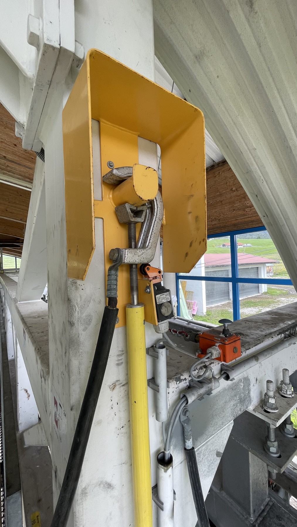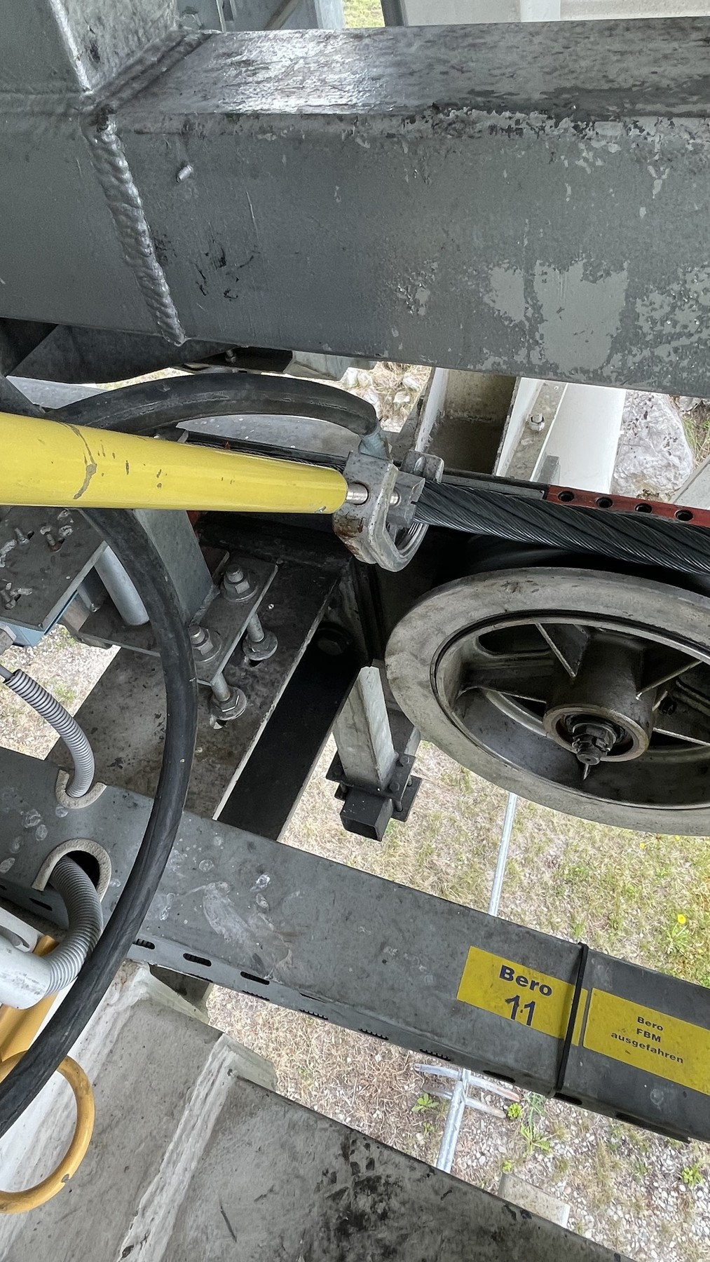 Die Erdungsstangen werden normalerweise nur bei längerem Stillstand der Anlage aufs Seil gehängt. Im Winter sehr selten.