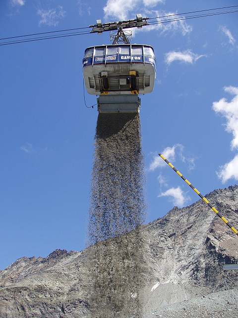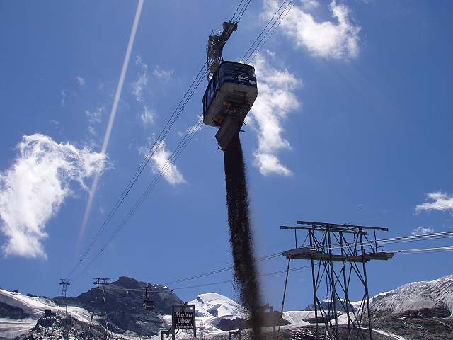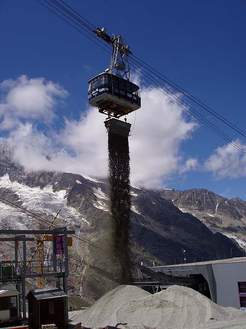 Während des Baus der Metro Alpin wurden mit einem Transportgehänge Lasten bis 12 t transportiert.