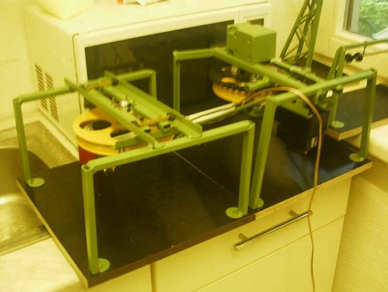 Nachdem ich wieder recht fleißig war kommt hier das Probelaufvideo, der Lift läuft seit gestern Nacht im Dauertestbetrieb. Wundert Euch nicht über diverse rumstehende Stahlgewichte und ne Hölzlstütze als "Ballast" die zur provisorischen Fixierung der Fußplatten nötig sind. An der kann man auch ganz gut den Maßstabsunterschied des W&S (der ja zu den JC - Umlaufbahnen passen muß) und meiner Standardmodelliftgröße ermessen.