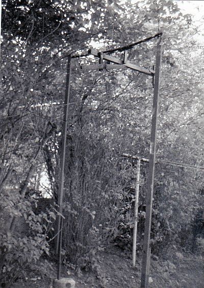 Die Portalstütze war aus Fichtenholzleisten und war einbetoniert. Kalk und Zement erhielt ich von unserem Hausmeister.Sand von unserer Blumenfrau Frau Tauber welche im Kellergeschoss ihre Gärtnerei hatte ( mit den Schwestern Elsa und Anni Wägerle), deren Neffe bei der Stubaitalbahn war. Die alte Frau Tauber ( 75J) war ein Fan meiner Bahn der ersten Stunde. Sie hatte so einen lieben wienerisch-tirolerischen Akzent drauf. Schalformen waren leere Omo/Dixan -Trommeln. Stundenlang haben wir über Seilbahnen geplauscht. Nach dem Tod meiner Großtante 1981 hab ich das ganze Werkzeug und Material meines Großonkels bekommen . Der war Modellbahner und Heimwerker, Camper..... das war für mich ein echtes wertvolles Geschenk. Mein größter Schatz war die Schrauben und Mutternsammlung, und eine METABO Ständerbohrmaschine mit Kurbelantrieb. Das war ein Aufschwung für meinen "Seilbahnbetrieb" . Papa hat dann den alten Mietkeller renoviert, elektrifiziert, und ich hatte mit Blick auf die Bergstation eine tolle Bastel - und Seilbahnwerkstatt. Mir war nie langweilig, die Freunde vom Nachbarhaus waren immer da wenn die Seilbahn gefahren ist, es war einfach schön damals.