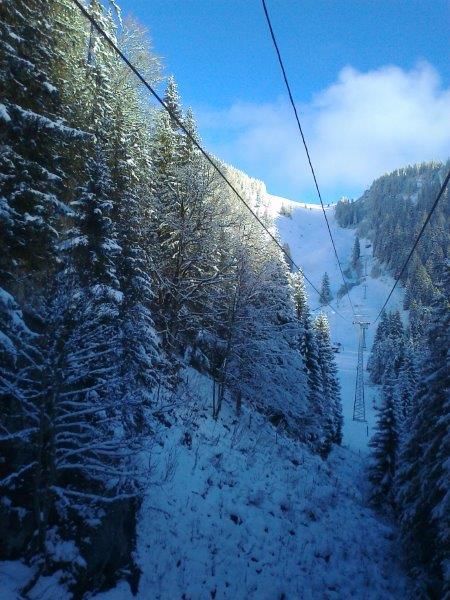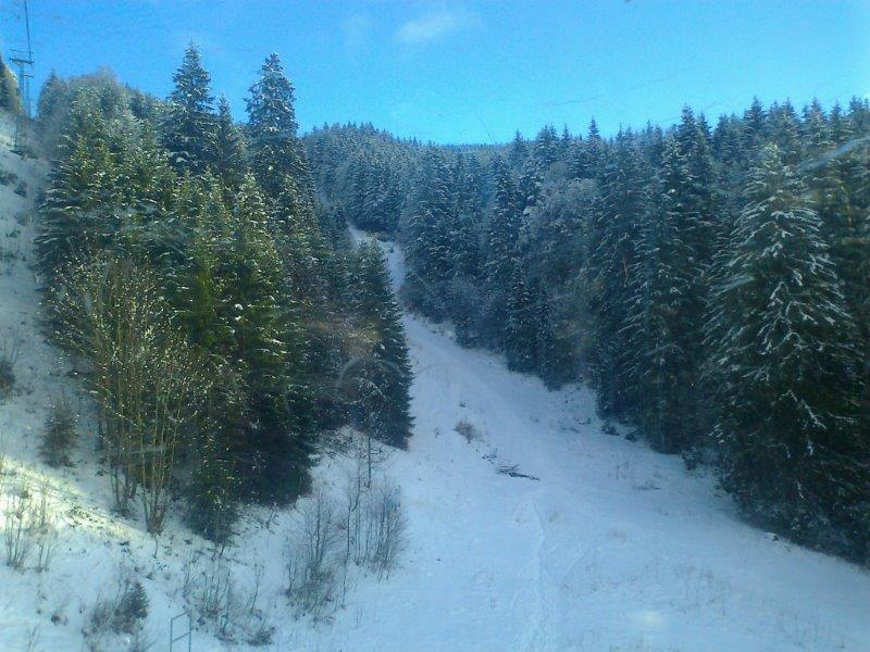 Auffahrt mit der Bahn; der Lochgraben hat nur grenzwertig Schnee