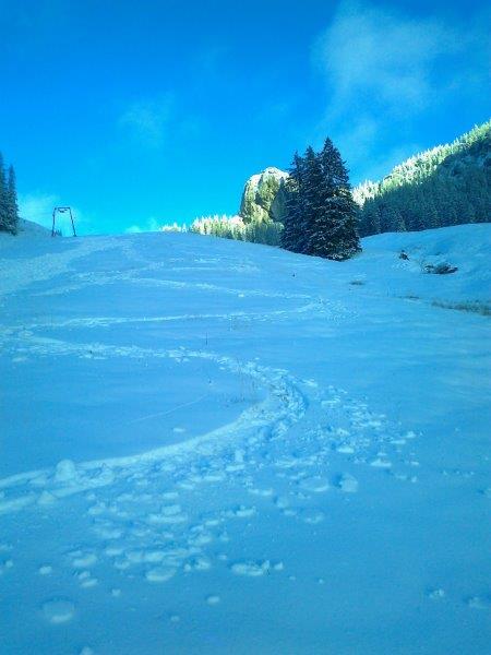 Danach unbeschwerteres Powdern entlang der SLs. Die langen Grasbüschel waren völlig unproblematisch
