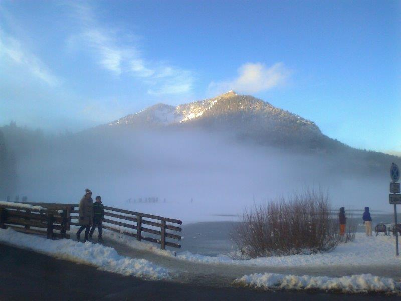 und schließlich angekommen am Spitzingsee. Die ersten Nebelschwaden bilden sich und erzeugen ein nahezu mystisches Bild